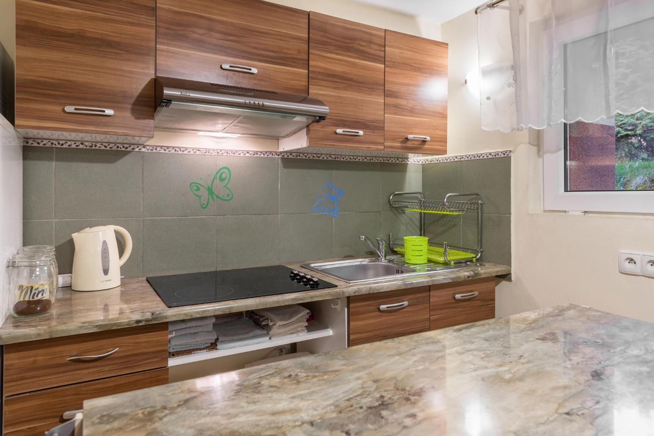 Cozy Accommodation: Experience the warmth of wooden furnishings and parquet floors in our self-catering rooms, equipped with modern amenities like TV and electric kettle. Select rooms even offer a private balcony for stunning views.