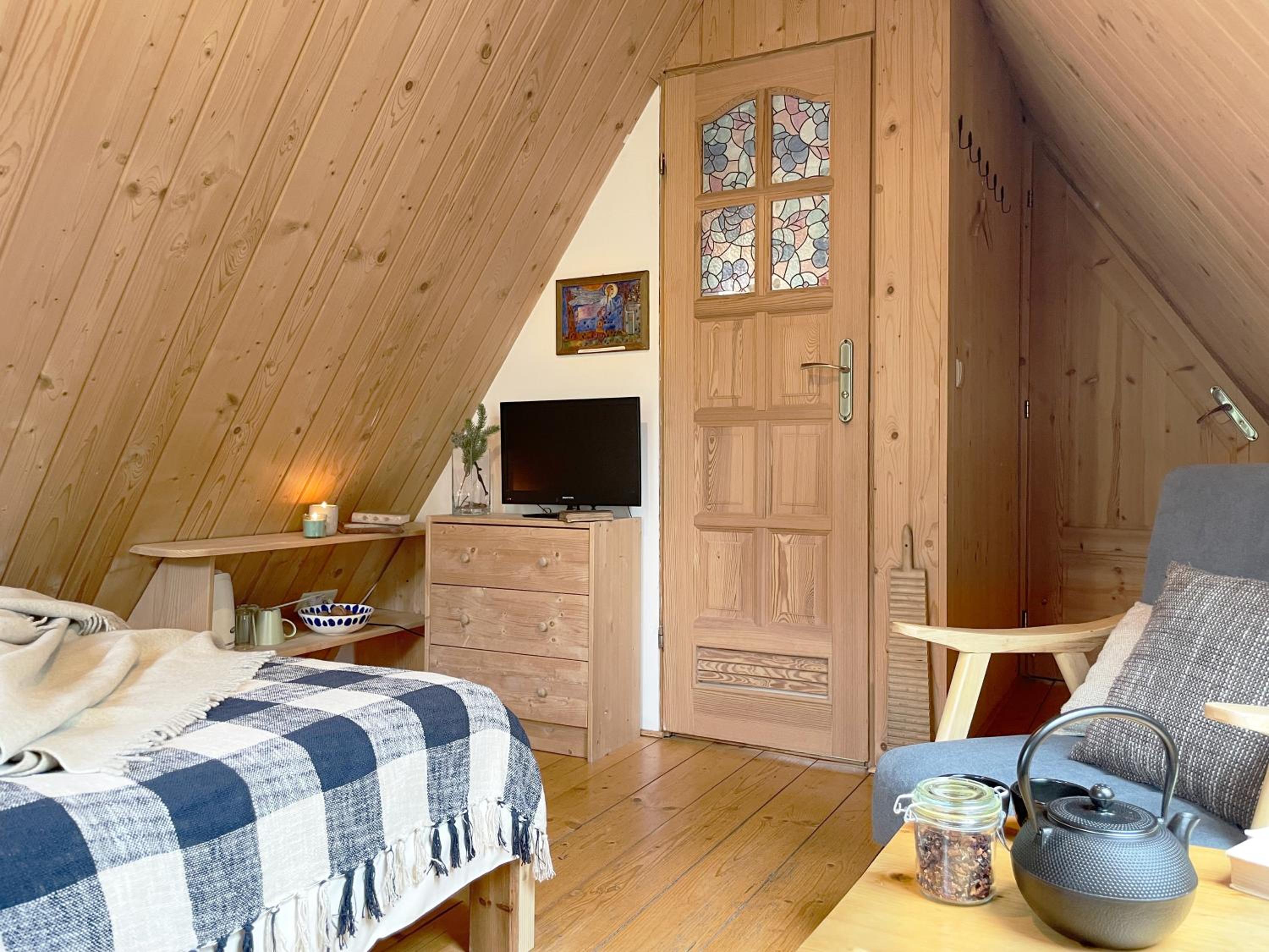 Przytulny pokoik dla jednej osoby - jedynka na poddaszu, ciepło, czysto, wygodna kanapa. Super lokalizacja, spokój, cisza, Blisko szlaku, ale też niedaleko od Centrum. W pobliżu jest kilka restauracji. Bardzo miła Pani Właścicielka, z całego serca polecam ten domek.