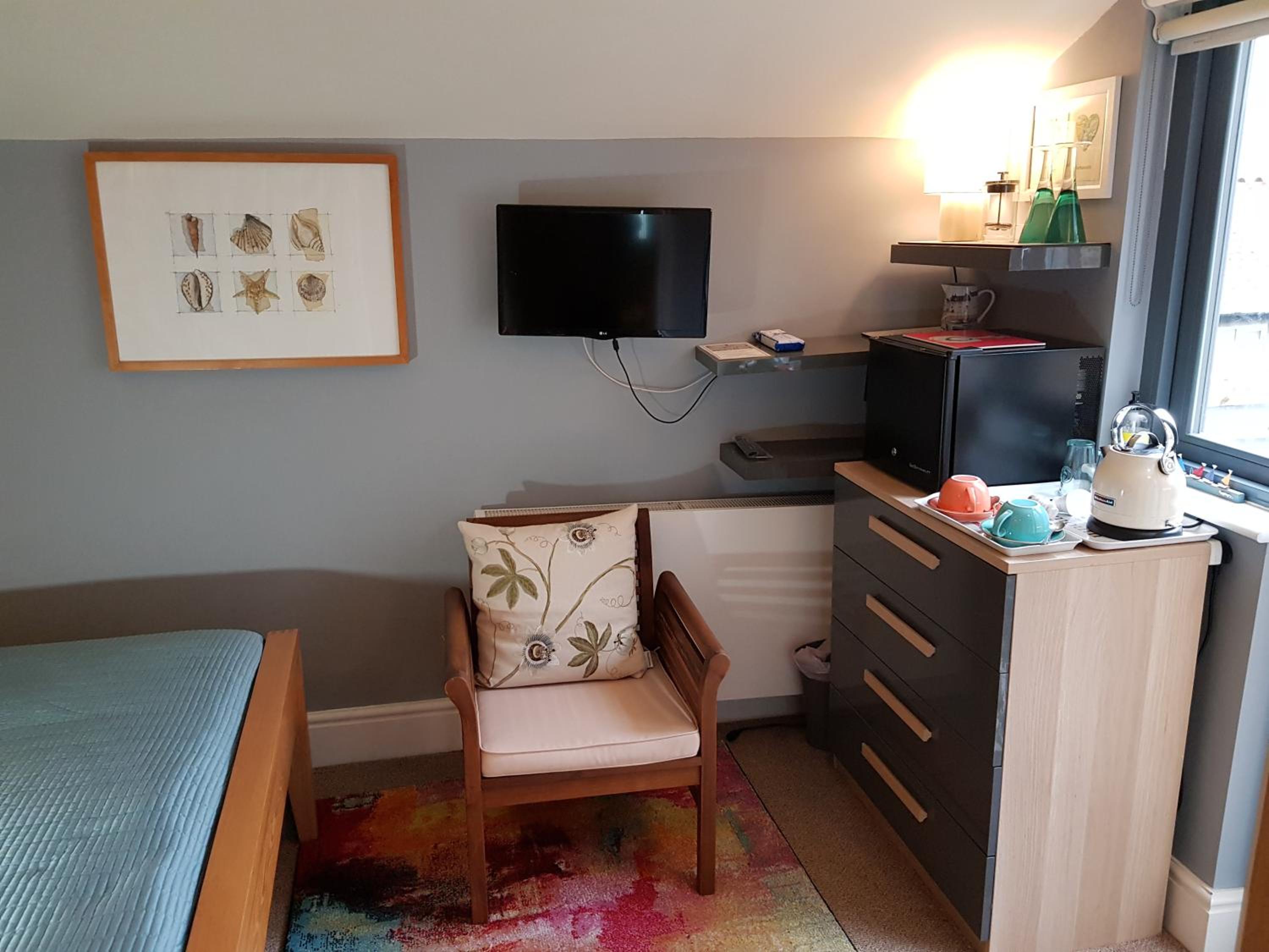 The location was great,for the town and water front. The room was clean, comfortable, and warm.A great choice of teas, etc. Nice to have fresh milk, even a tipple in the fridge. Private space to sit outside,was lovely.