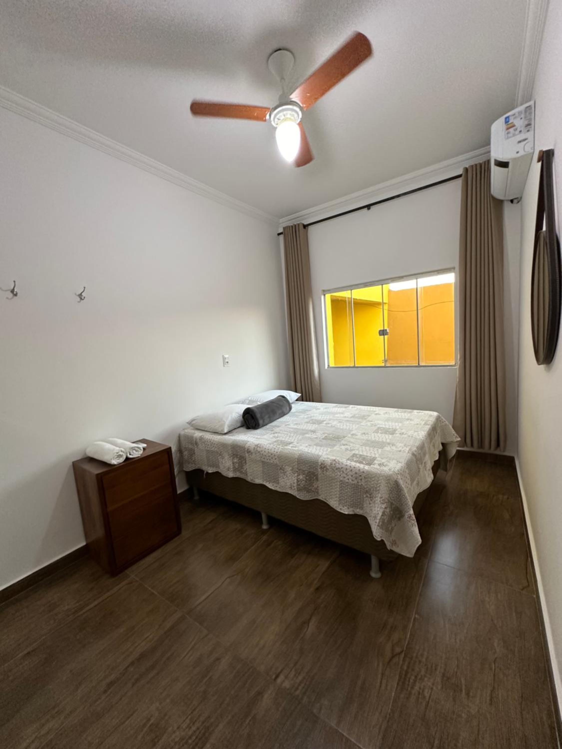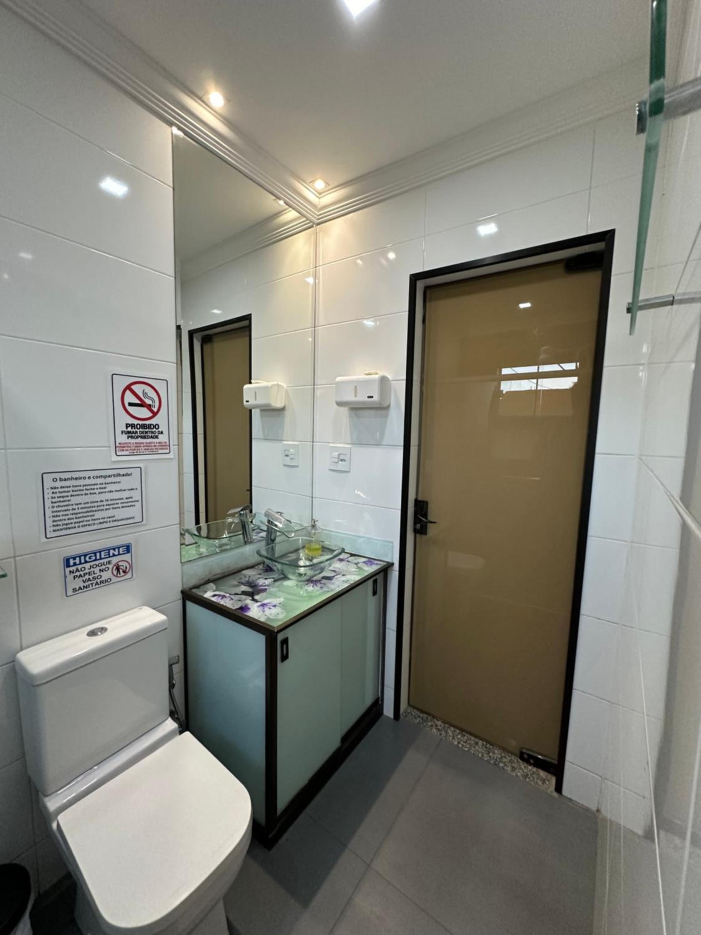 o quarto e o banheiro são grandes e novos. o chuveiro esquenta bem e rápido.