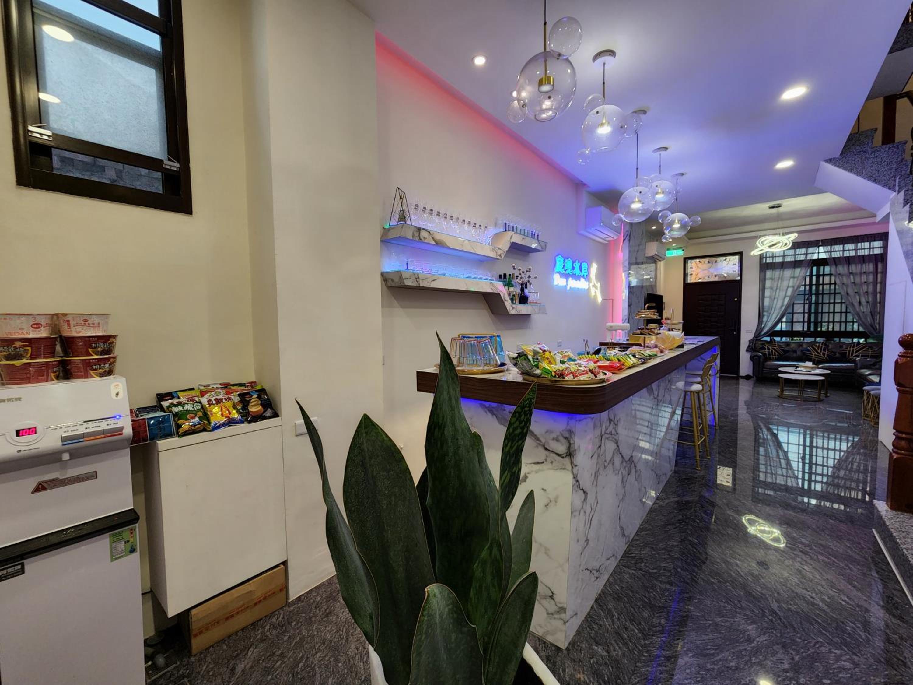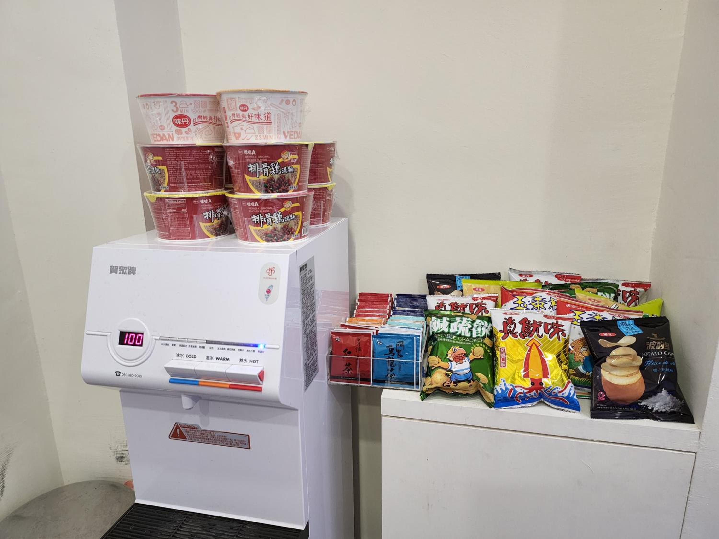 一樓吧台有零食泡麵吃!
