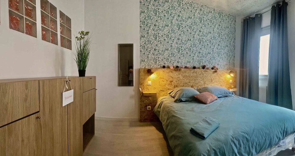 Très bel accueil. Chambre spacieuse, très propre et très confortable, décorée avec goût, salle de bain et WC privatifs, aucun bruit la nuit. Cuisine partagée très bien équipée. A proximité immédiate de la gare et proche des lieux de restauration.