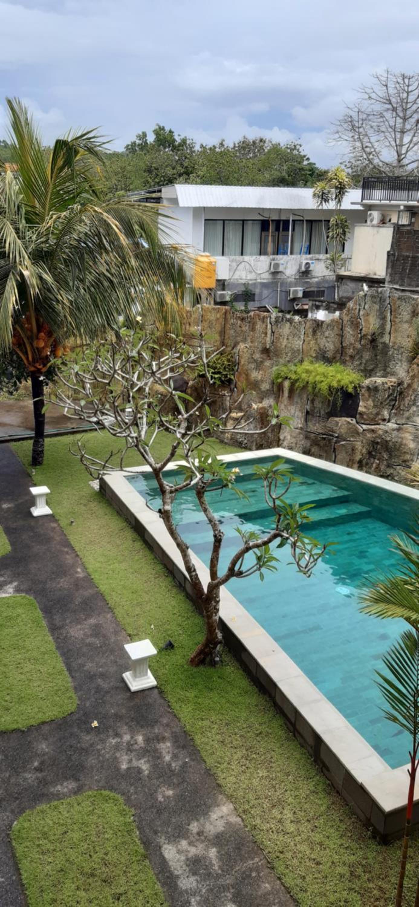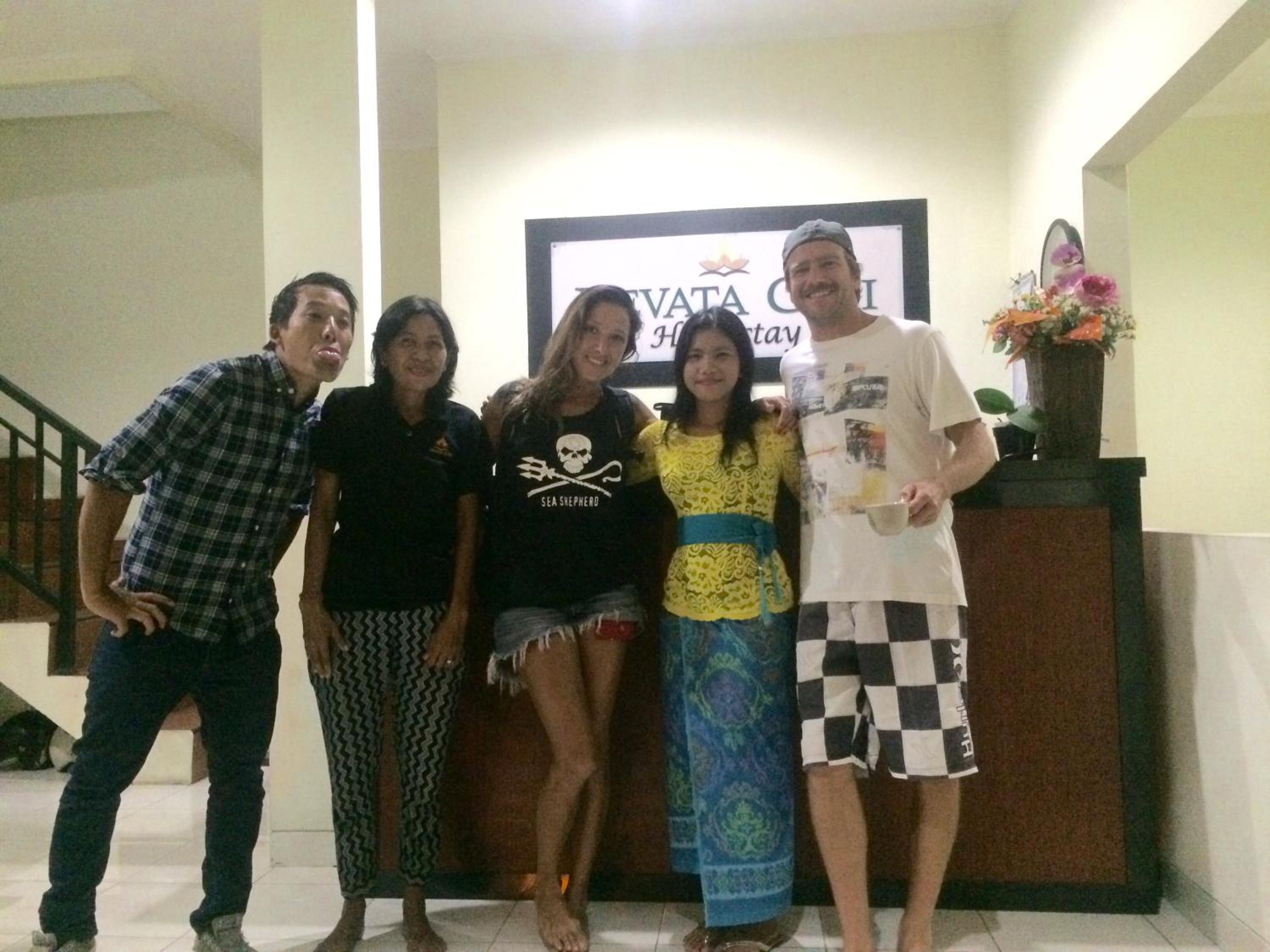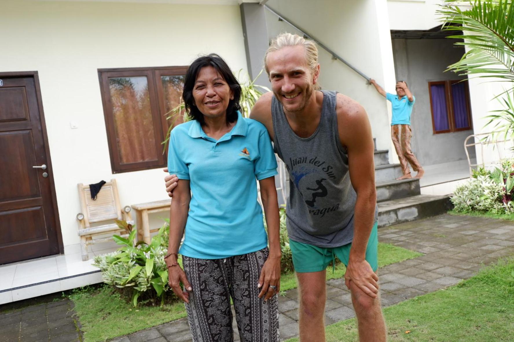 La ubicación es perfecta, siempre que quieras estar cerca de un montón de restaurantes a pie, tiendas, fiesta y de la playa padang padang. Te facilita mucho esta ubicación sino tienes moto, ya que para desayunar tienes cerca un montón de sitios y puedes probar uno diferente cada día sin tener que coger un grab (aunque puedes coger un grab y alojarte más lejos, depende de tus prioridades). Si necesitas cualquier cosa, te lo dan en el momento (como papel de baño), tienen un dispensador de agua potable en la entrada y puedes pedir que te limpien el cuarto cada día. Son amables y agradables.