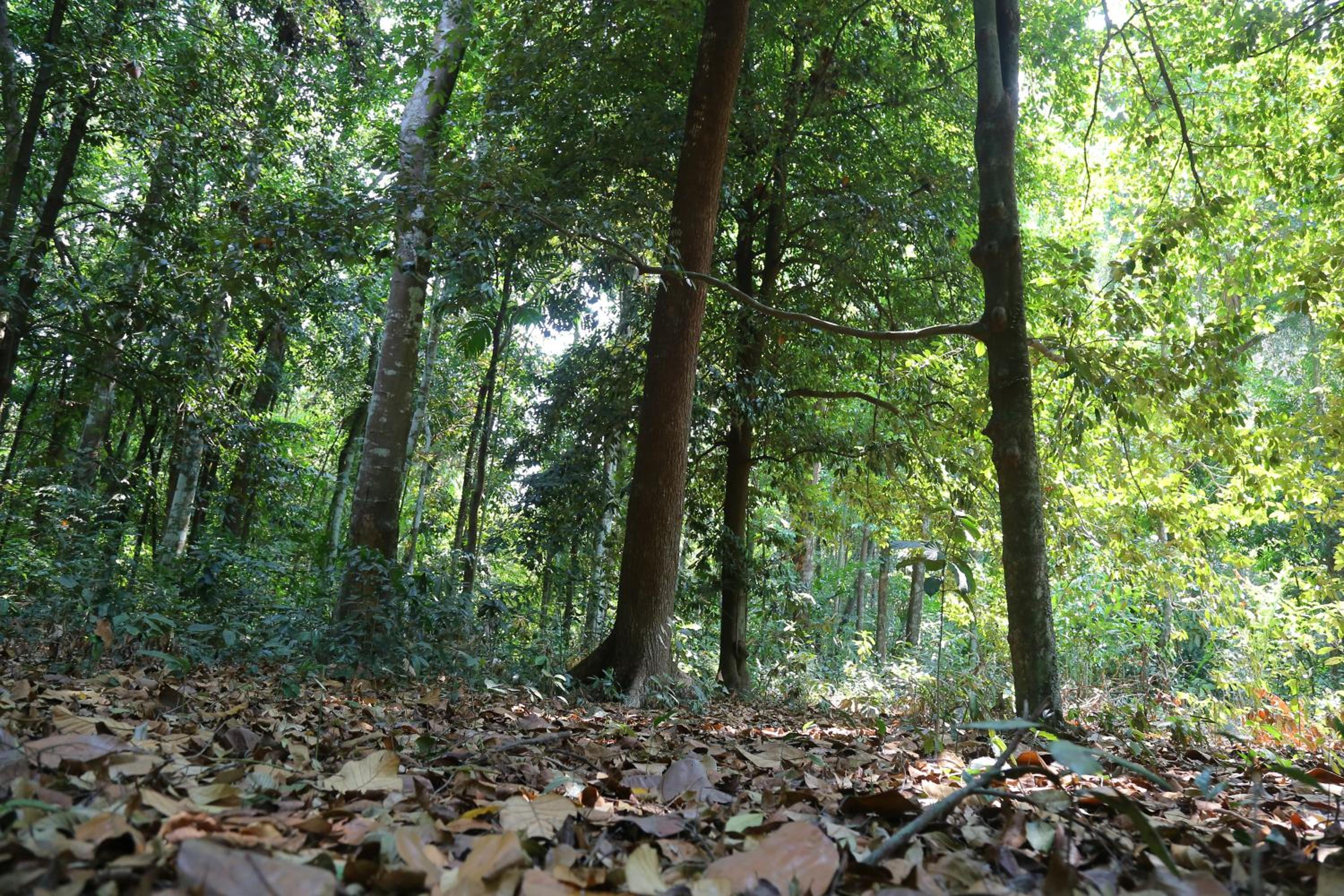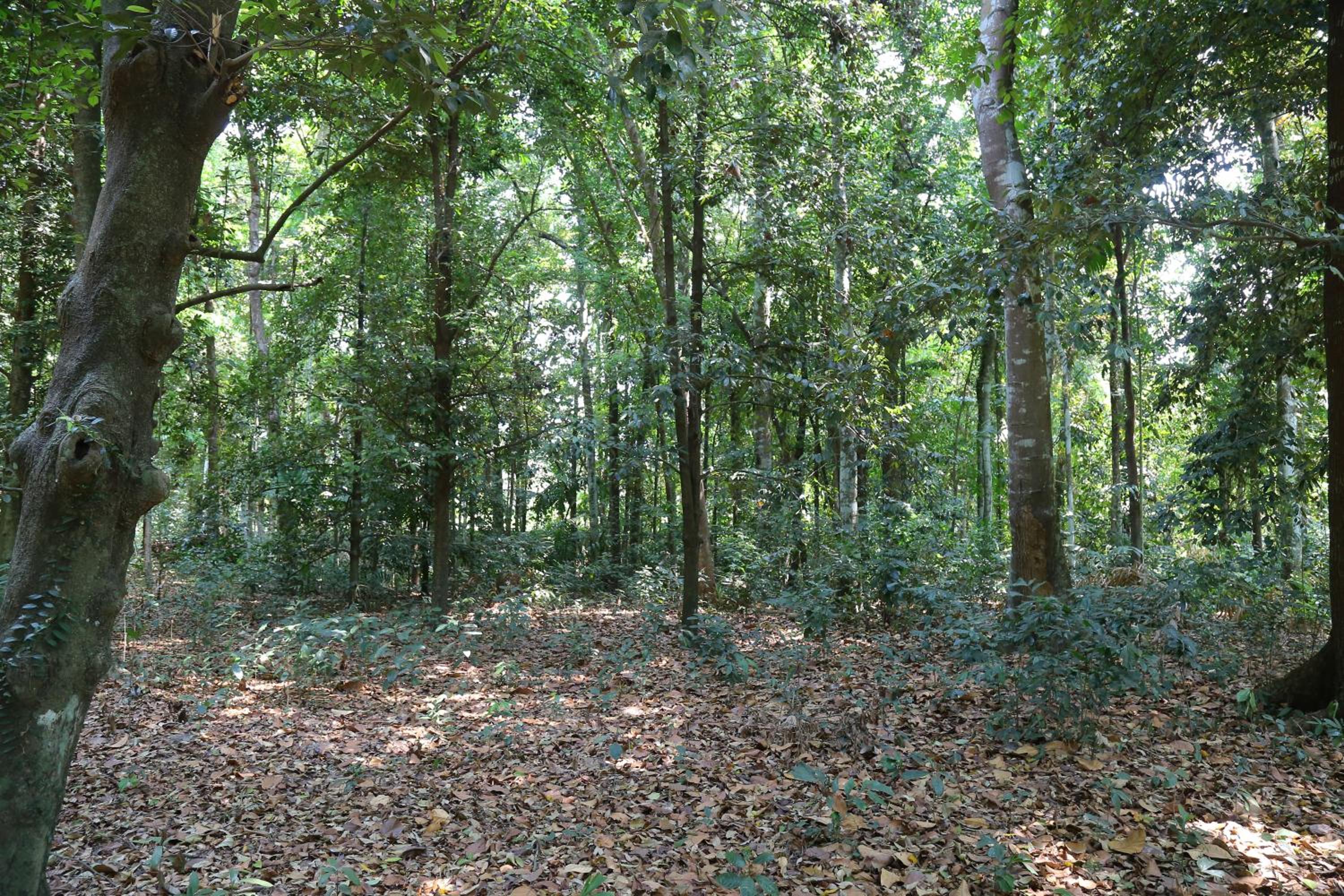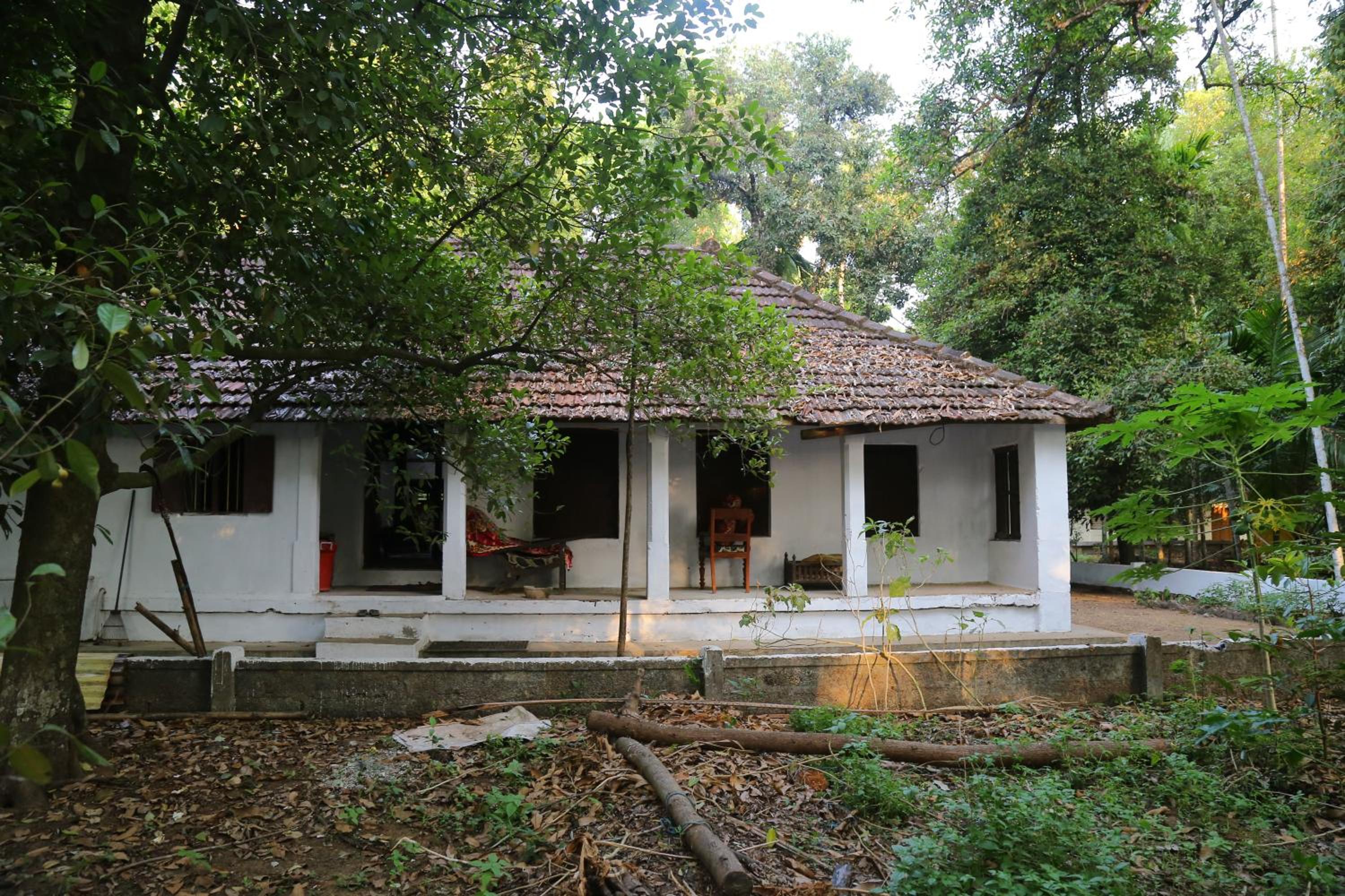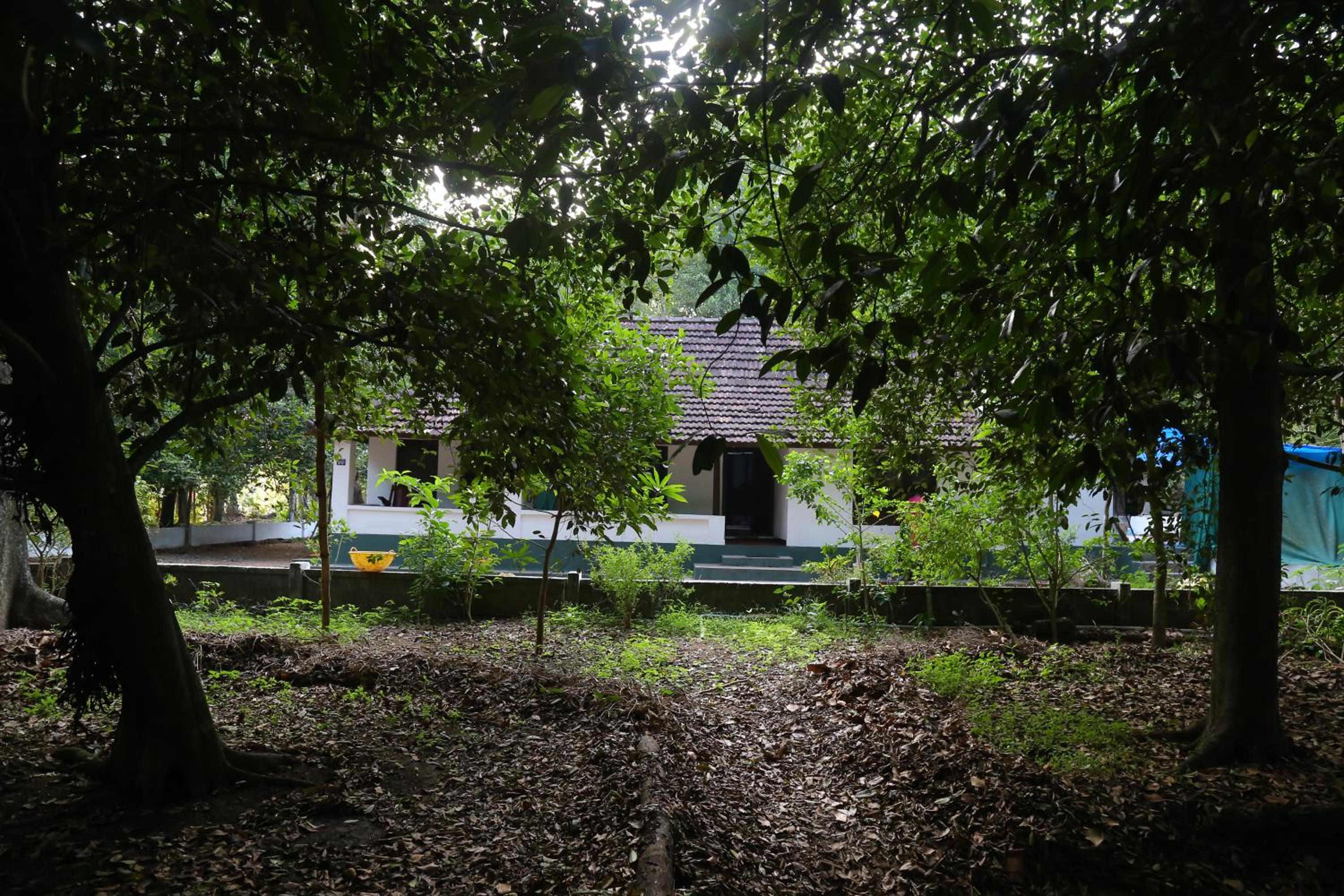 Beautiful serene house amidst thick trees and birds chirping.