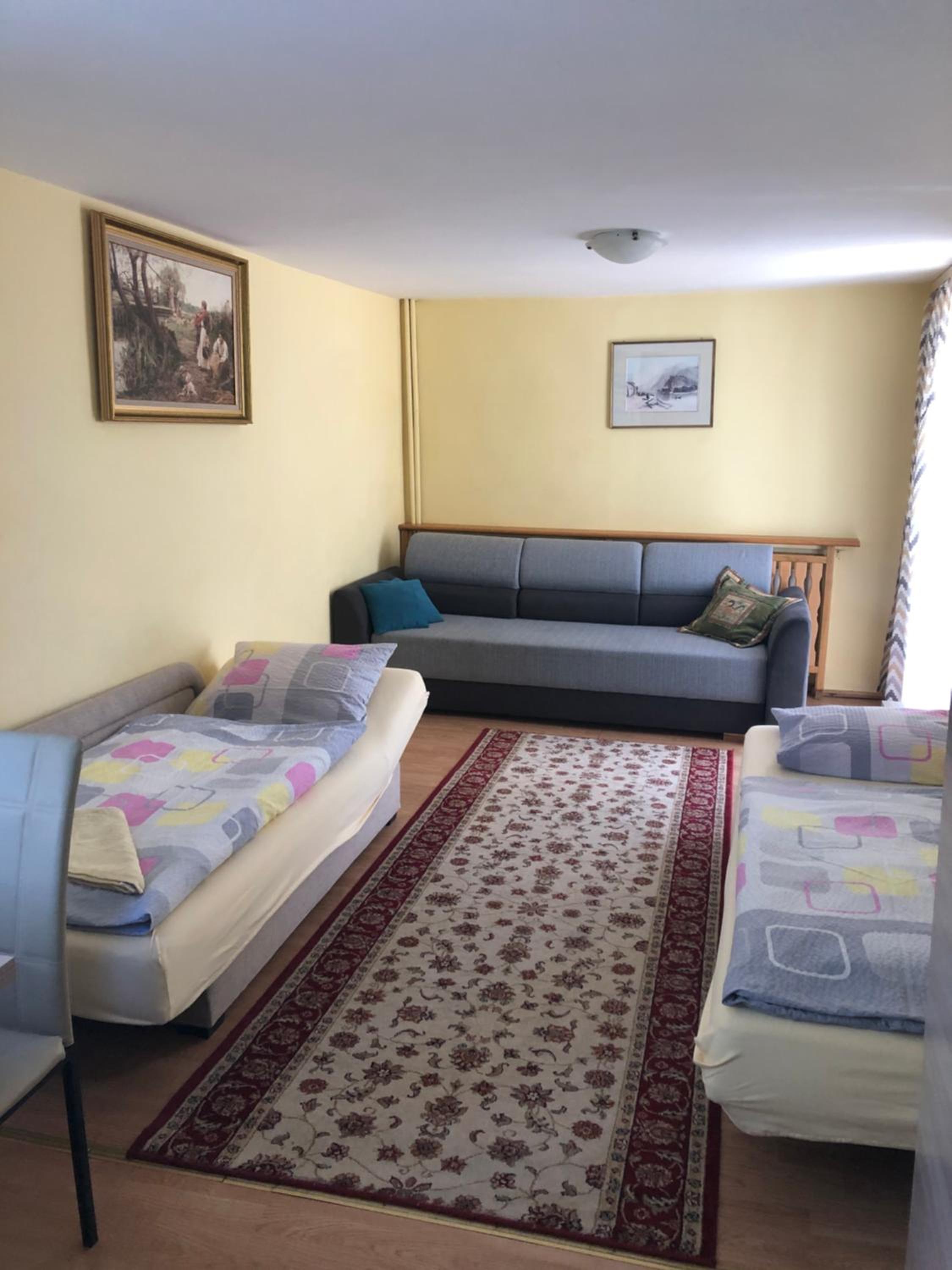 Wygodne pokoje, duża sala na dole