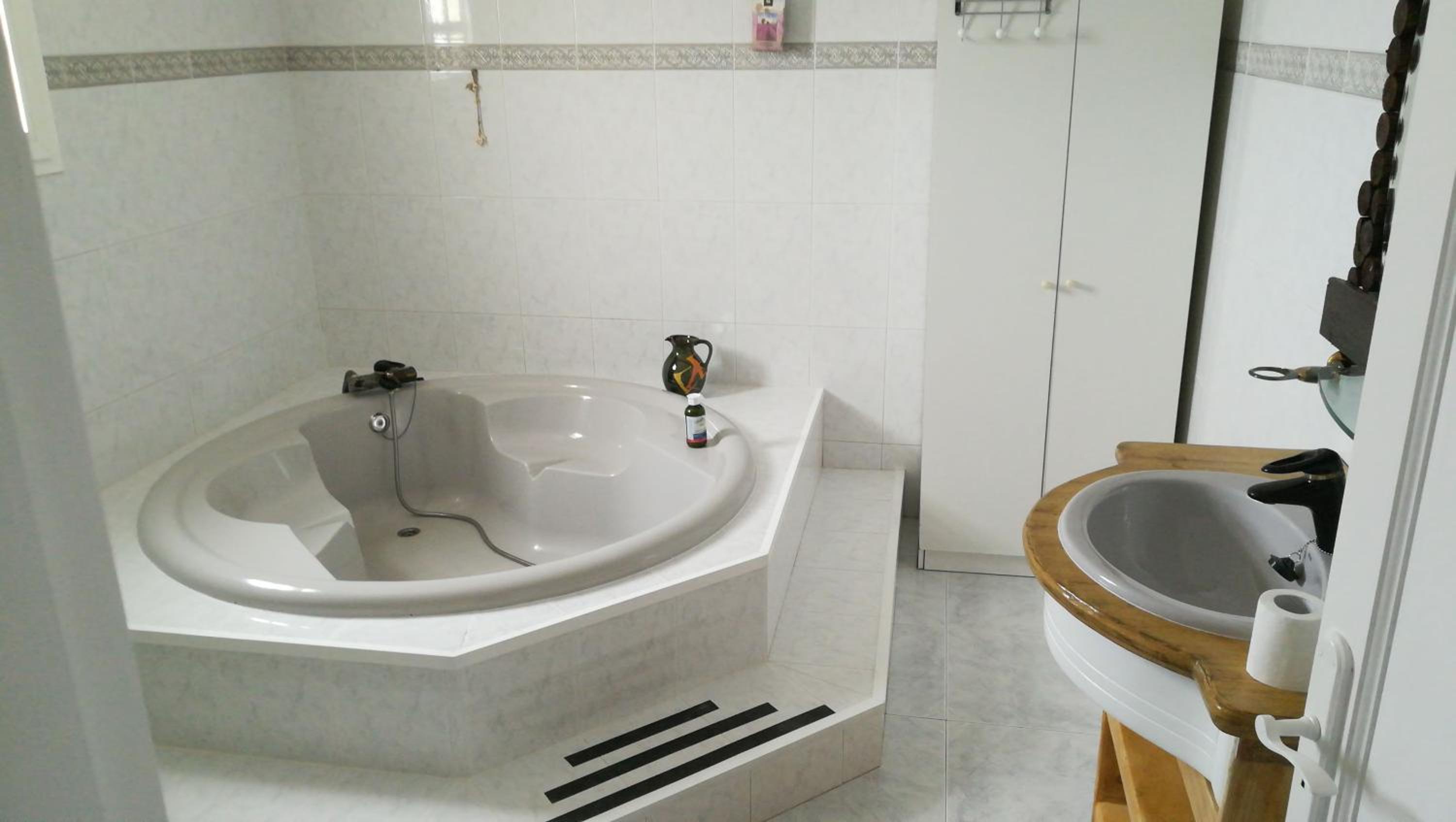 Тихое размещение в маленьком городке в приятном доме. Комната большая, расположенная на втором этаже и стилизованная под морскую тему с испанским колоритом. Приветственные фрукты и вода. Полностью оборудована кухня внизу на первом этаже, полноценная лаундж-зона здесь же. Есть бесплатная парковка