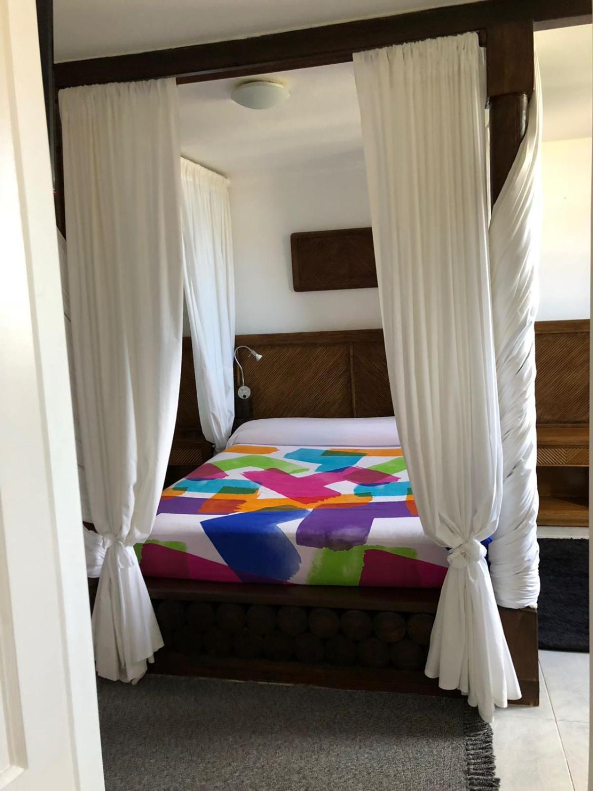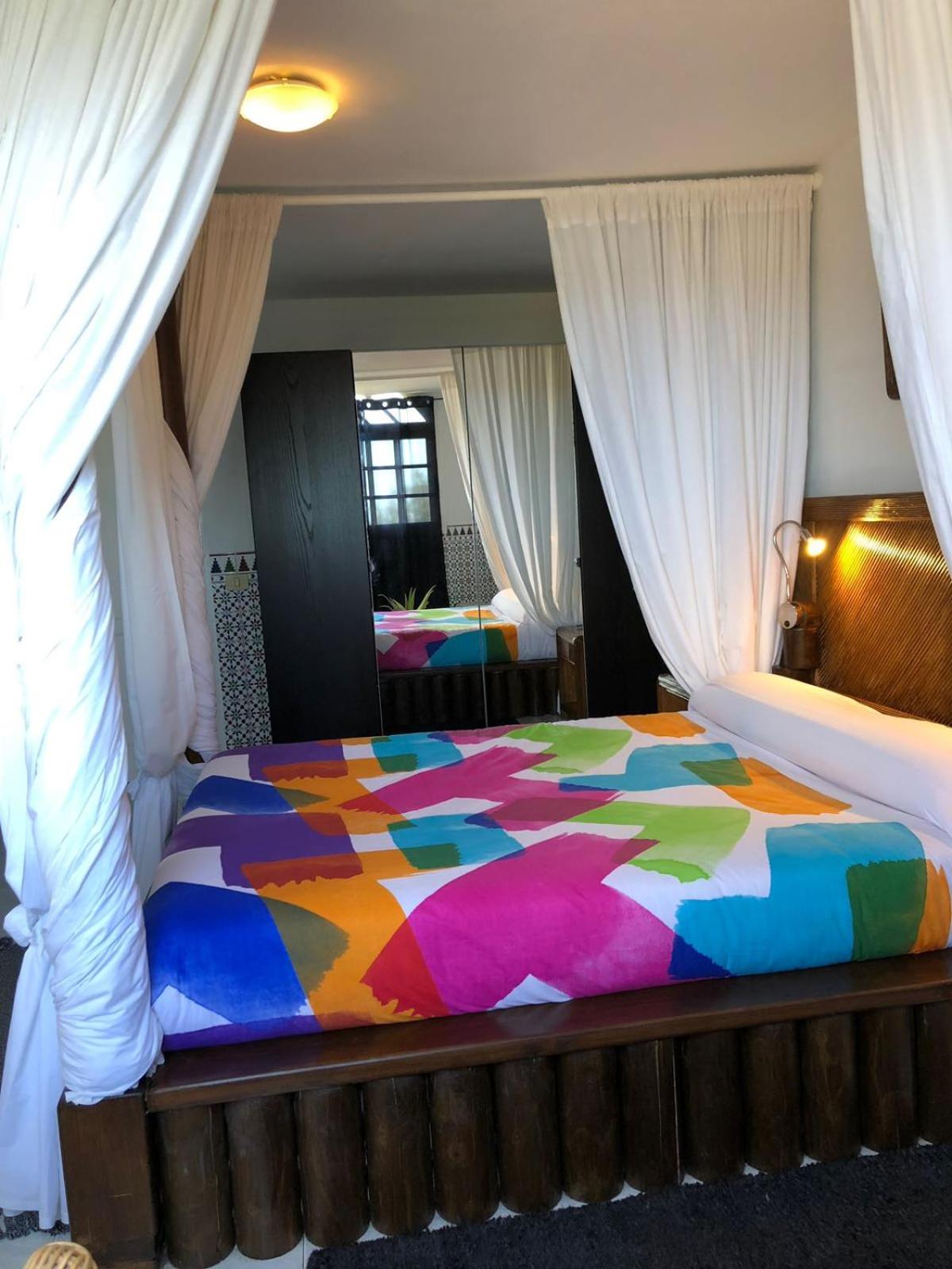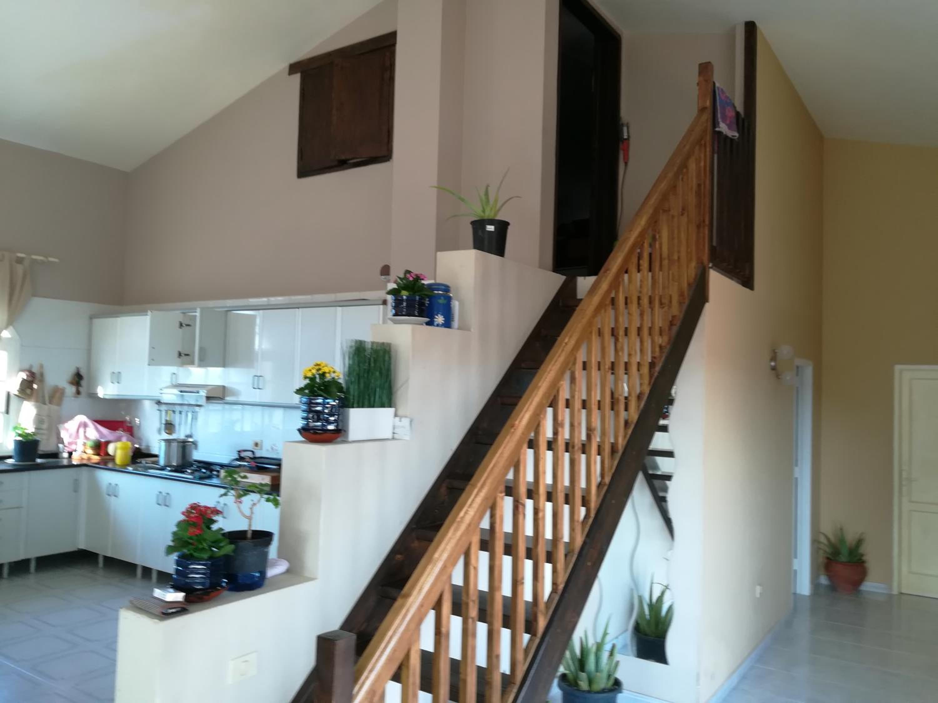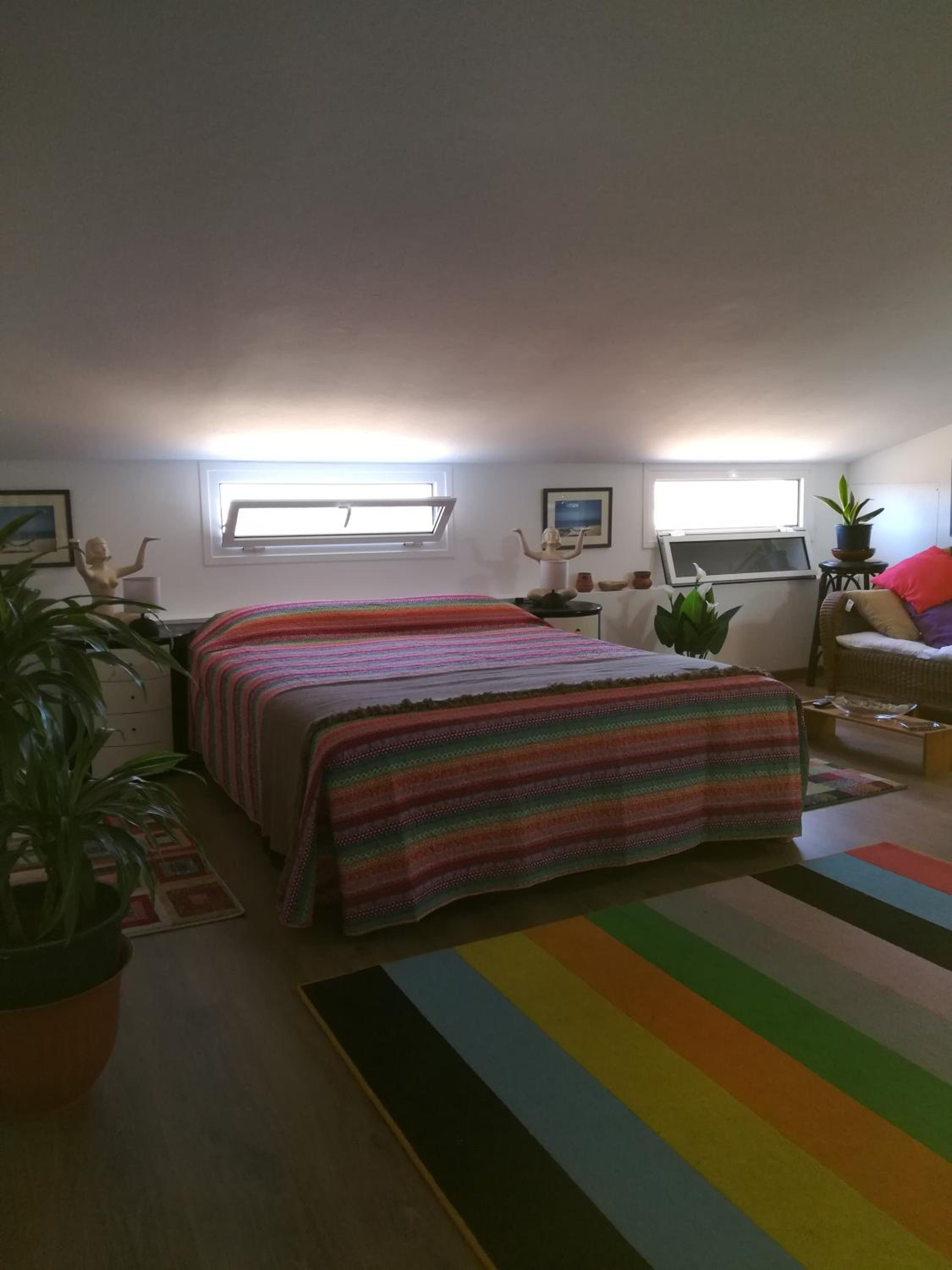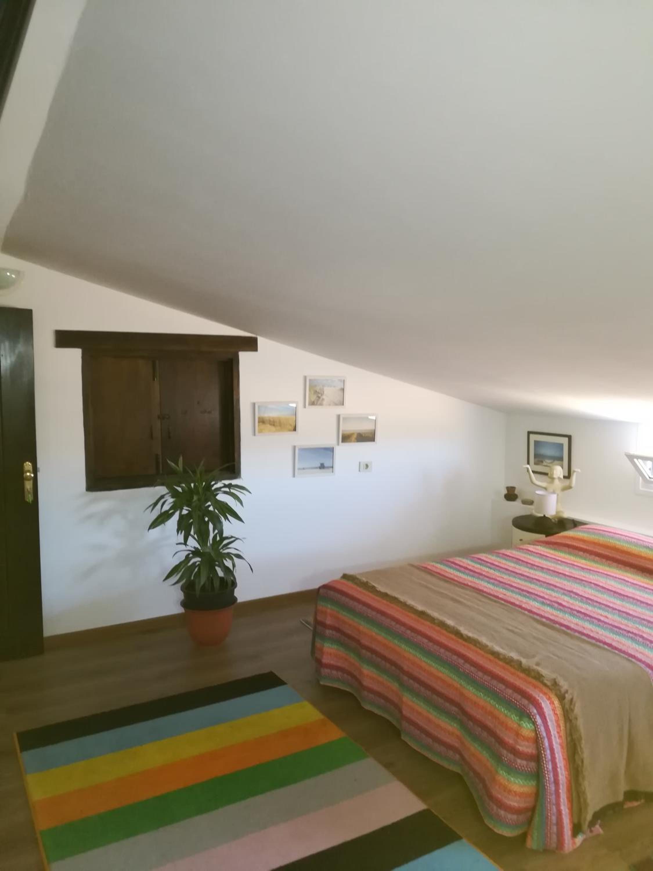 La disposiciòn de la cama con el techo en diagonal es peligroso porque si te despistas al despertar te das con el techo como fue el caso. Por lo menos en la habitaciòn que nos tocò, en la parte alta de la casa