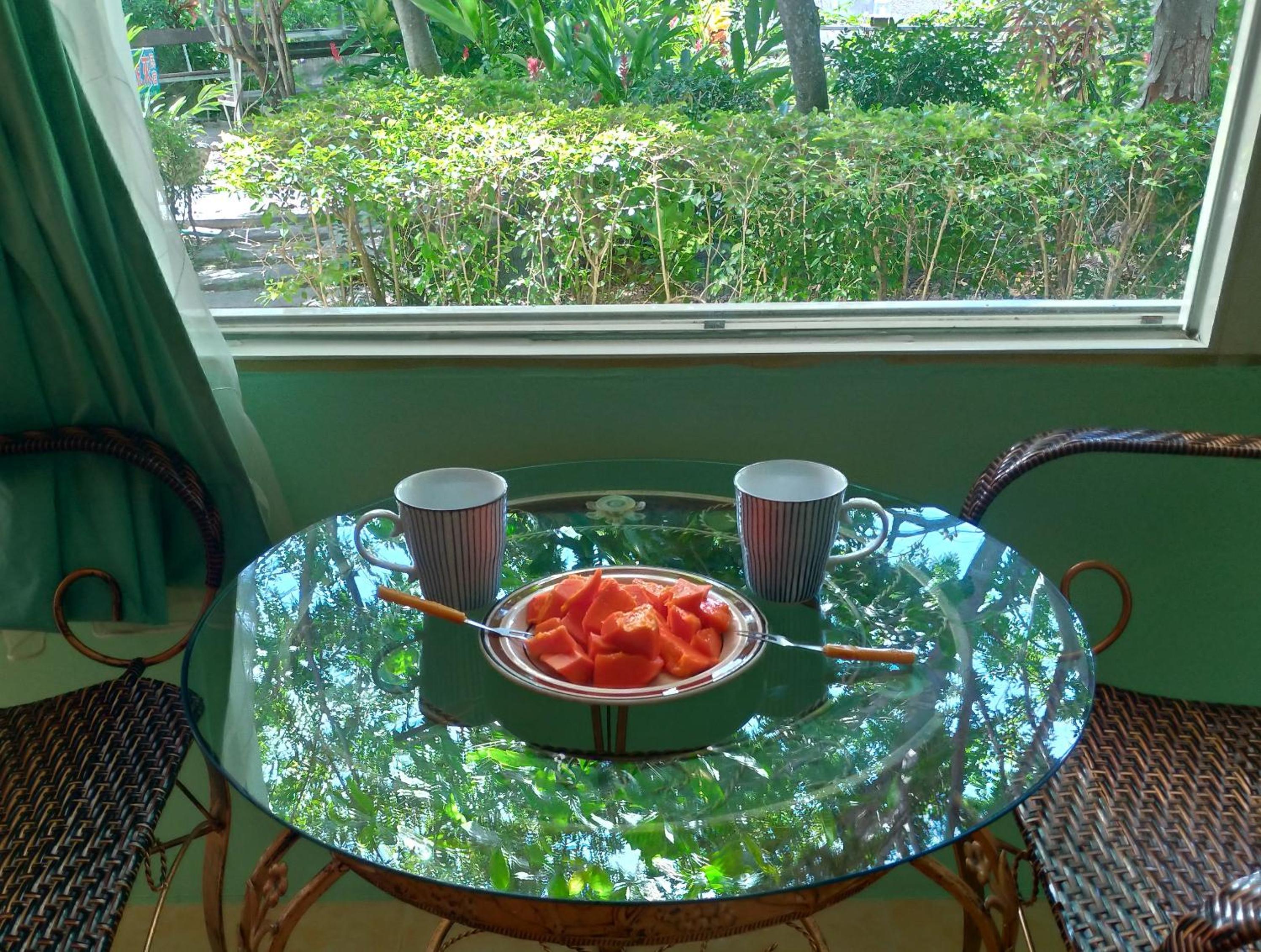 Luxurious Accommodation: Enjoy air-conditioned rooms with access to a beautiful garden. Each unit includes a private bathroom, flat-screen TV, fridge, and kettle for your comfort.