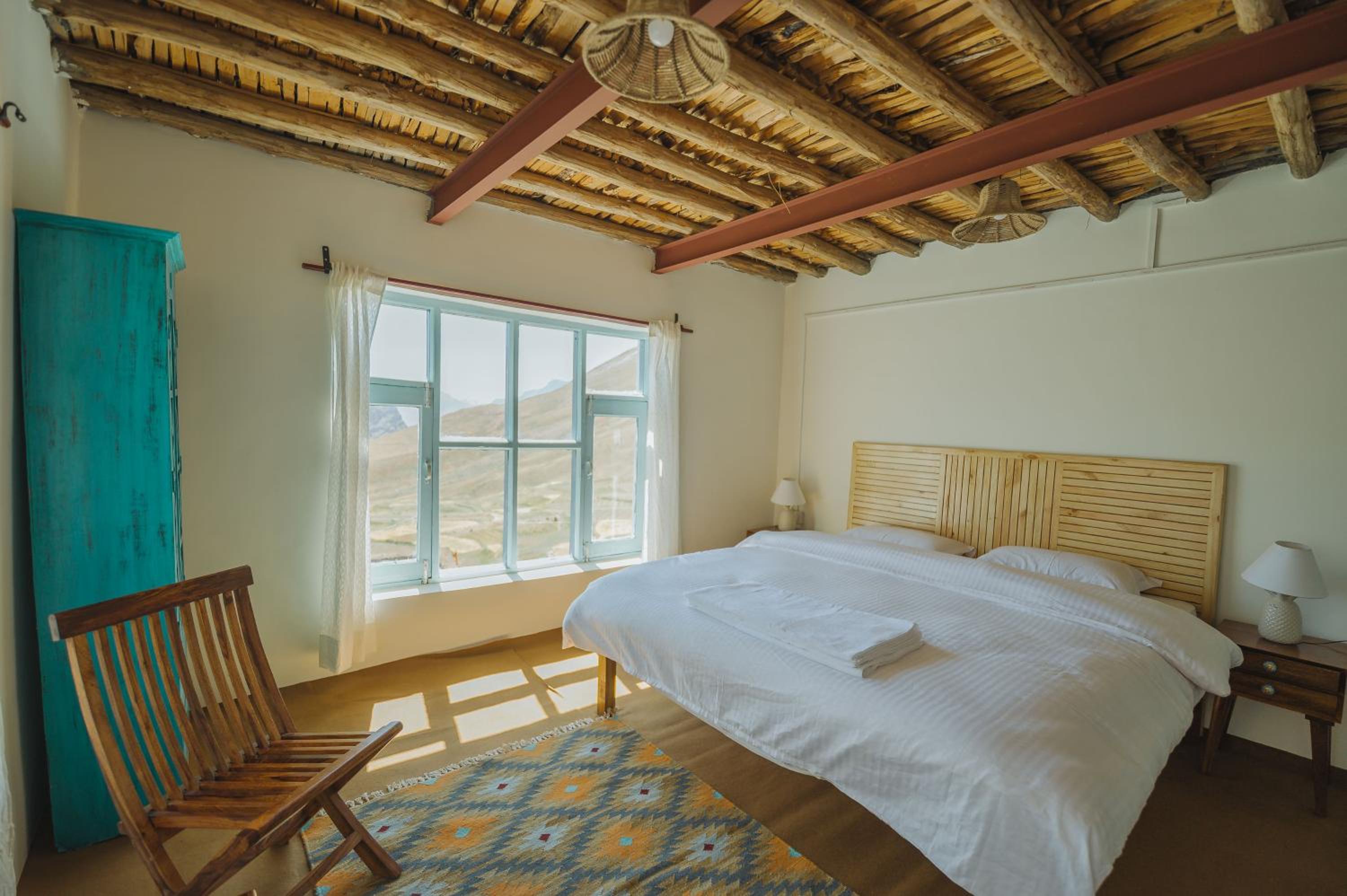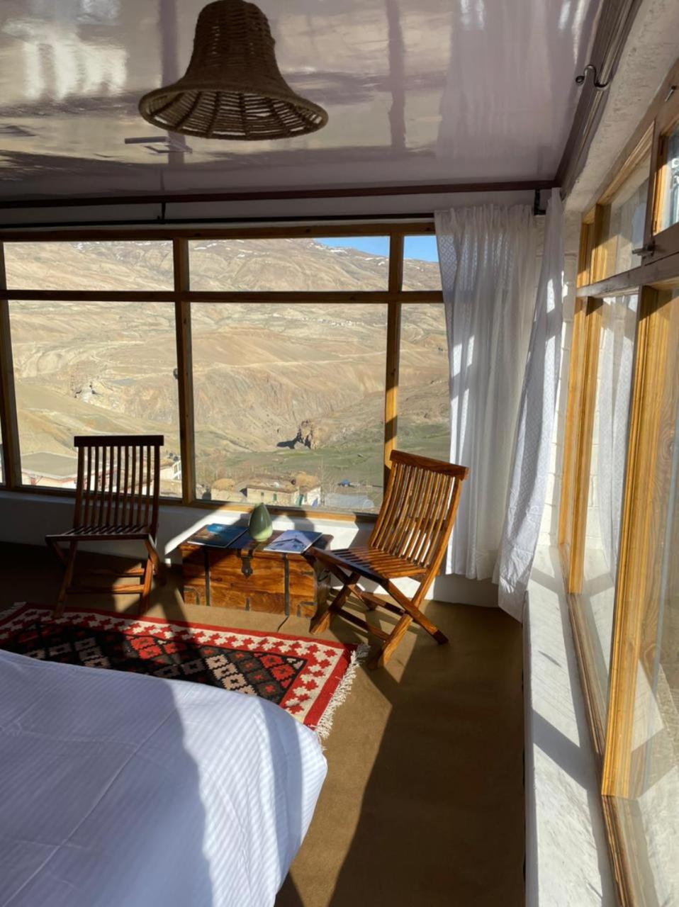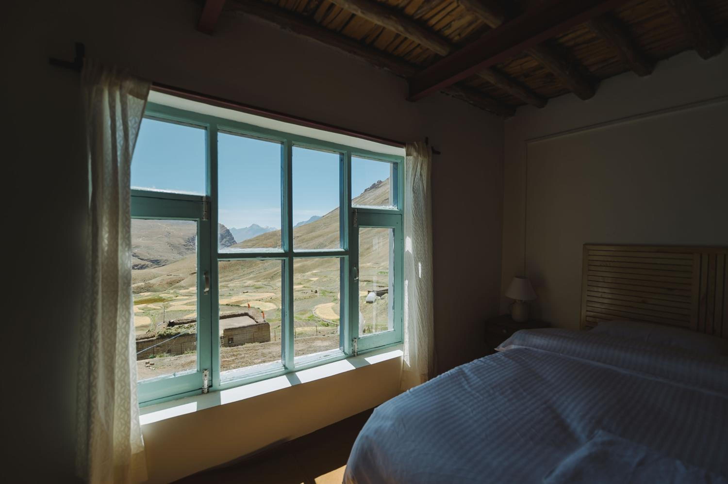 We are doctors from Indore who were returning from Hampta pass trek and at the last camp site all of a sudden decided to travel to Spiti and made our booking with Tethys Den for one night on our way to Kaza . Within 10 minutes I received a call from the owner who guided us to the property . We were extremely tired after spending 4 days and 3 nights at the trek , but were totally amazed by the room we were provided which had glass walls with majestic views outside of the mountains. The room very clean and cosy , well carpeted with a king size bed with comfortable mattress and white sheets . The bathroom was also quite big with plenty of hot water and good quality toiletries.