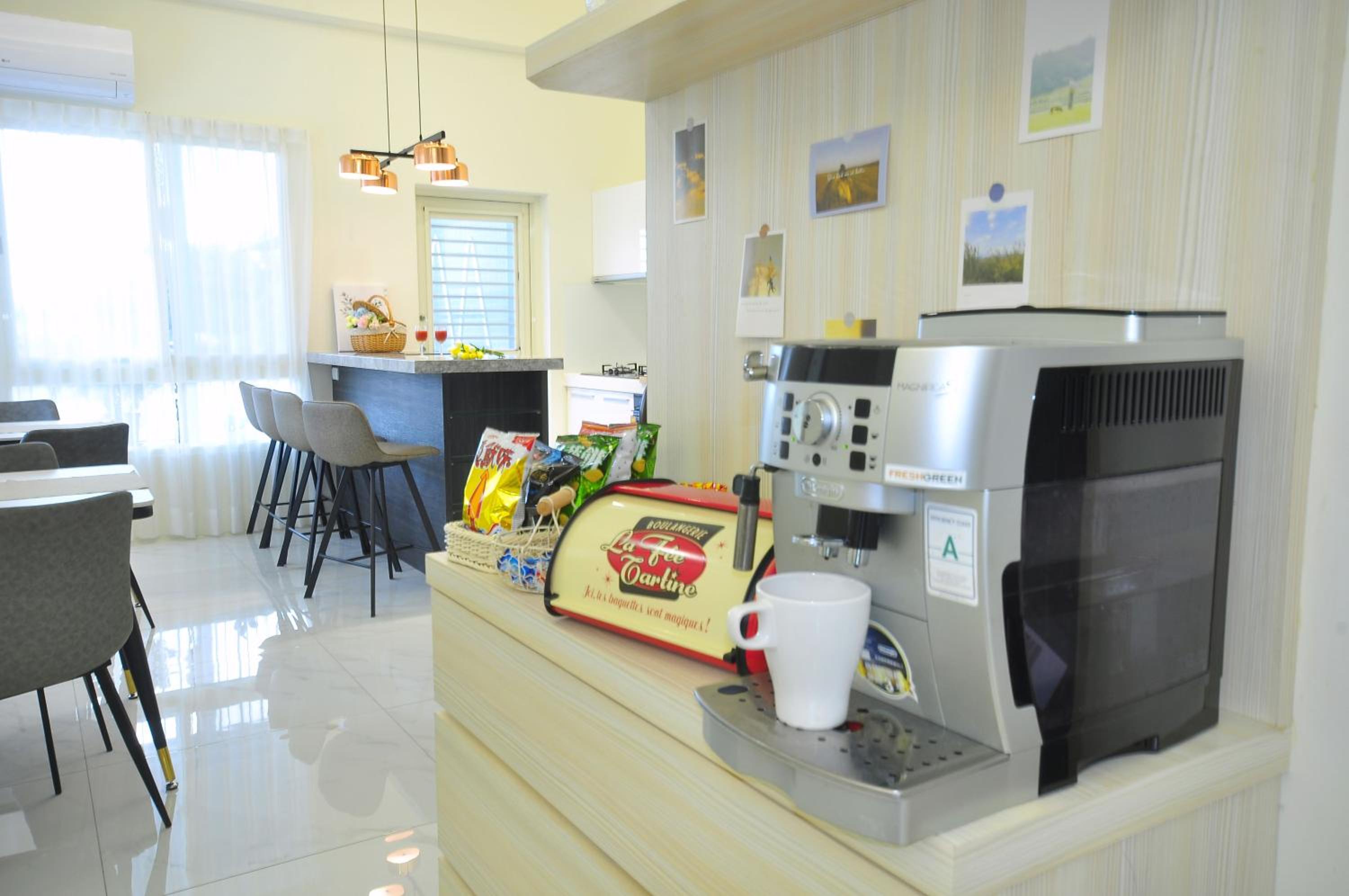 入住時是除夕,我們有叫菜,但民宿沒有鍋子及加熱的用具,只有一個小小的電磁爐、小小的微波爐、電鍋還是請民宿老闆要才有,餐具不夠、碗不夠、盤子不夠、我們外訂拿回來的餐食全都無法加熱,只有佛跳牆可以加熱,還有湯,其他菜取回時的容器皆可用微波鍋加熱,但微波爐太小放不進去,又沒有磁盤可用。可增加餐具及煮食的鍋具會更好。