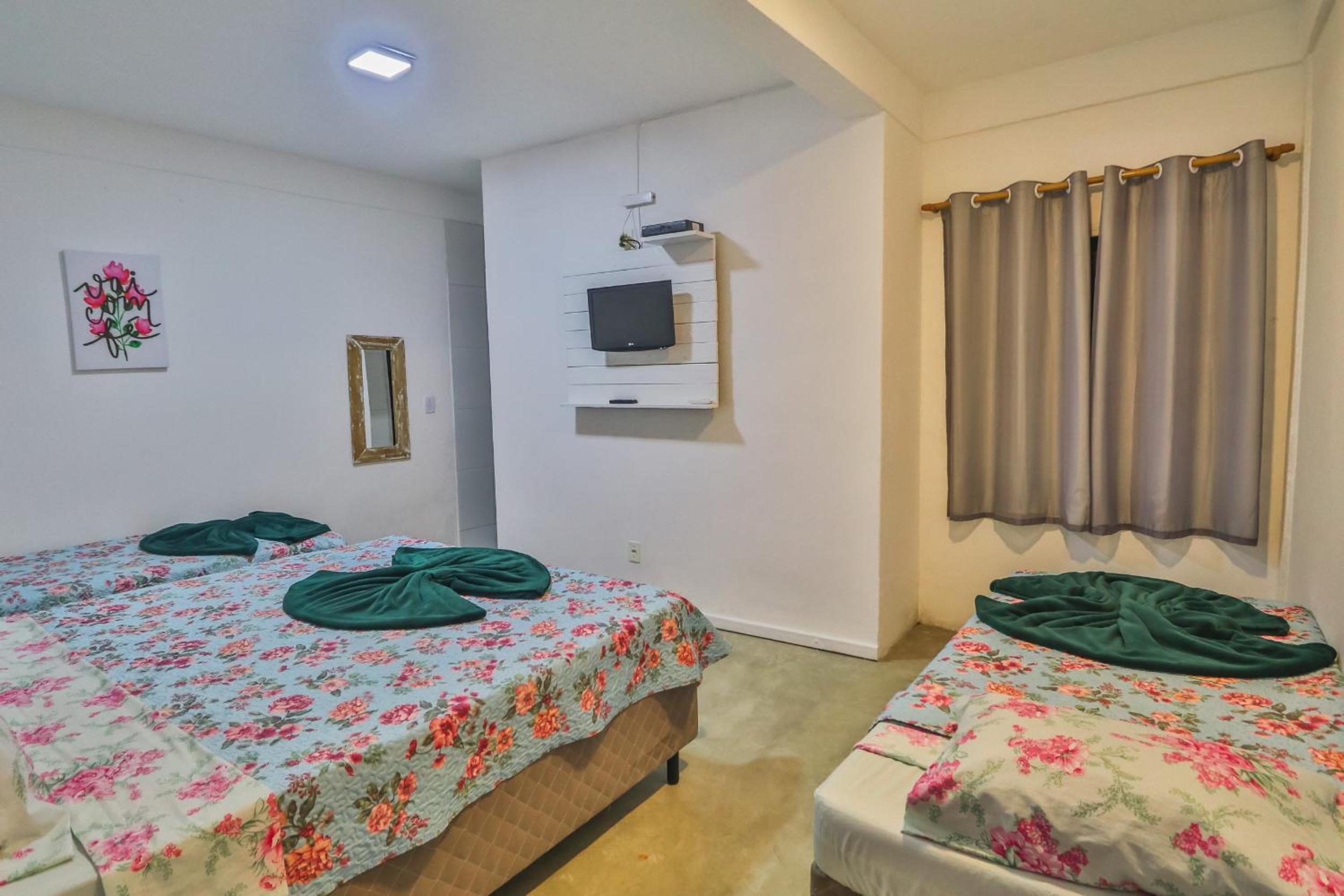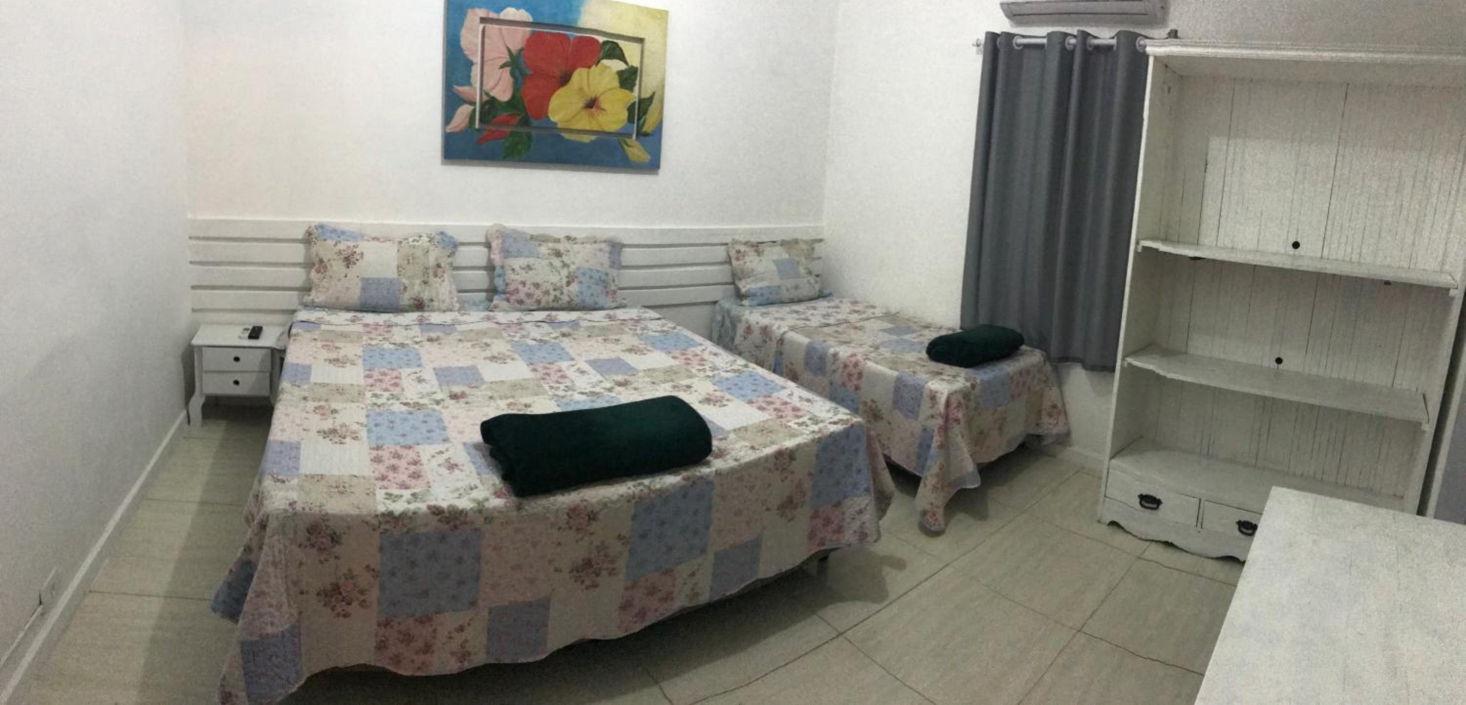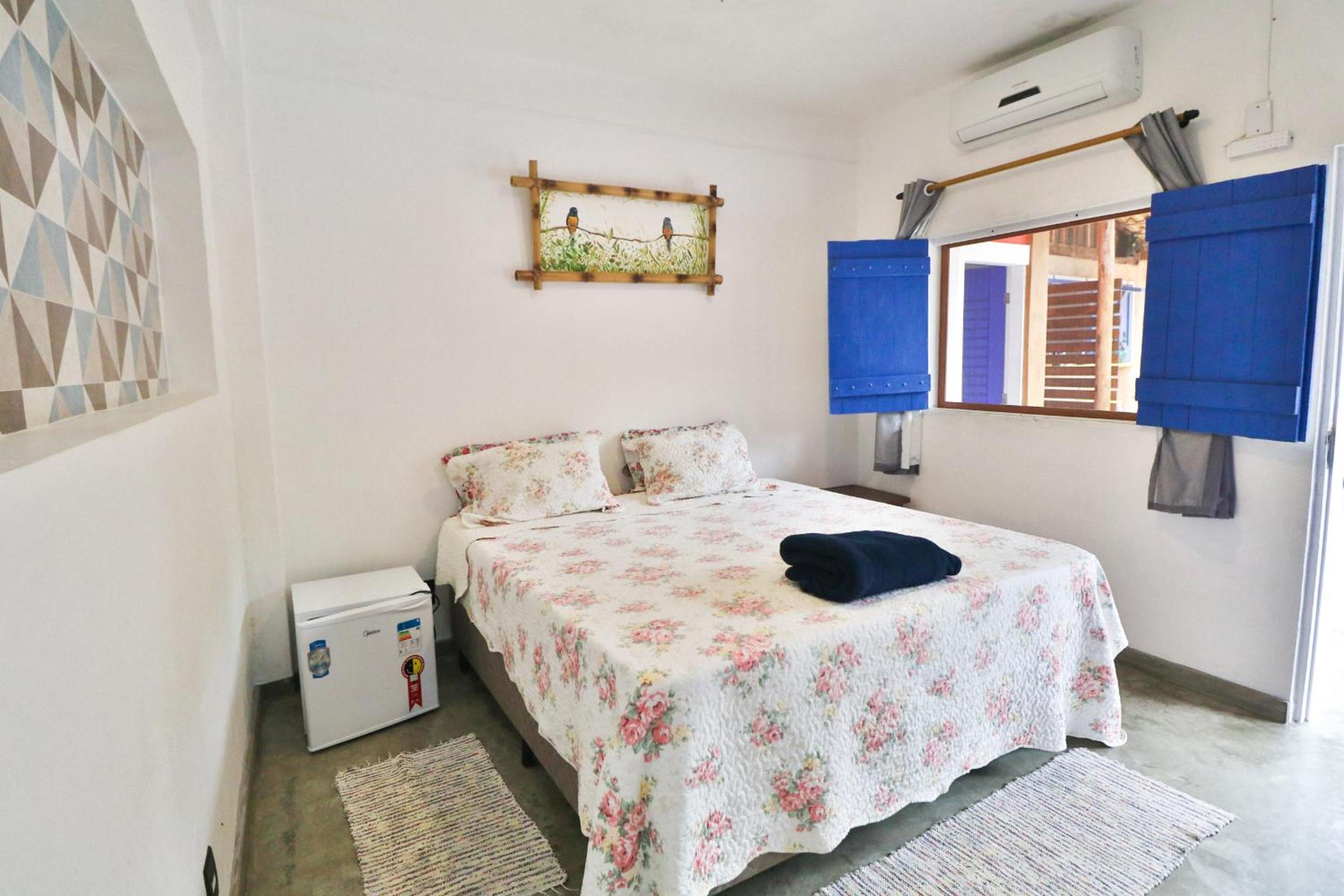 O quarto era bom e muito limpo, com ar-condicionado e frigobar, o que fez bastante diferença para o conforto da estadia.
