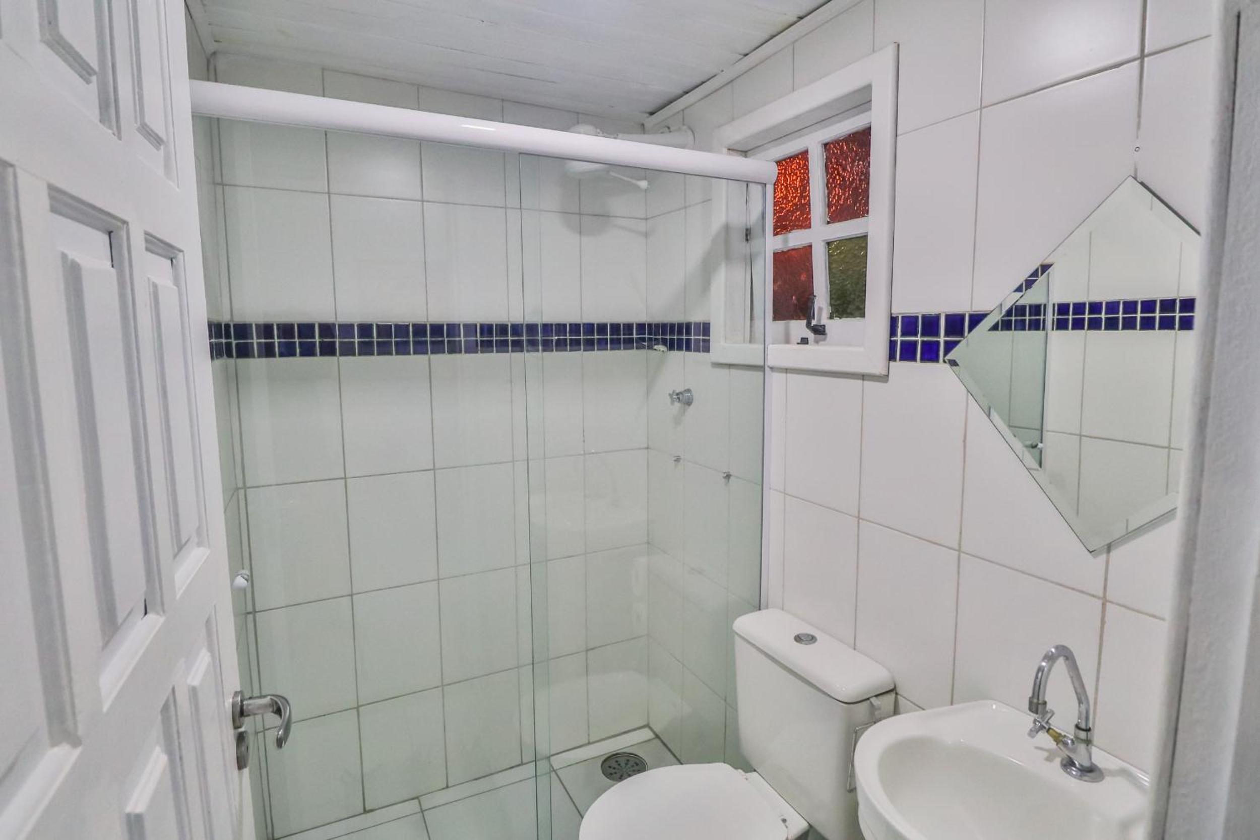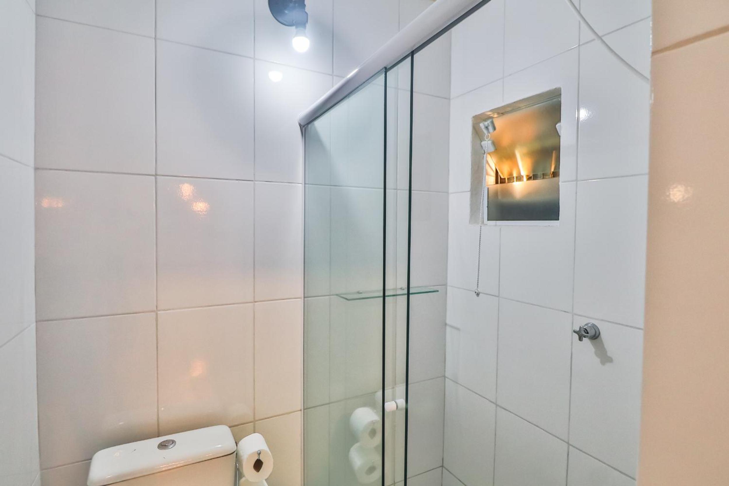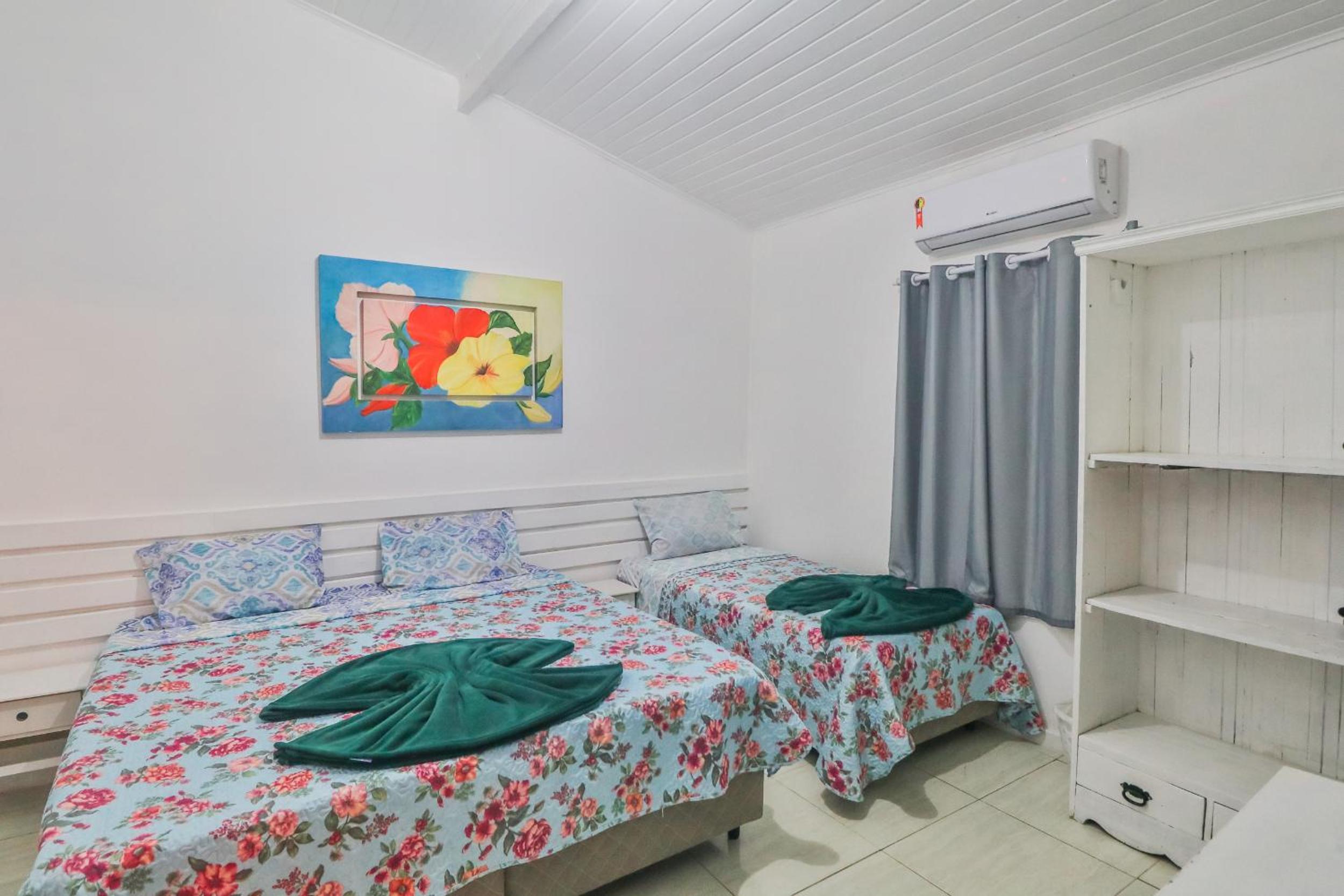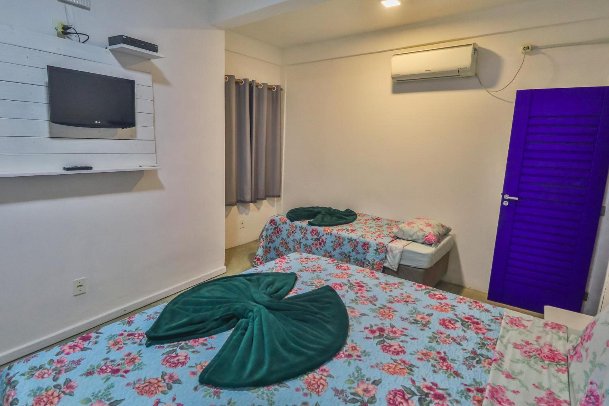 O quarto era bom e muito limpo, com ar-condicionado e frigobar, o que fez bastante diferença para o conforto da estadia.