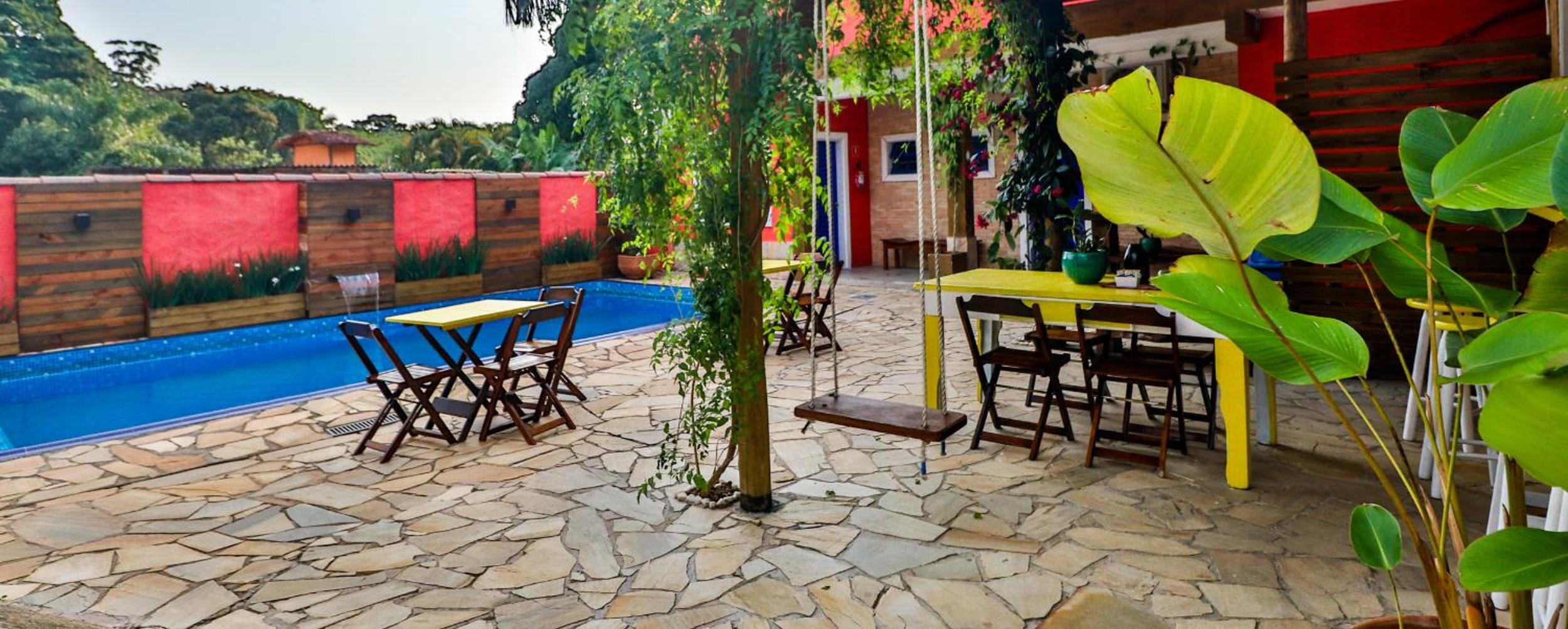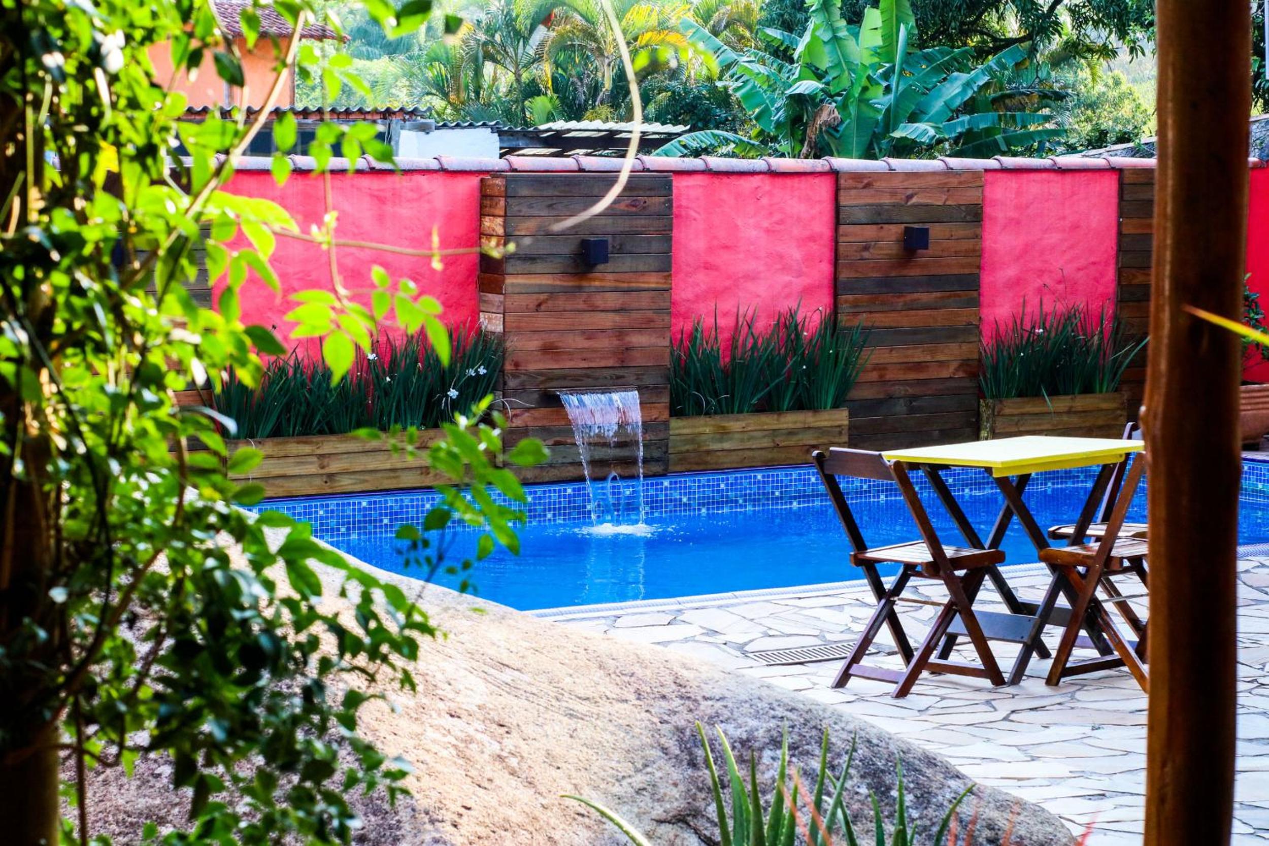 A piscina é muito boa e agradável, e as áreas comuns da casa também são muito bem cuidadas e convidativas.