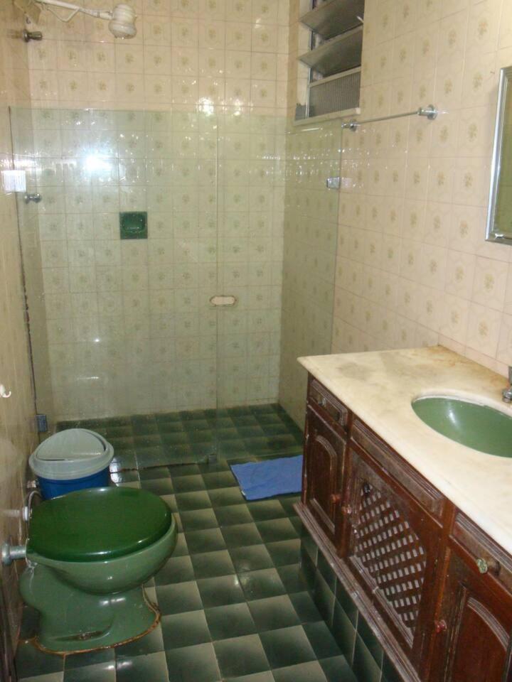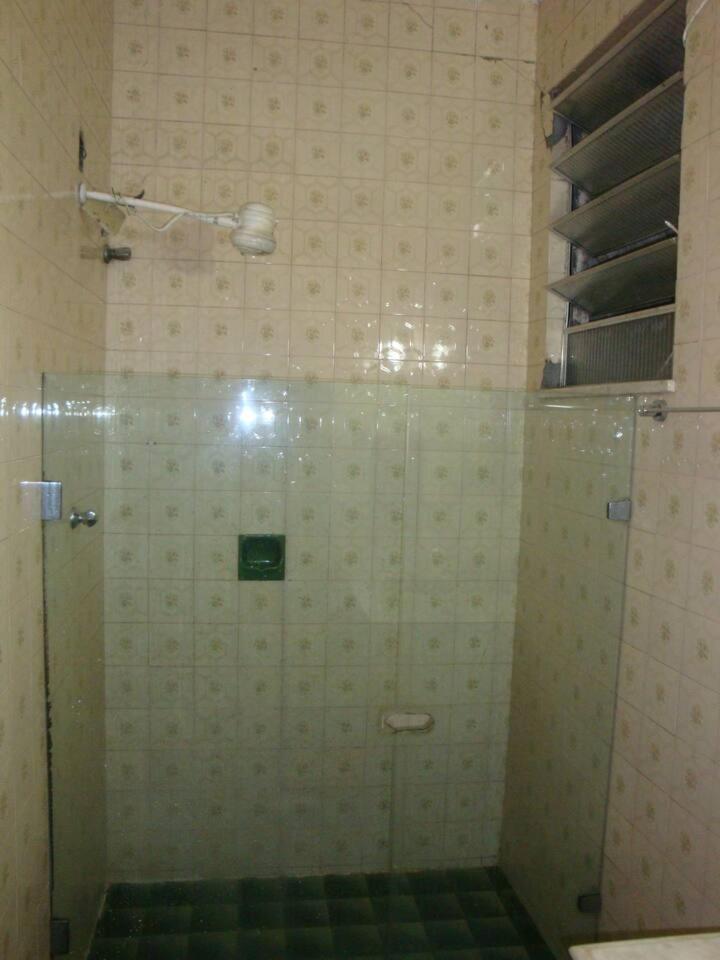 Banheiro com cheiro forte, chuveiro não esquenta, box do banheiro quebrado e difícil de fechar, quarto com paredes muito úmidas.