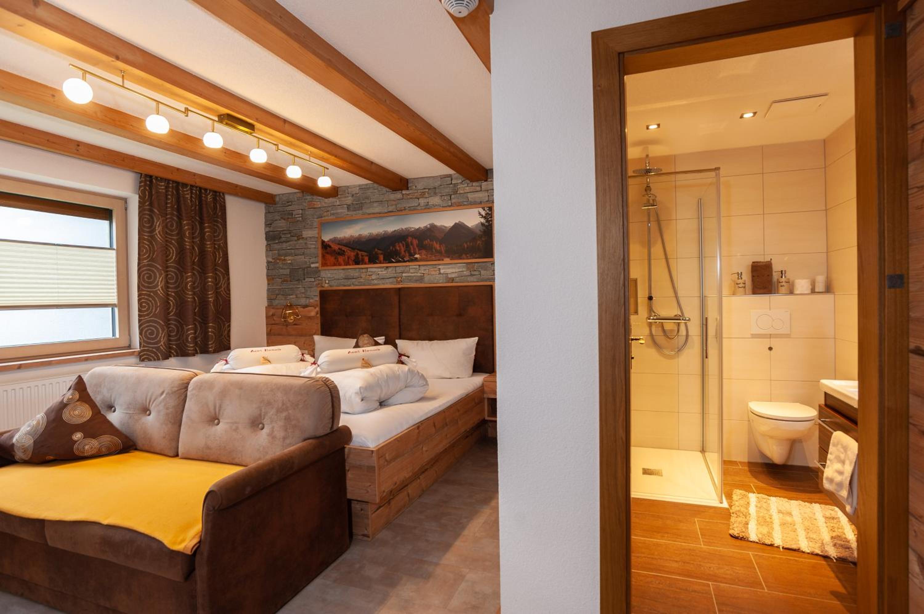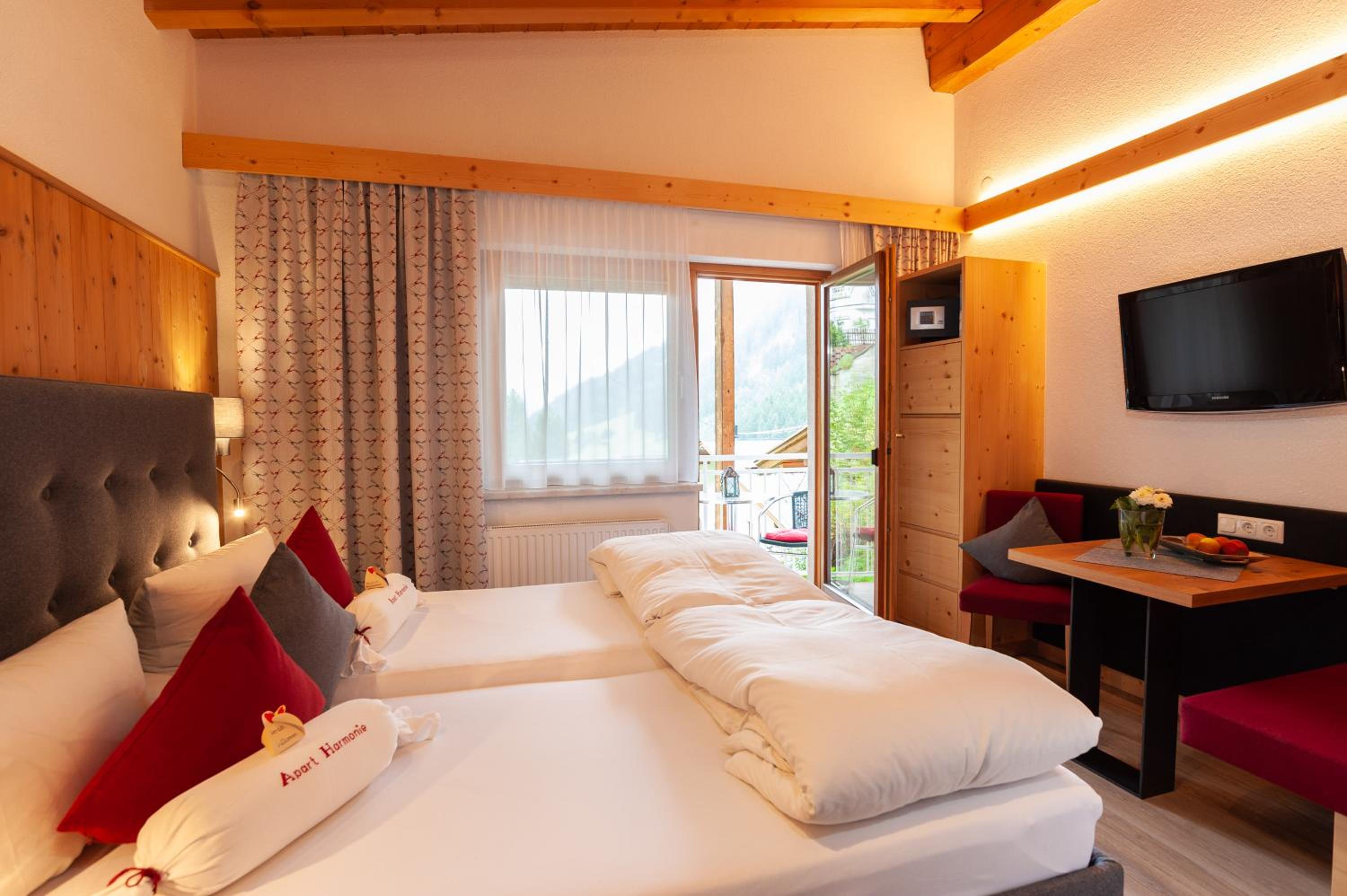 Experience comfort and relaxation at Apart Harmonie. Indulge in our modern accommodation with flat-screen TVs and enjoy our small wellness area with sauna, infrared cabin, and steam bath.