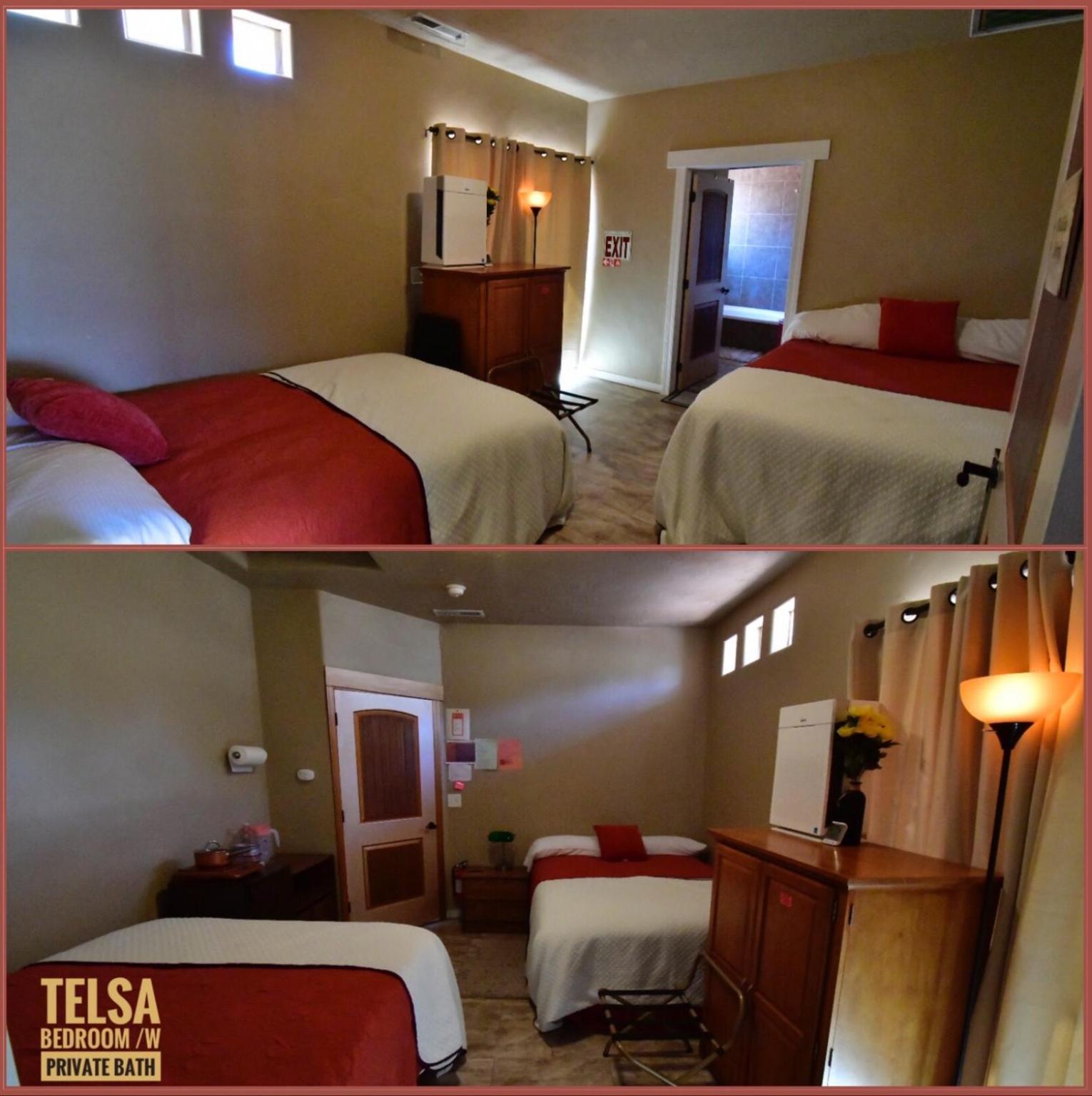 The accommodation is very unique, more like Airbnb (private property). We stayed at the Tesla room, it has private bathroom (very clean) and the shower was 10/10 (nice hot water, great water pressure and shower hose). Bill, the owner of the house was always present, he was very nice and gave us tips for the area. We were allowed to use the kitchen. Plenty of drinking water in the room. If you expect a hotel/motel, this is not for you, but we (group of 3) stayed for two nights while visiting Zion and it was everything we needed.