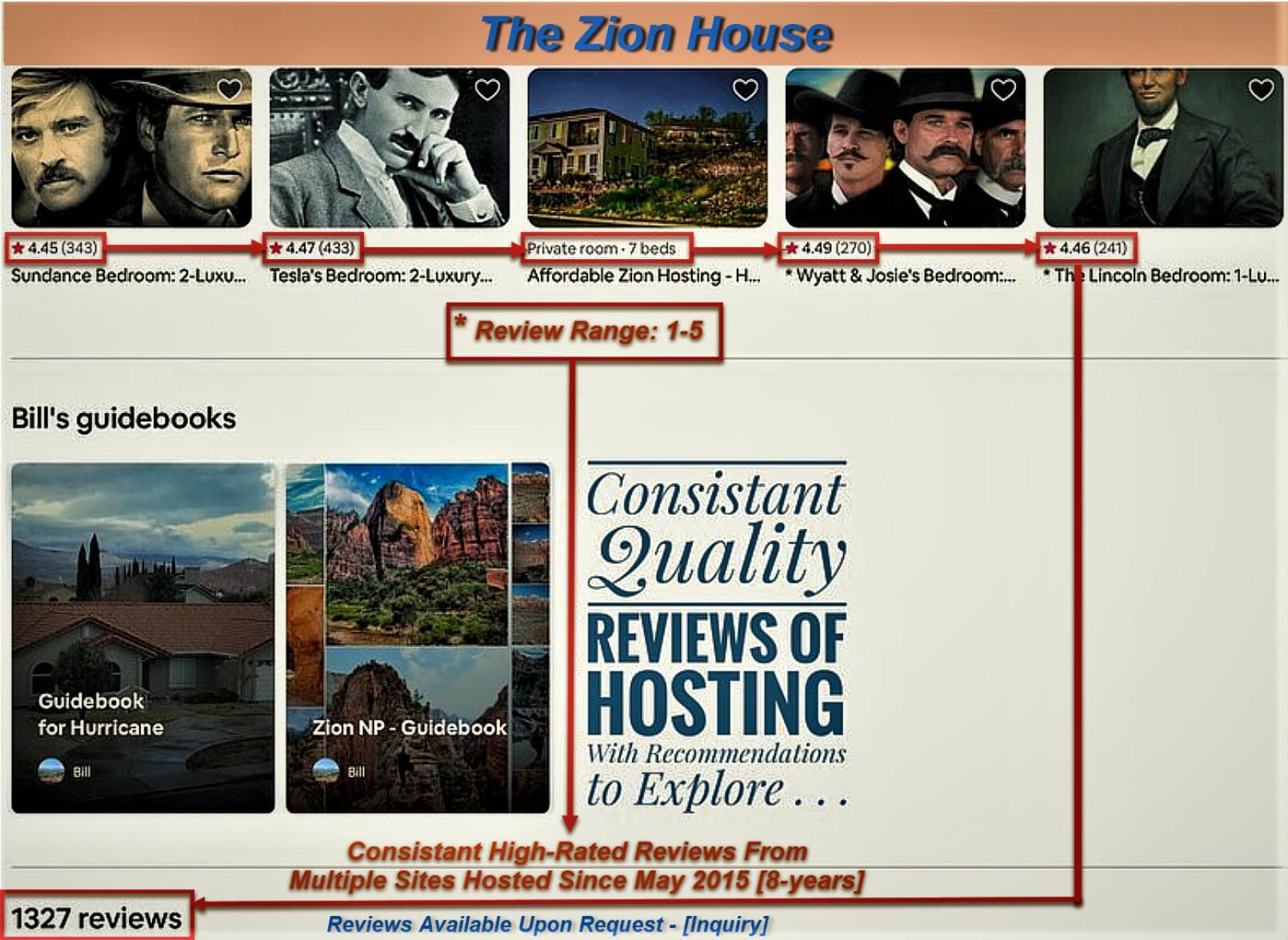 Our host Bill was very friendly and helpful. Rooms contained everything that could be reasonably expected. Would highly recommend for groups travelling to Zion park