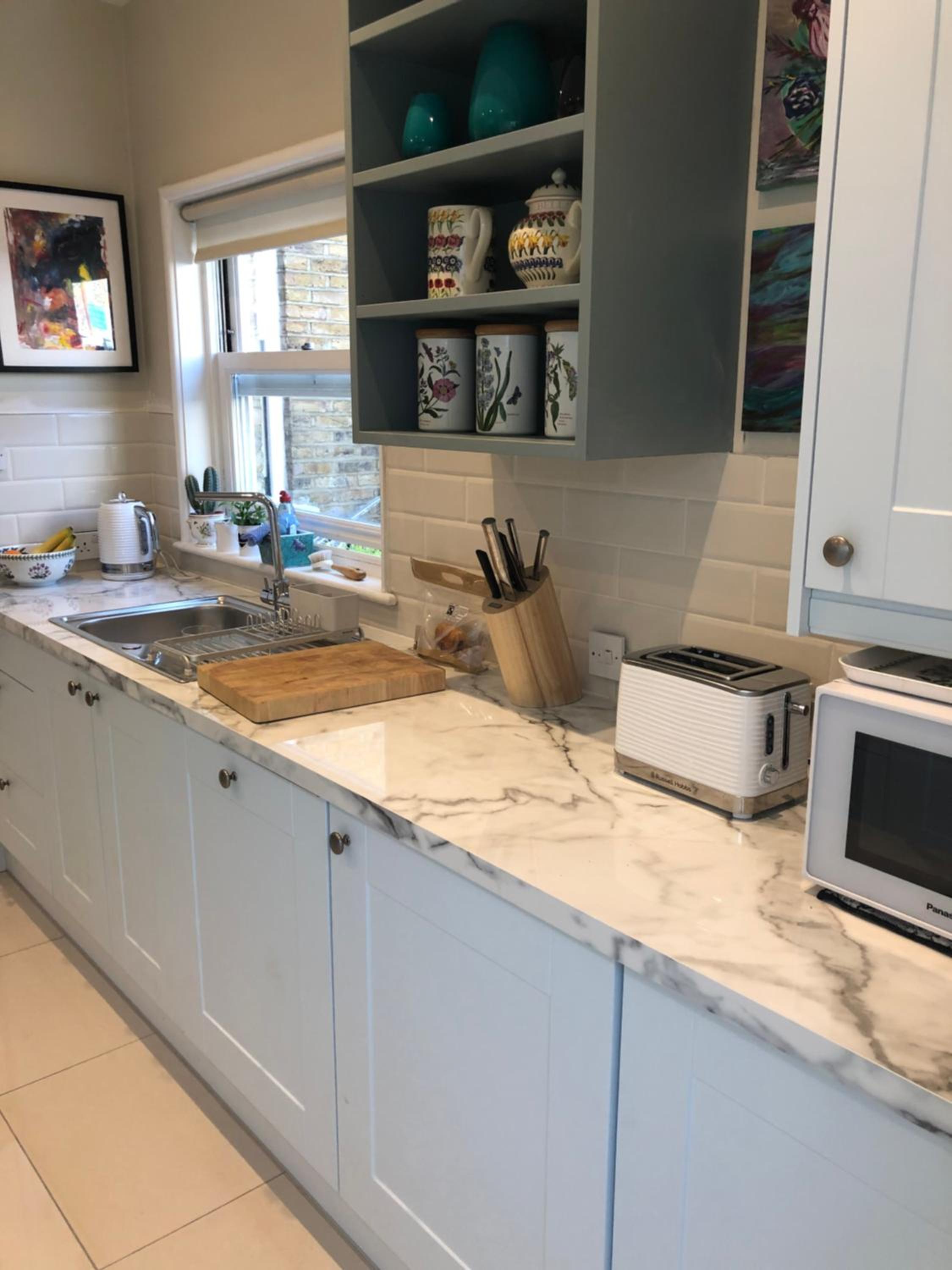 Sadly, I got up at 5 am and back at 11 pm on both nights to watch the Wimbledon matches. So we never got a chance to really talk about London with the owner Terezsa. The District line train does go by the window, but I am a sound sleeper and there were earplugs provided. It was very quaint and well-done.