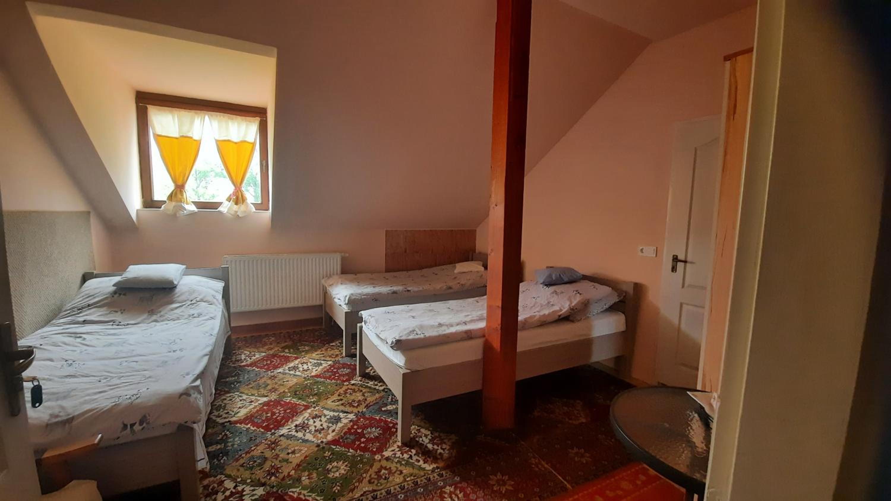 Totul bine, bucătărie mobilata si utilata, are aparat de cafea la etaj, funcționează cu euro. Poarta se închide la ora 23 si se deschide la 6. Dupa ce întrați in curte mergeți pana in fata si putin stanga, prima casa pe stanga nu e cazarea, acolo locuiește proprietarul. Are un acvariu mare cu pești in bucătărie.
