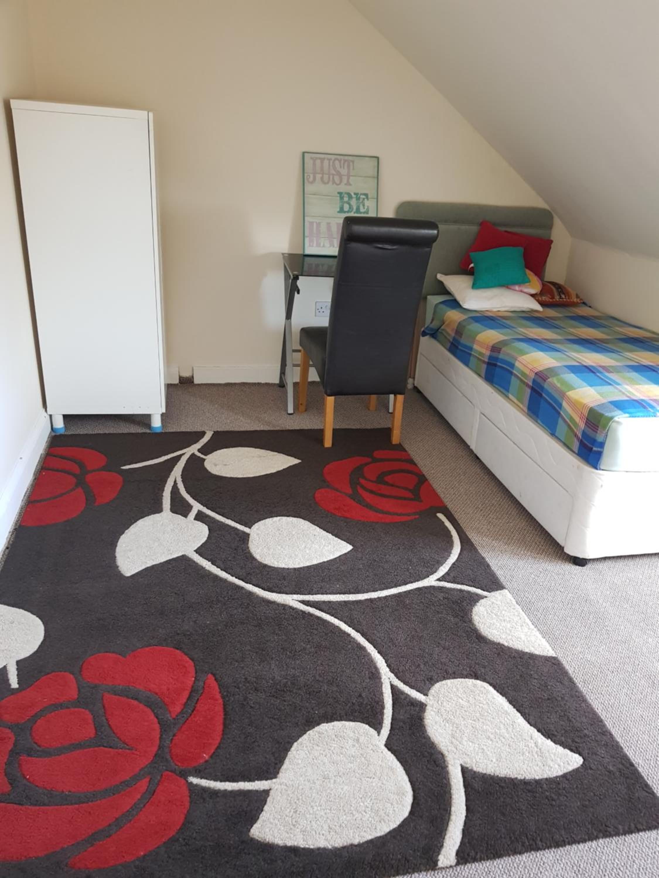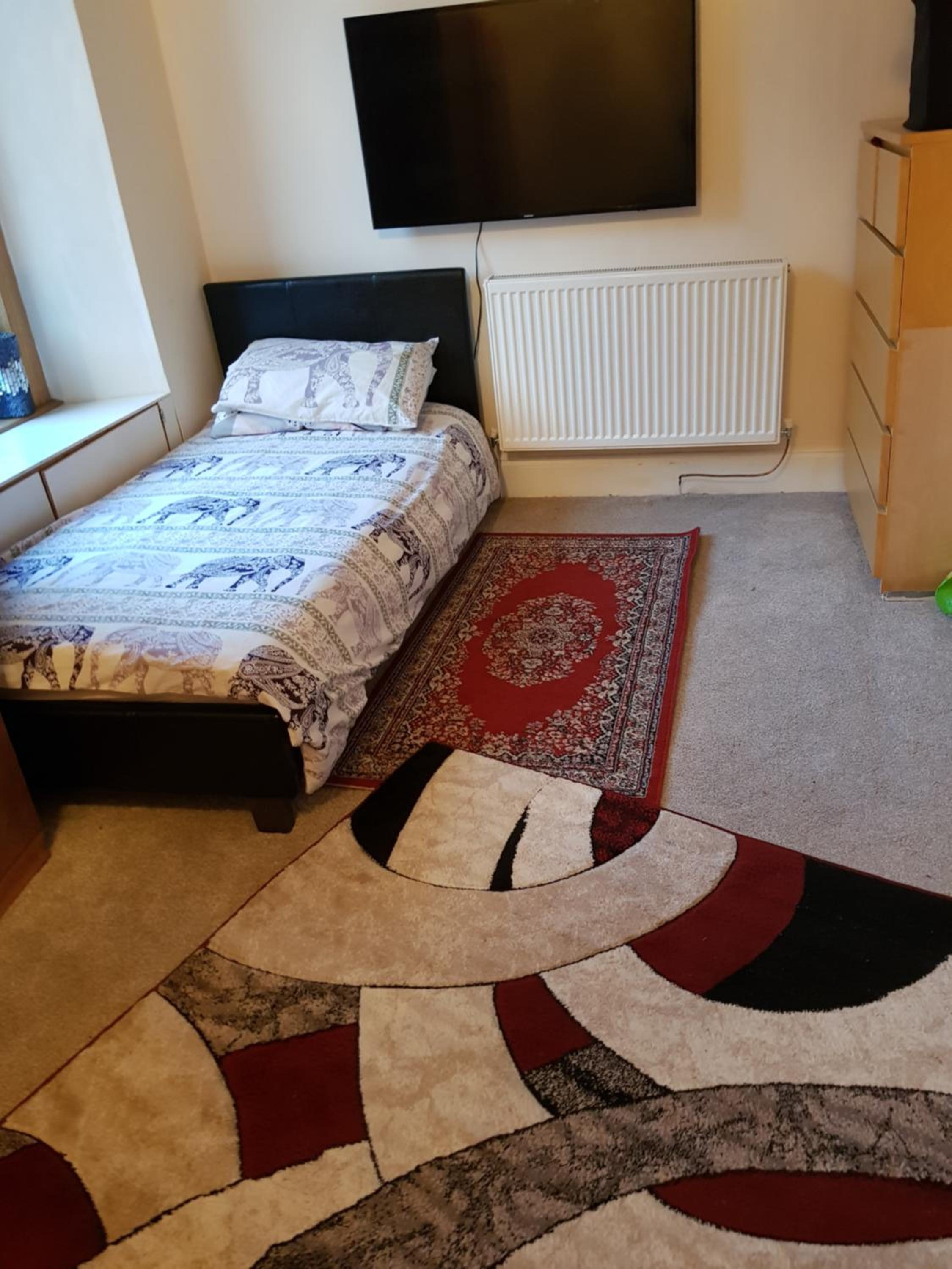 The room had no way of locking it, shared bathroom, you could hear all other rooms and the floor. TV had no socket close by to connect it. Drawers were already full of stuff from the owners. The stool to sit on the room was damaged and unstable.