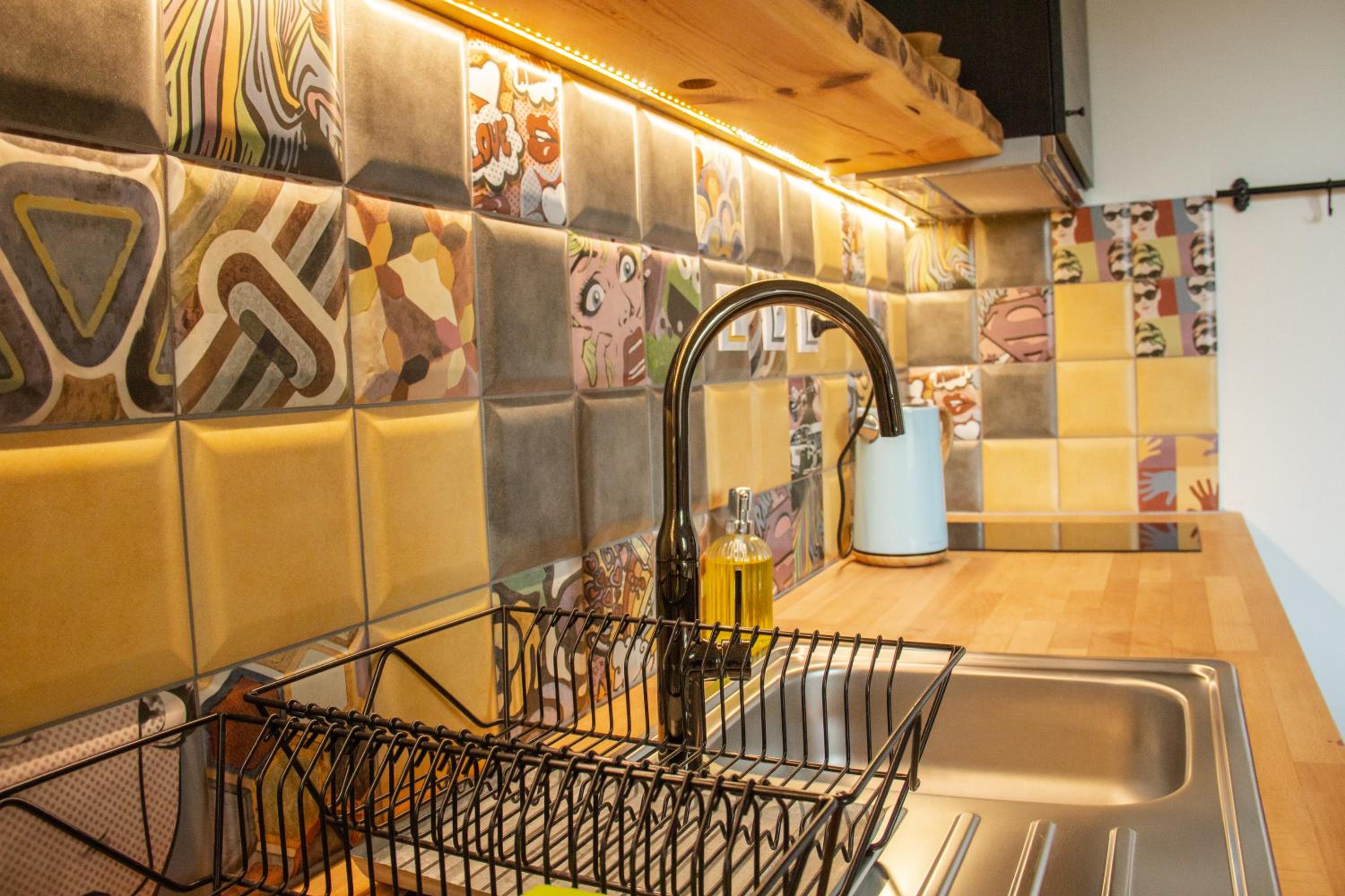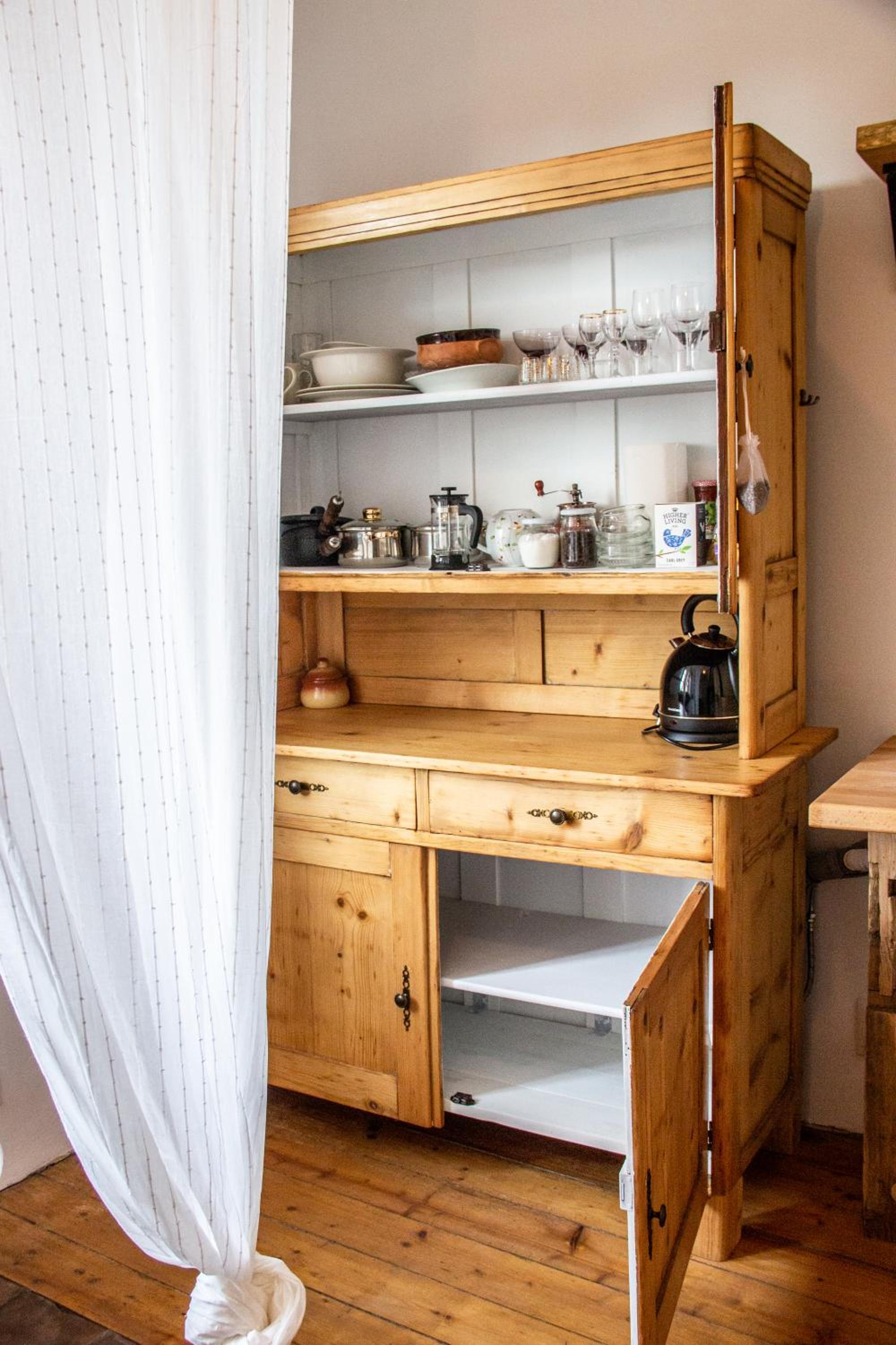 Nádherná postel. Pěkný a praktický koutek na vaření čaje a kávy, plusem je lednice.