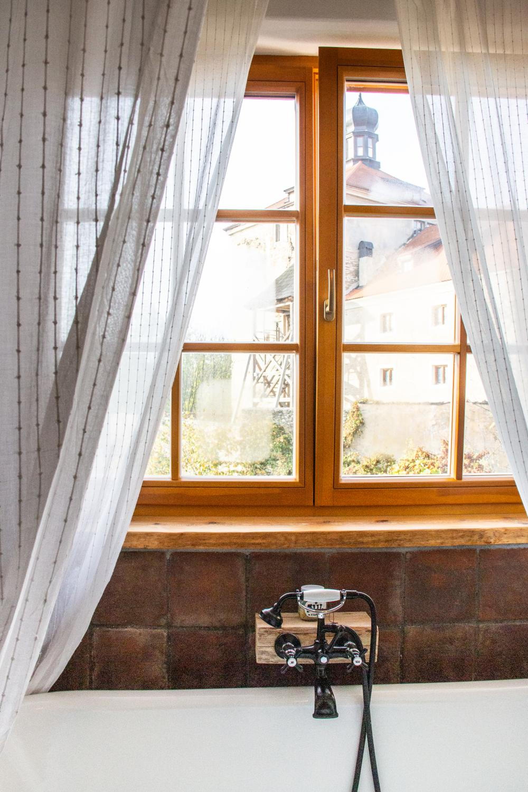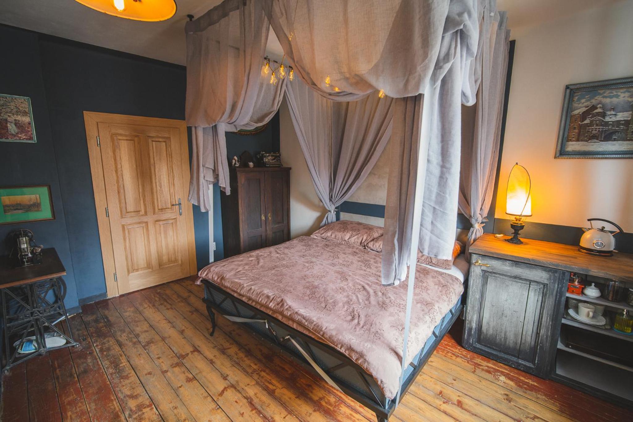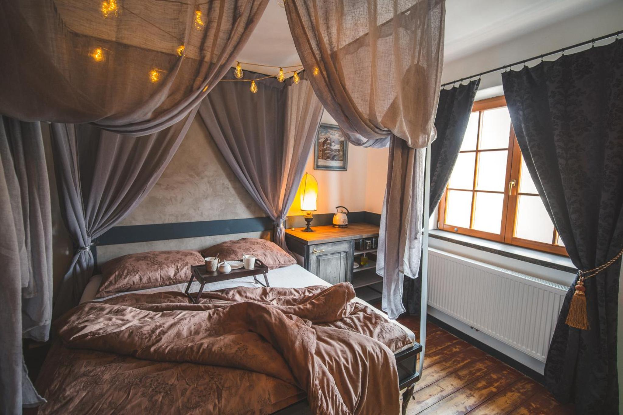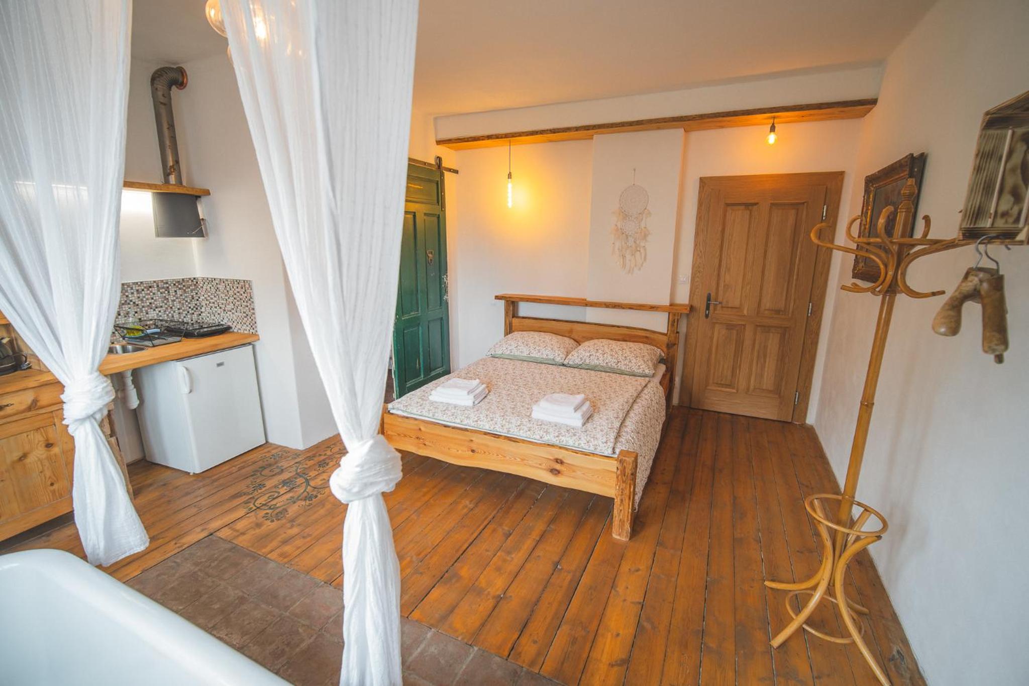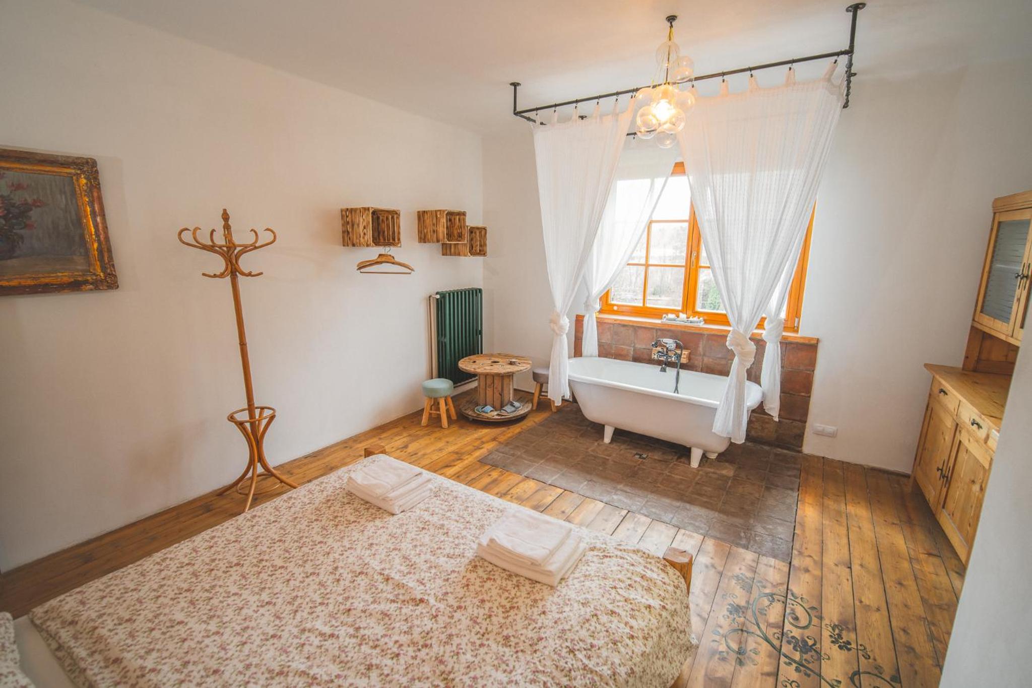 Nádherná lokalita i stylově zařízený pokoj. Vana. Klid. Tma. Teplo.