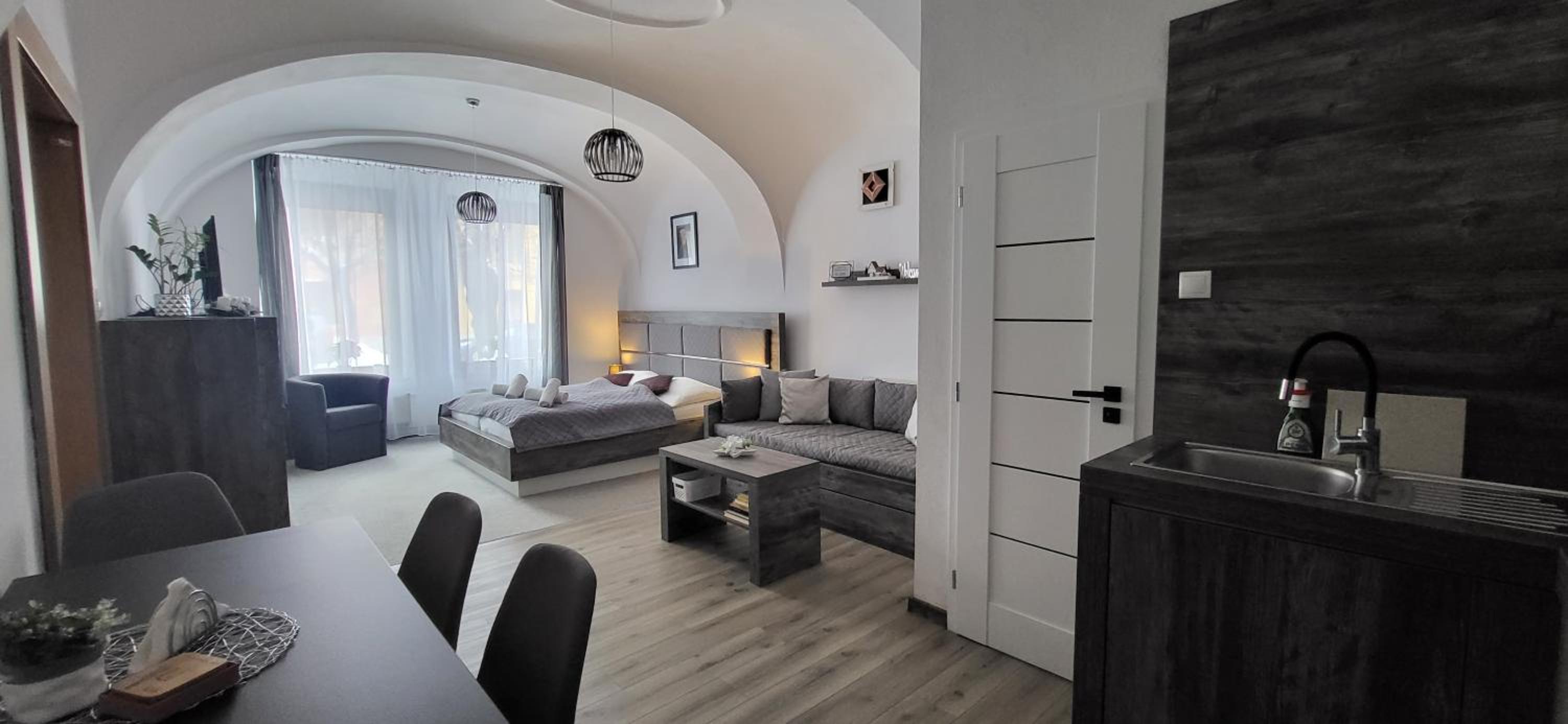 Výborná lokalita v klidné části centra. Parkování hned u vchodu. Velmi příjemní majitelé. Perfektně vybaveno.