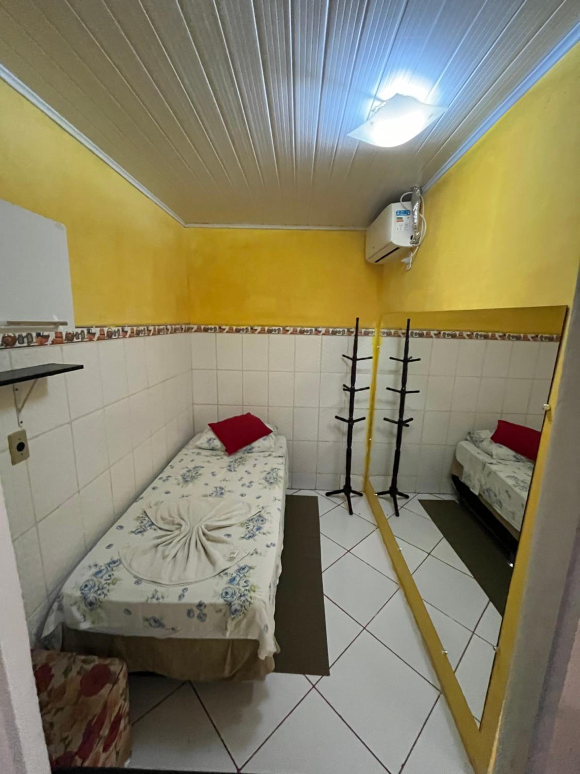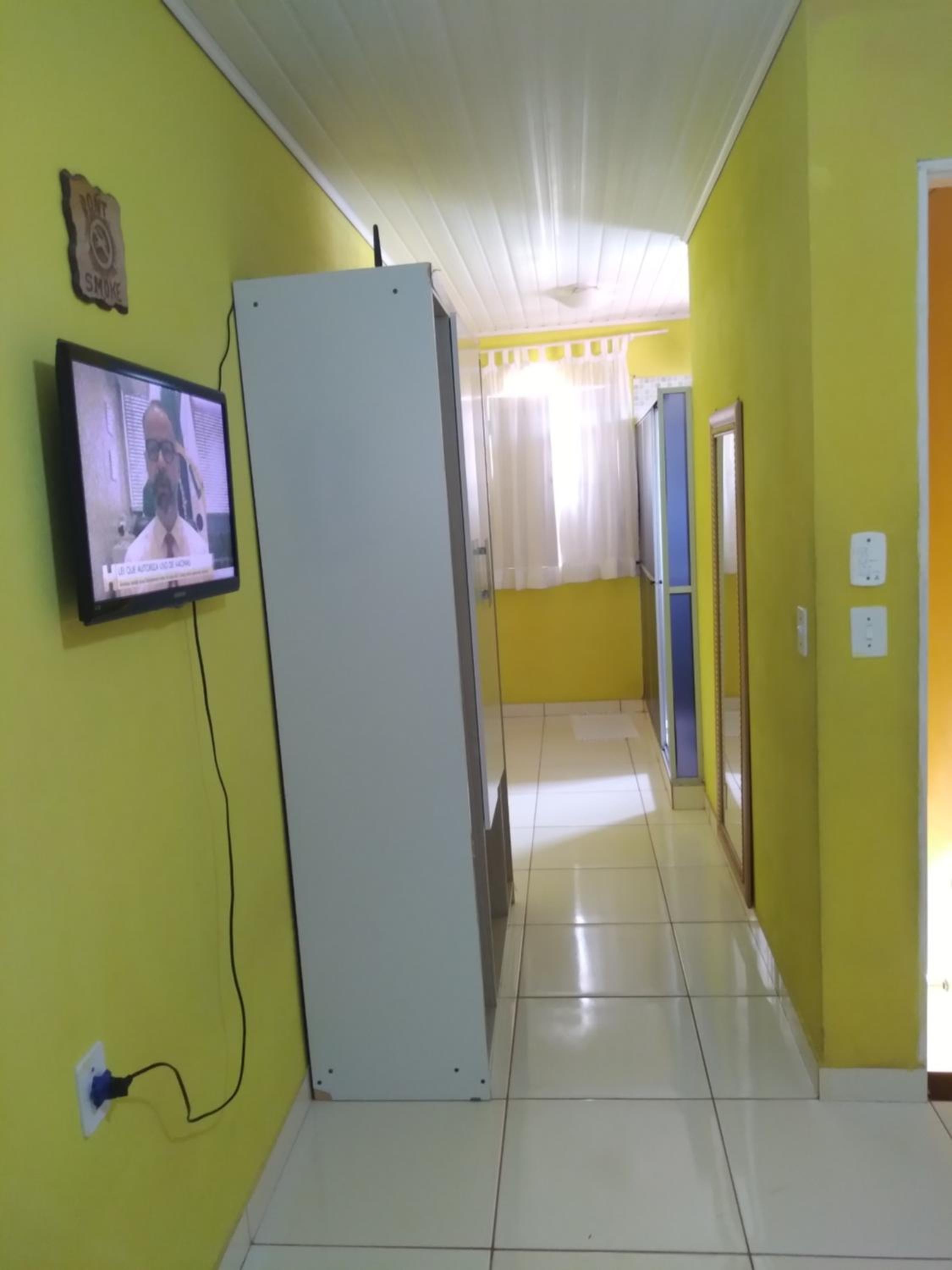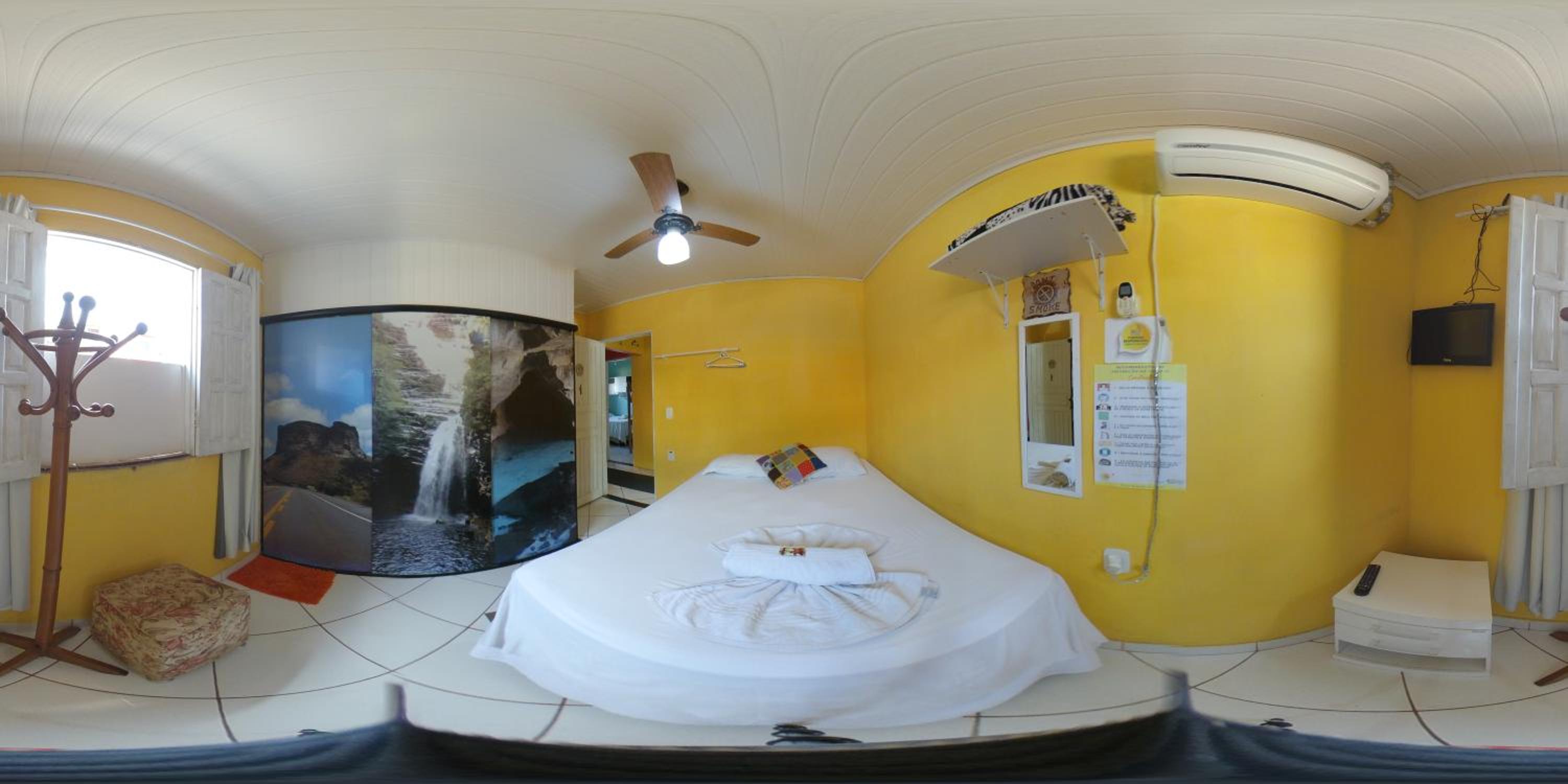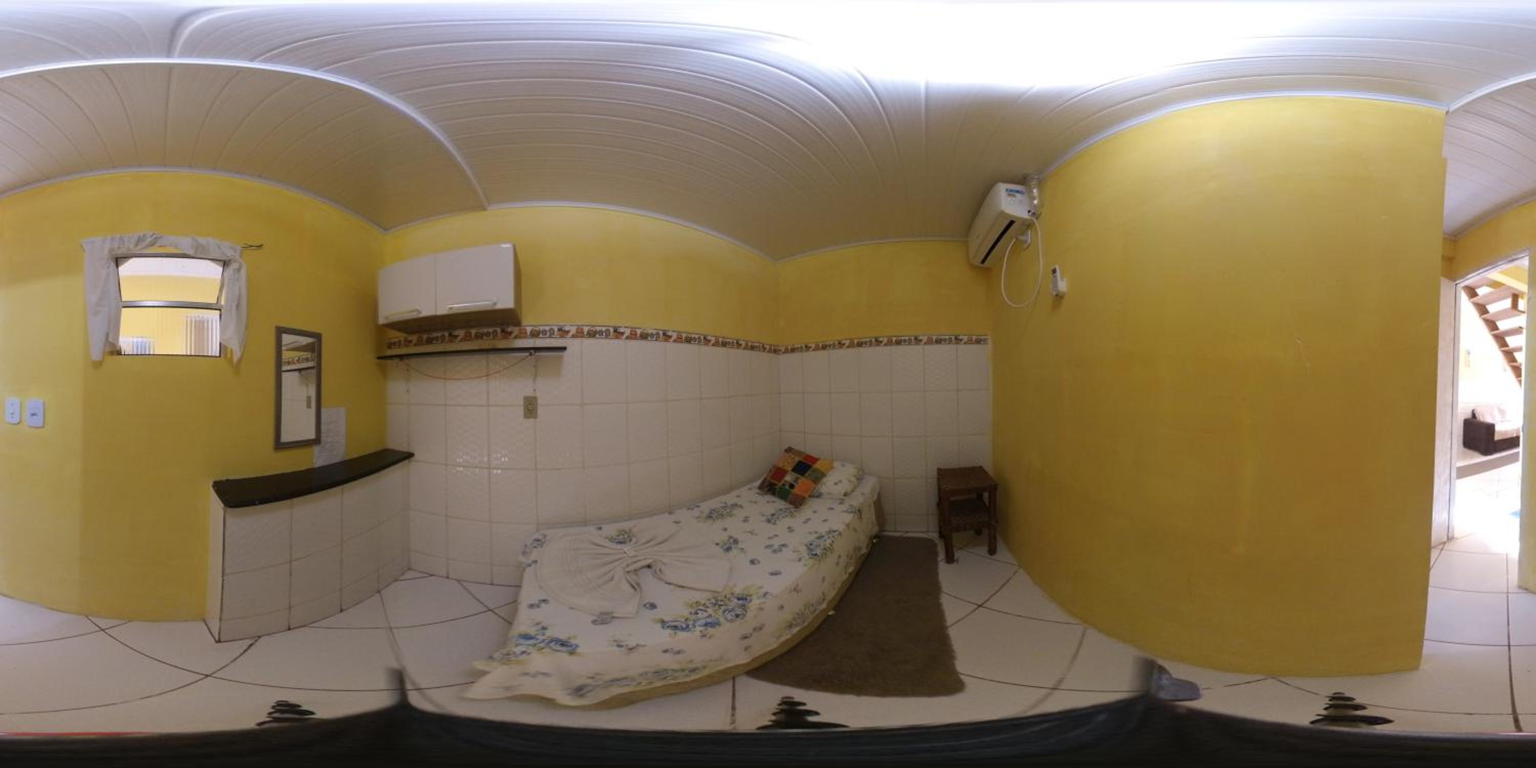 Embora constasse quarto sem janela, havia uma pequena janela para a área de circulação, que eu optei por mantê-la fechada. Havia ar condicionado, porém como eu não faço uso, o quarto ficava quente.