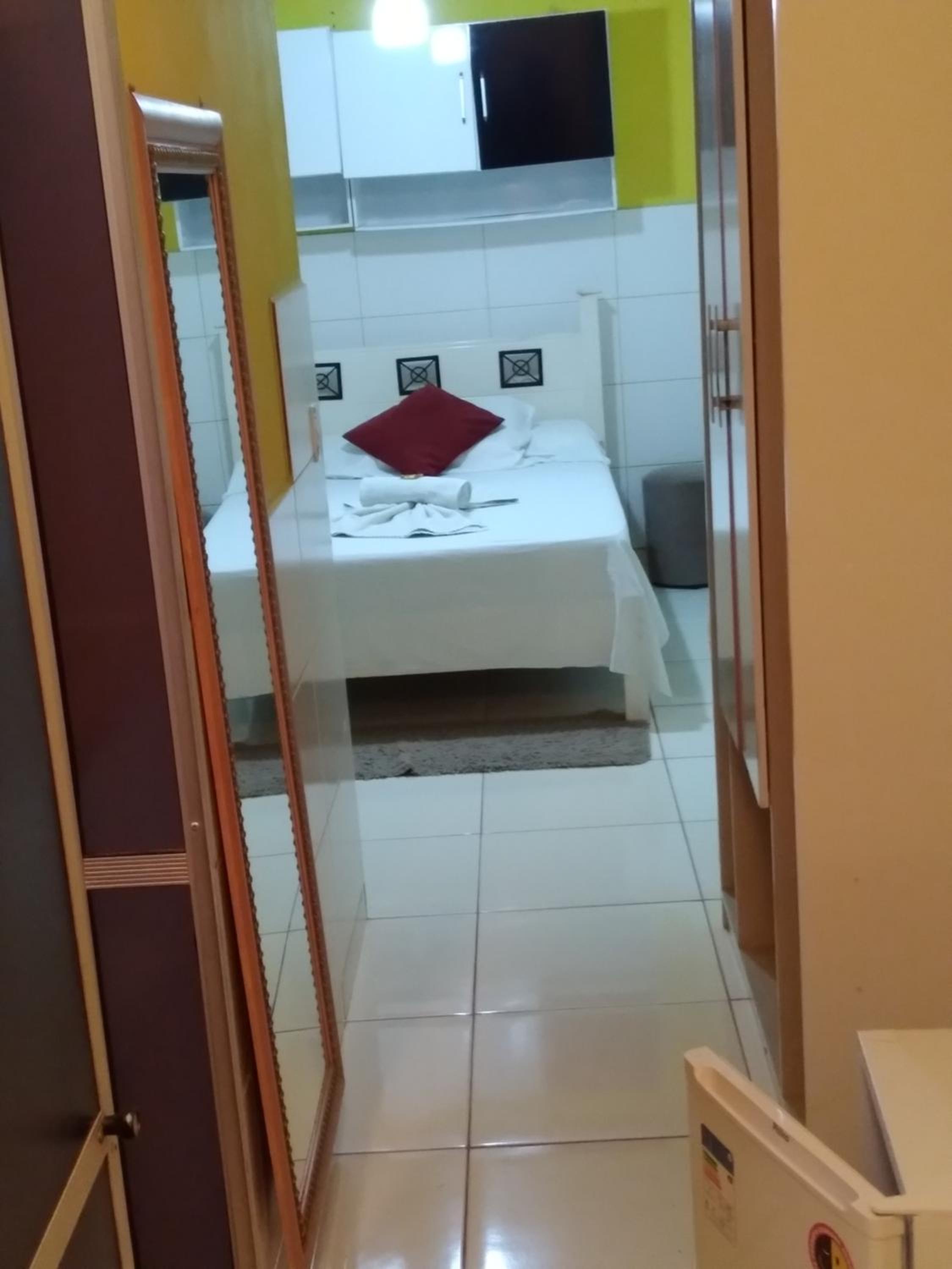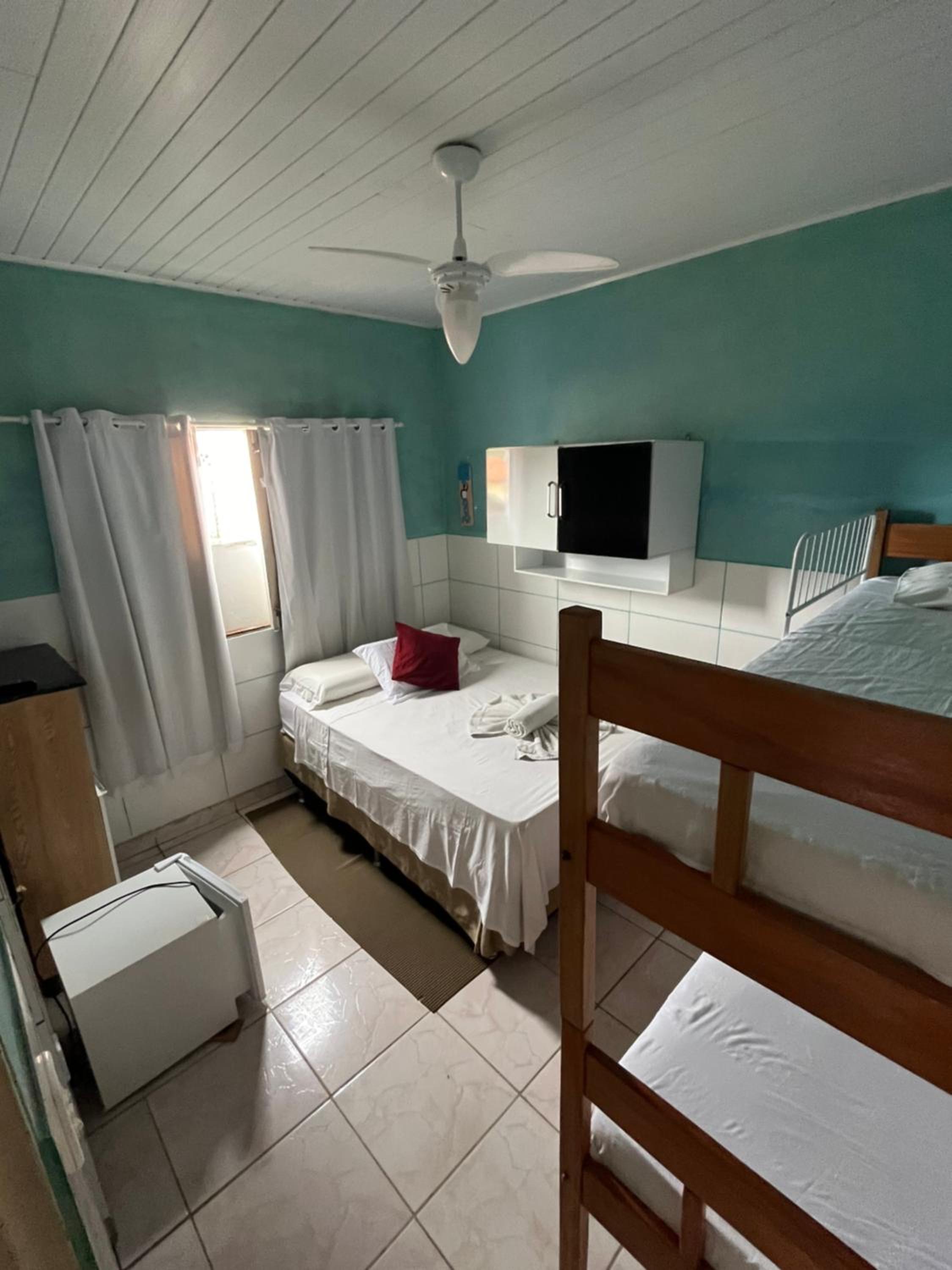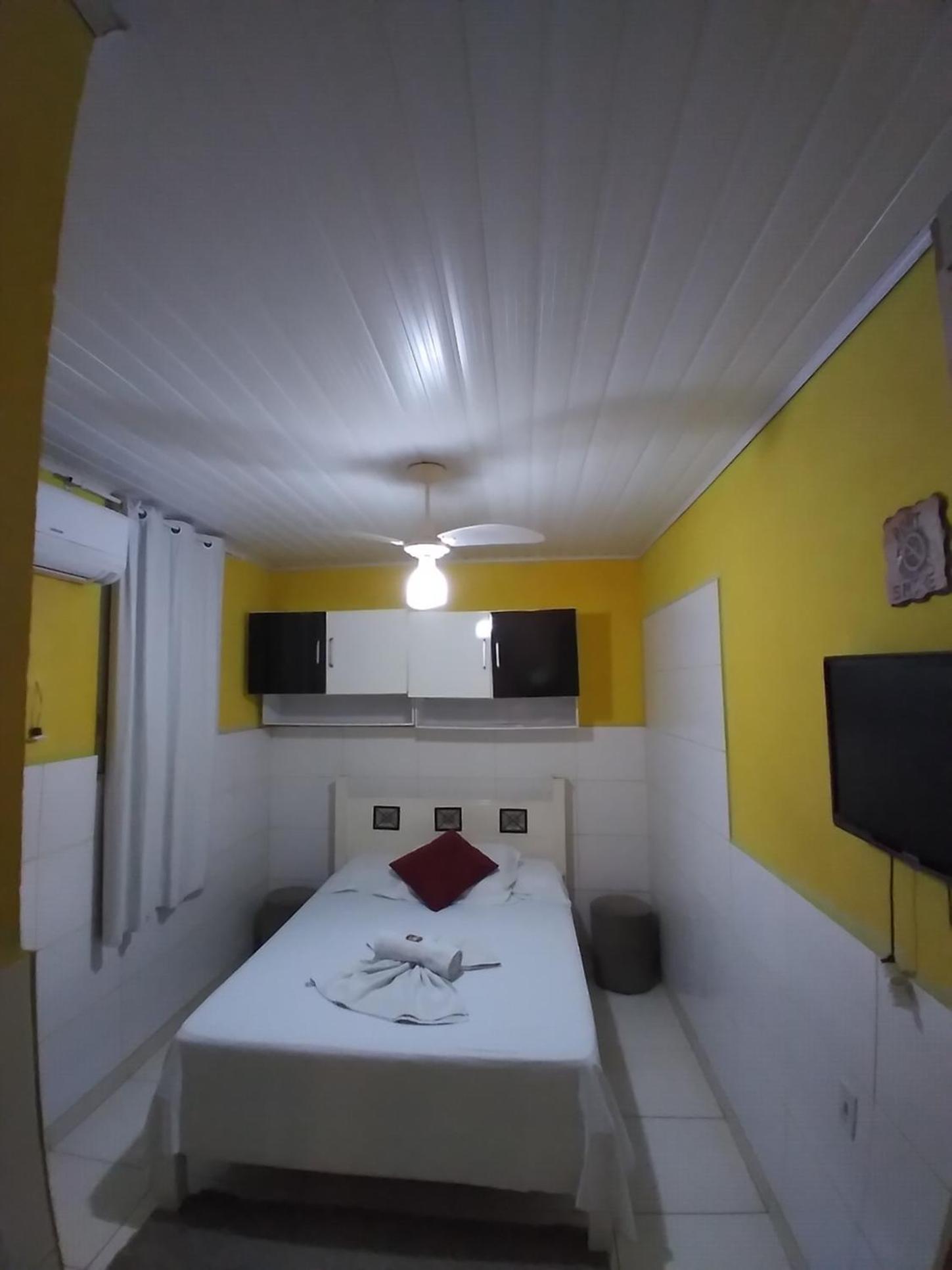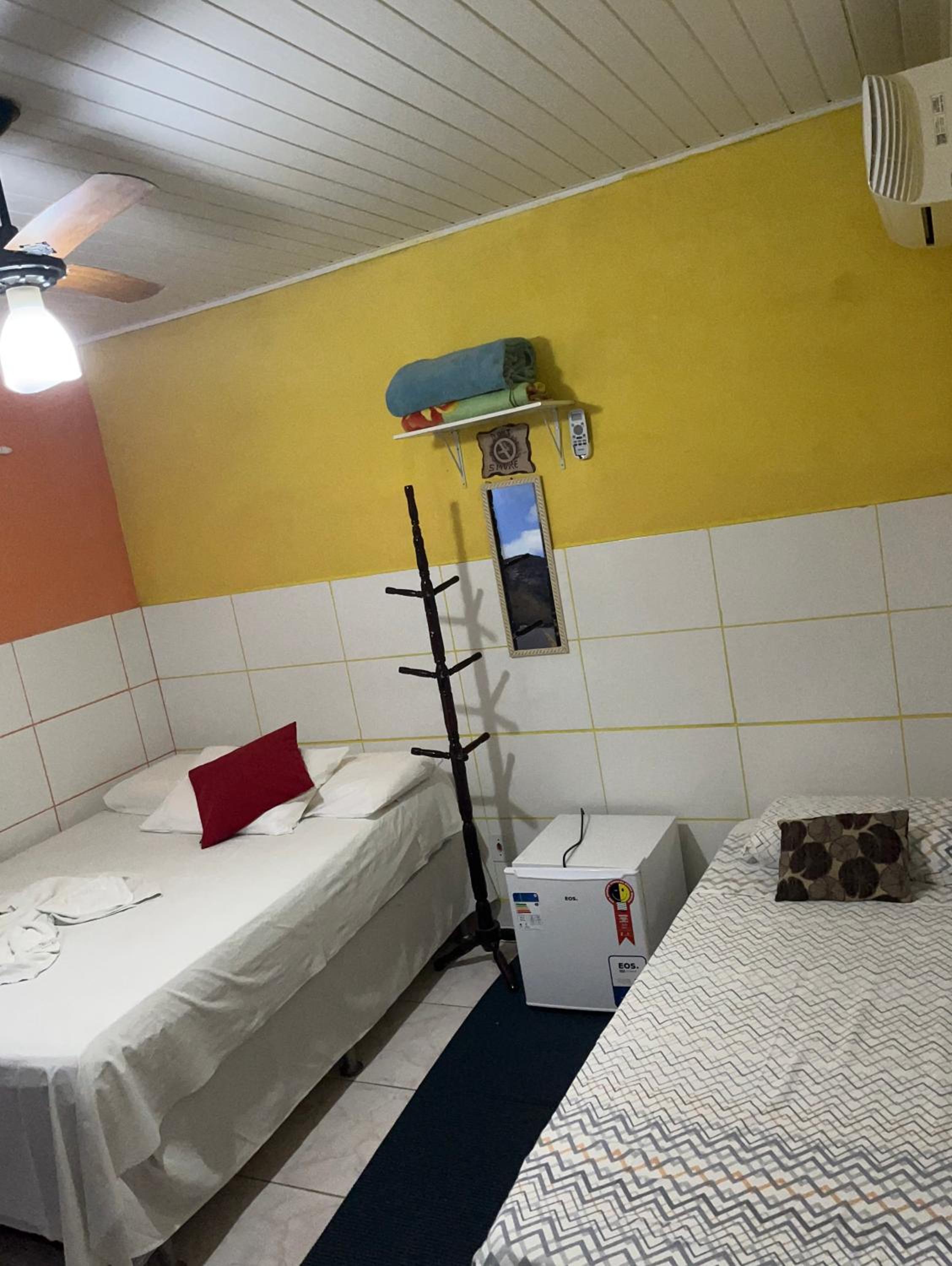 Embora constasse quarto sem janela, havia uma pequena janela para a área de circulação, que eu optei por mantê-la fechada. Havia ar condicionado, porém como eu não faço uso, o quarto ficava quente.