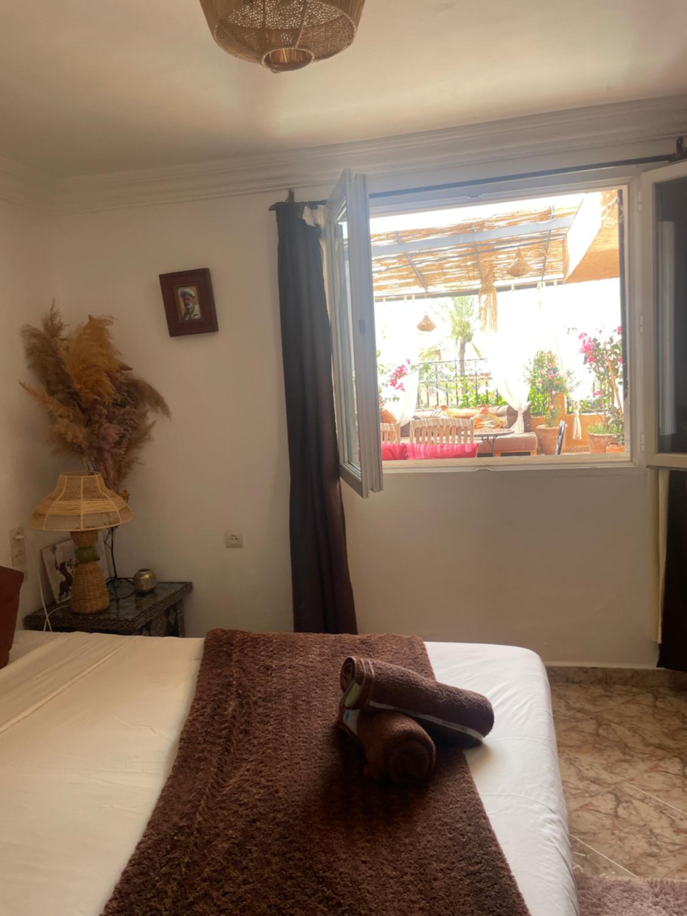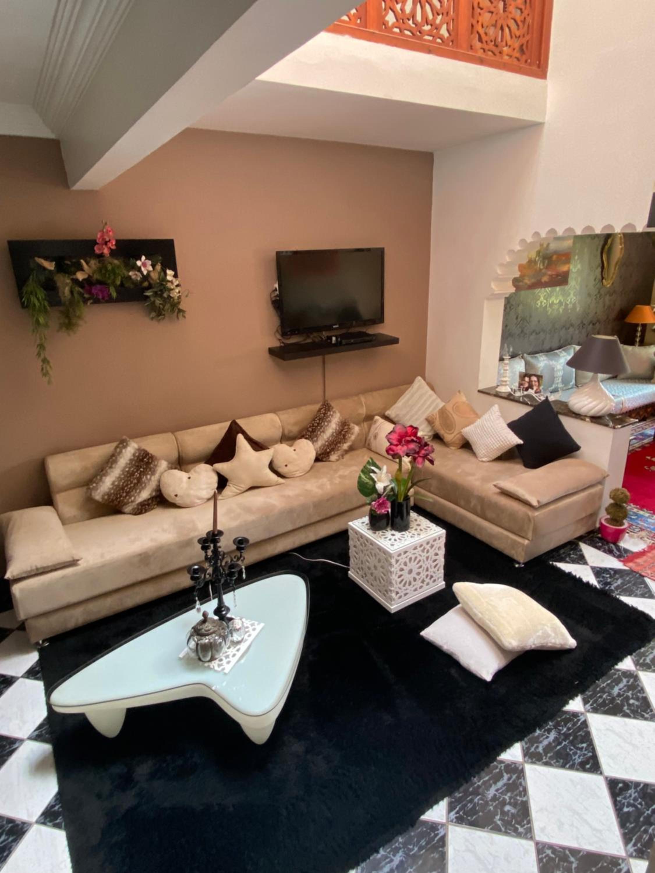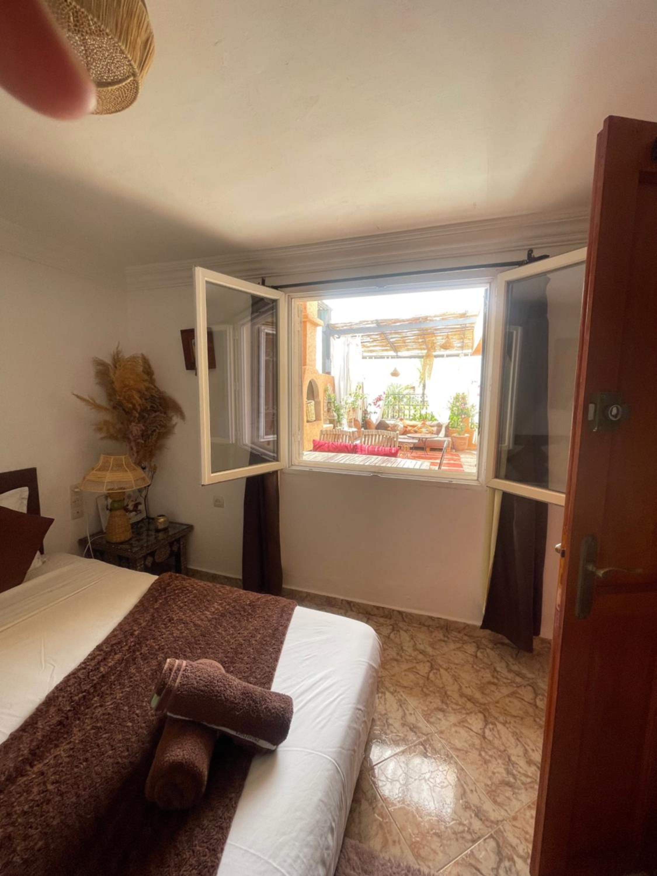 Habiba, la propriétaire de l'endroit vous accueille de façon admirable. Elle répondra à toutes vos questions et elle vous fait sentir chez vous. Prenez le petit déjeuner avec elle un matin. Vous vivrez un moment privilégier pour entrer dans la culture marocaine. Très jolie appartement dans un quartier sécuritaire avec services (dépanneur, resto, café) La vue de la terrasse est formidable. À 20 minutes à pieds de la place centrale.