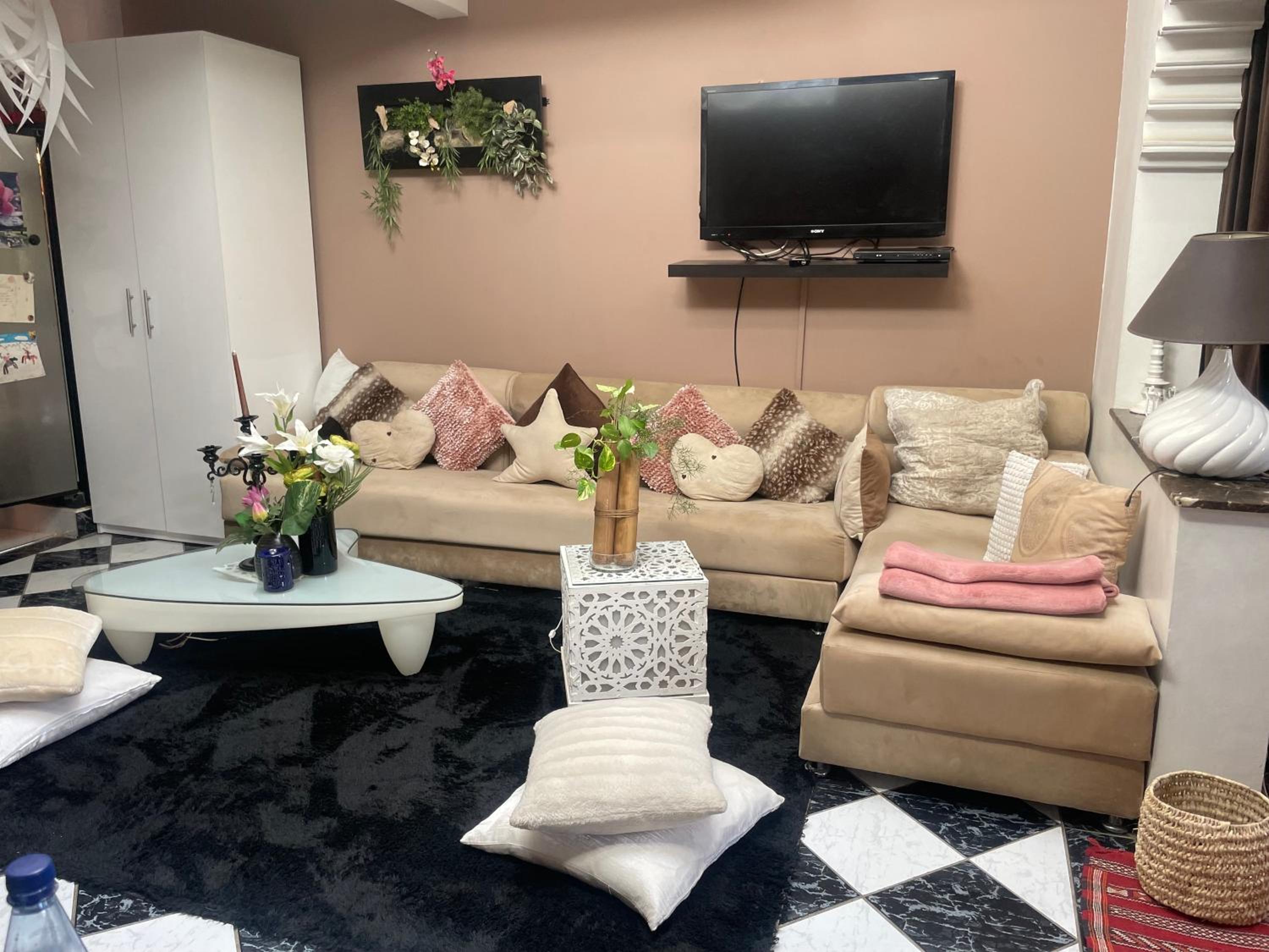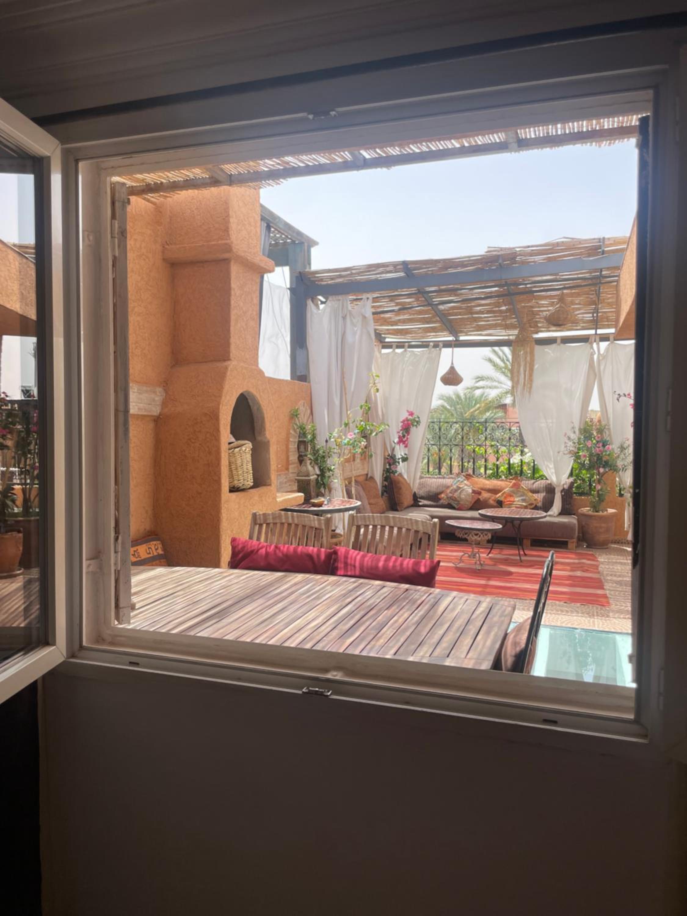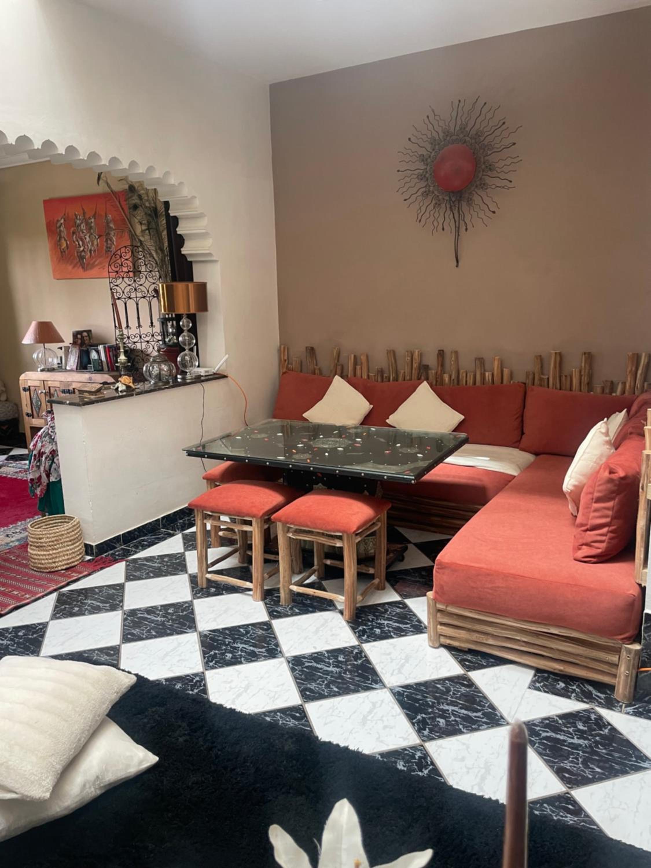 Habiba, la propriétaire de l'endroit vous accueille de façon admirable. Elle répondra à toutes vos questions et elle vous fait sentir chez vous. Prenez le petit déjeuner avec elle un matin. Vous vivrez un moment privilégier pour entrer dans la culture marocaine. Très jolie appartement dans un quartier sécuritaire avec services (dépanneur, resto, café) La vue de la terrasse est formidable. À 20 minutes à pieds de la place centrale.