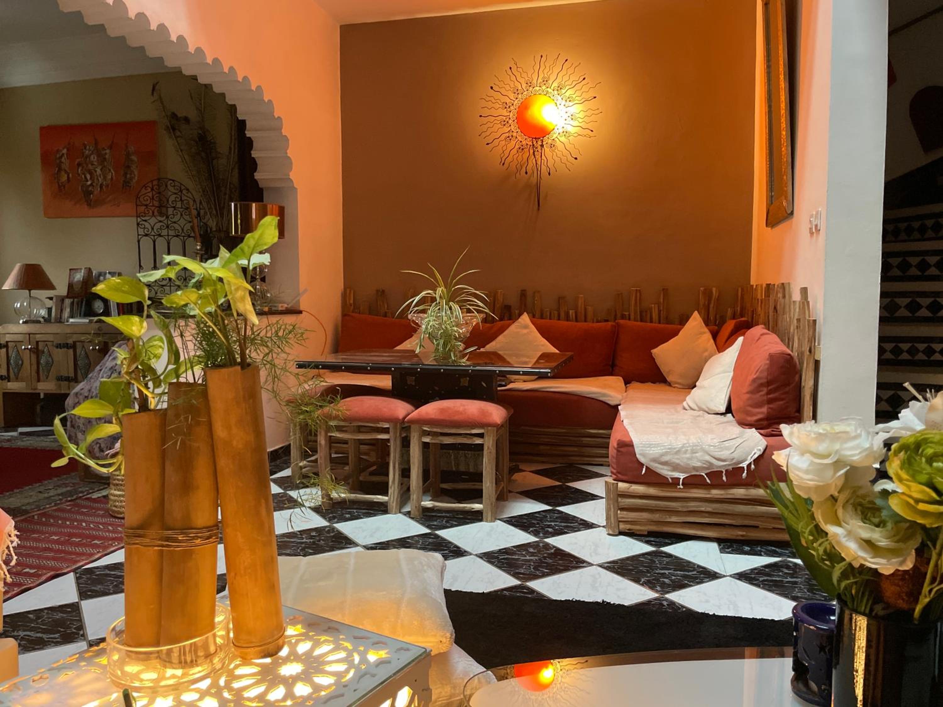 Heerlijke relaxte plek met heerlijk terras en super gezellige en gastvrije gastvrouw. Habiba heeft er een prachtige plek van gemaakt waar je heerlijk kunt bijkomen van de drukte van de stad. Je voelt je er direct thuis. Je kunt een verzorgd ontbijt bijboeken en je kunt ook nog naar het zwembad welke om de hoek ligt. Het riad ligt op een beschermd complex dus je kunt je (huur) auto ook veilig parkeren.