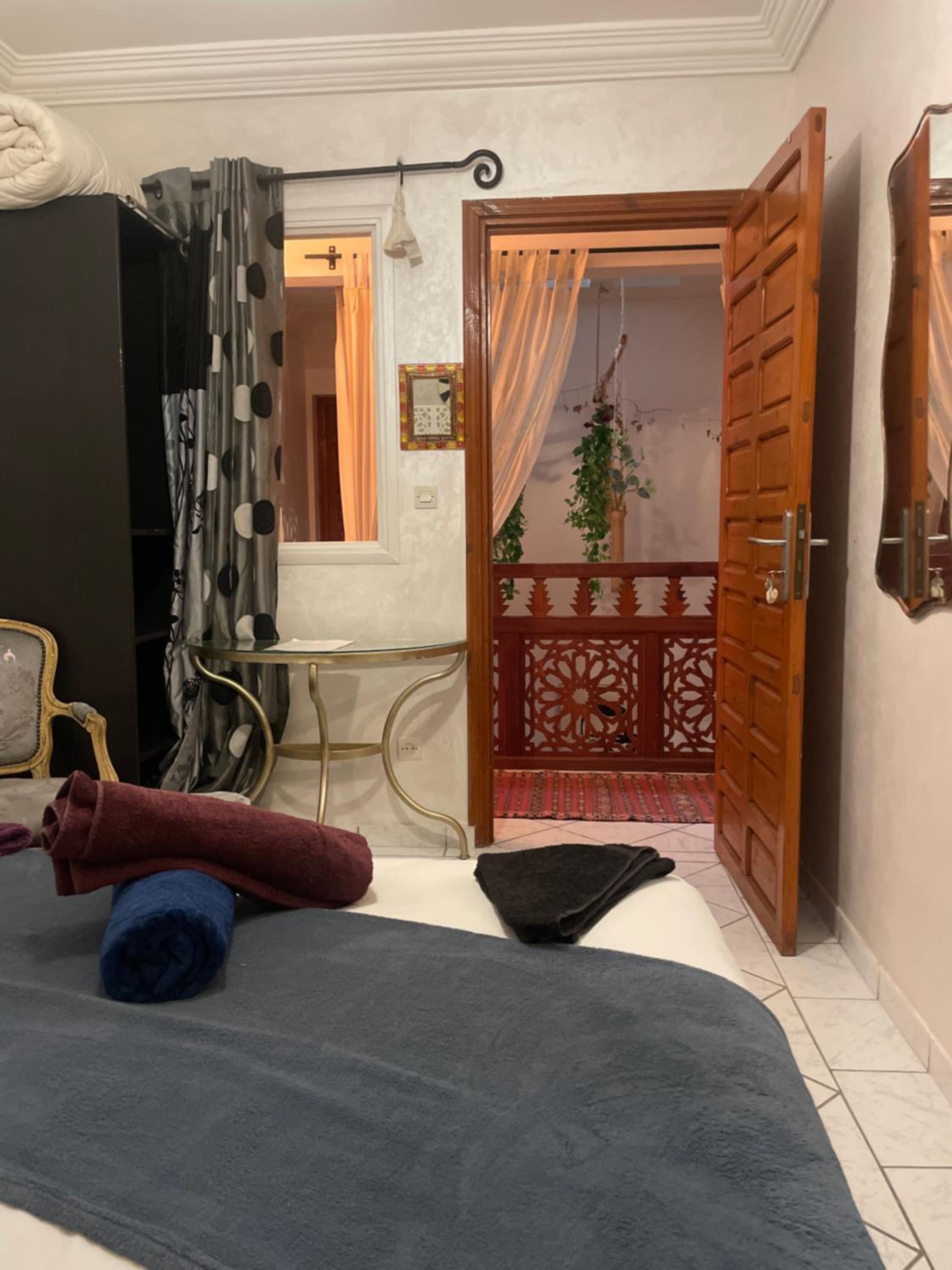Habiba nos acogió en su Riad con mucho gusto. La Residencia es segura, tiene varios comercios alrededor (restaurantes, supermercados, ATM…) Ir a pie hasta el centro de la Medina, es seguro de día. En la noche siempre privilegiamos taxi.