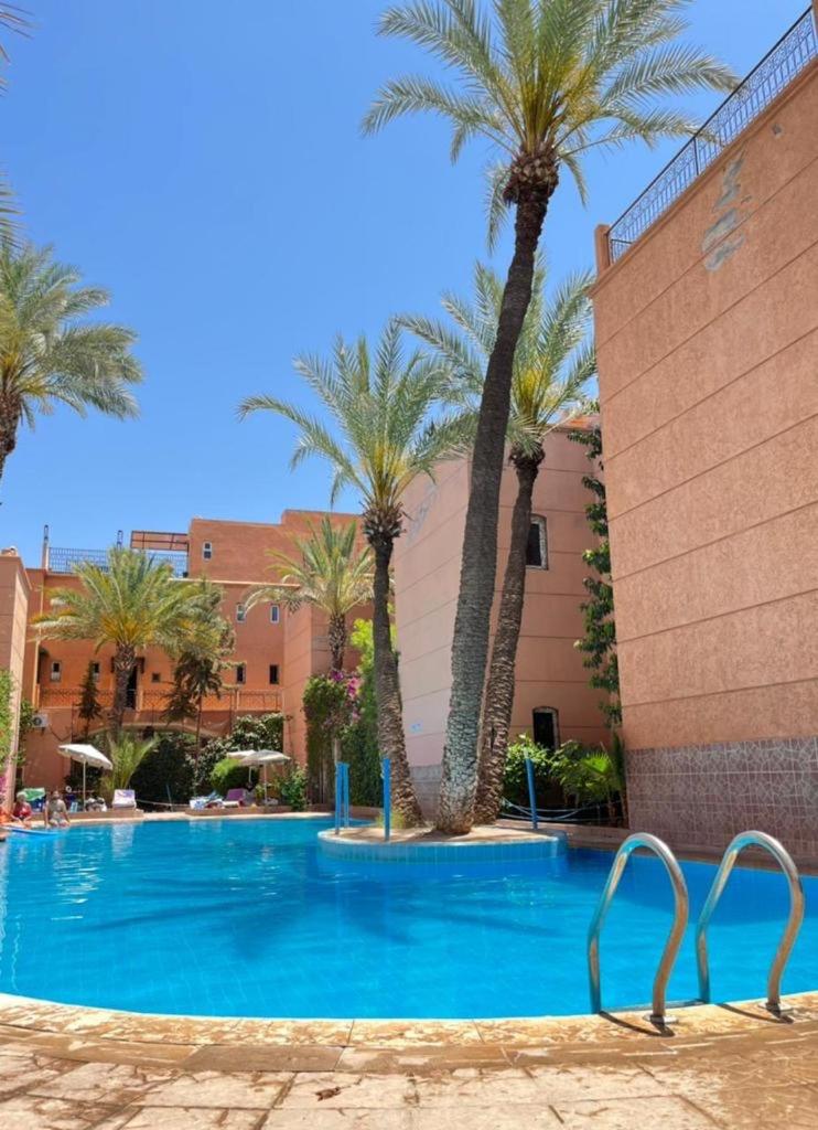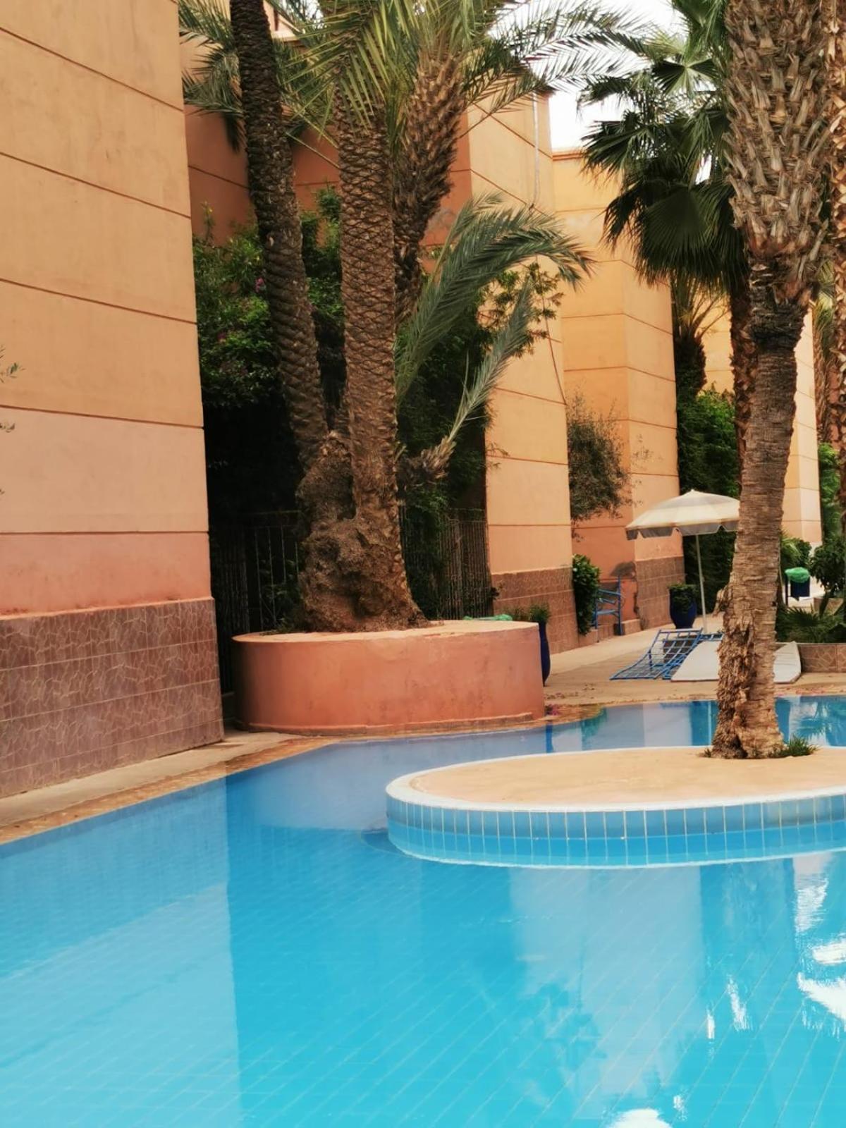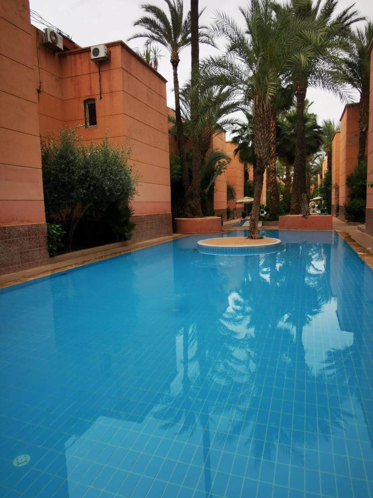 Exquisite Amenities: Riad Palmier fleuri offers a serene escape with an outdoor swimming pool, shared kitchen, and private terrace for each unit.