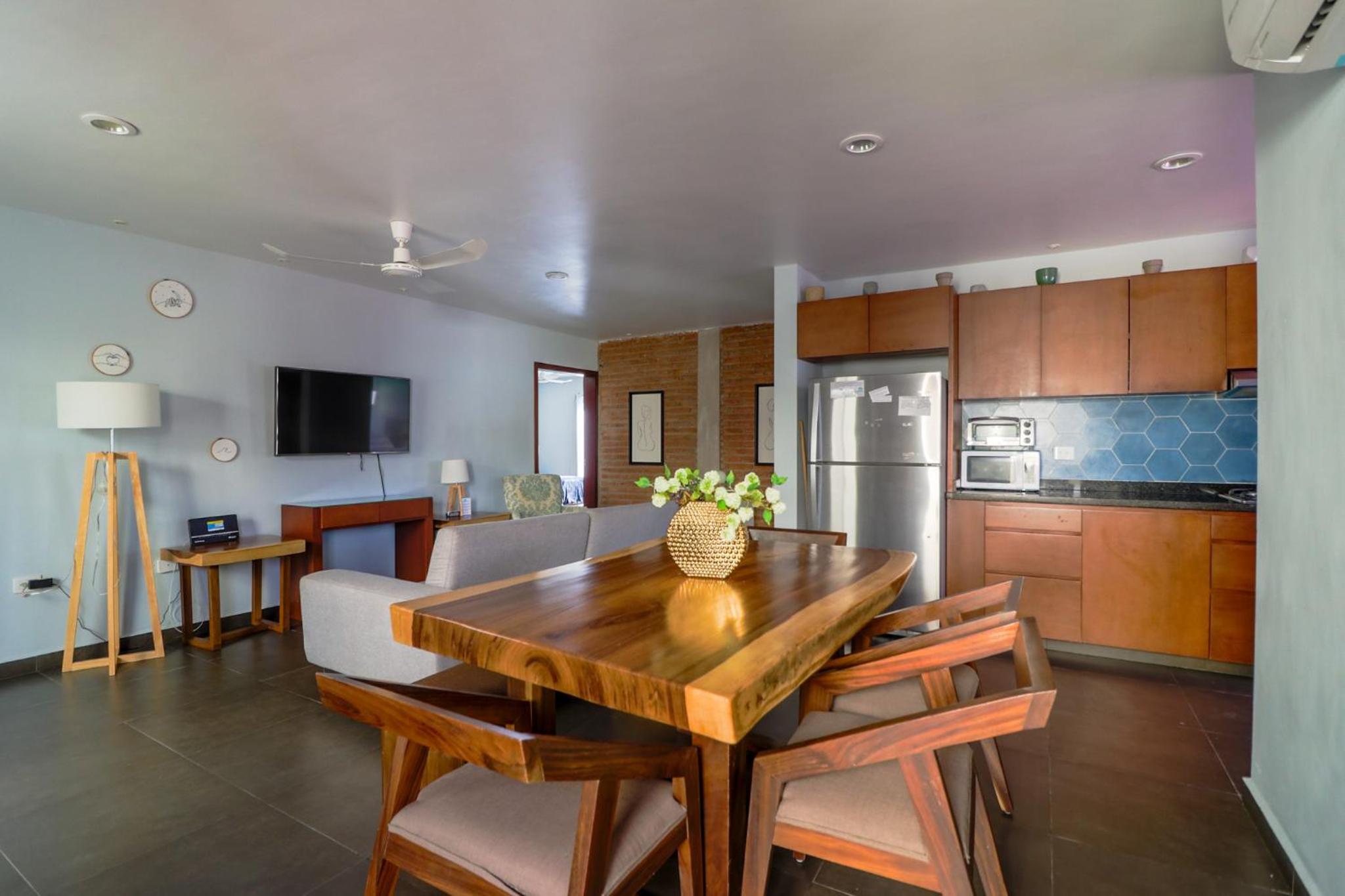 I thought I booked an apartment which includes a dining area with a kitchen and full sized refrigerator all we had was like a hotel room