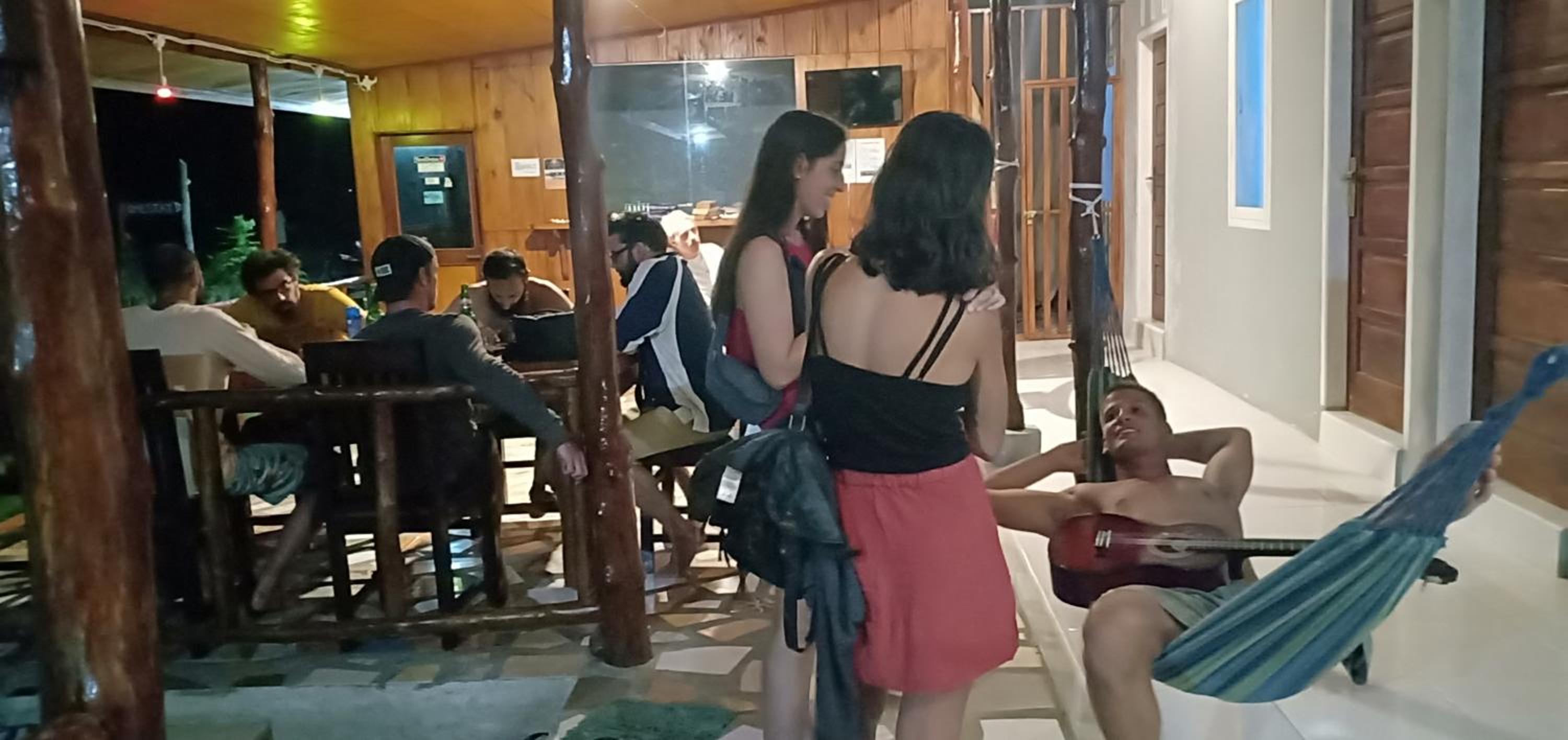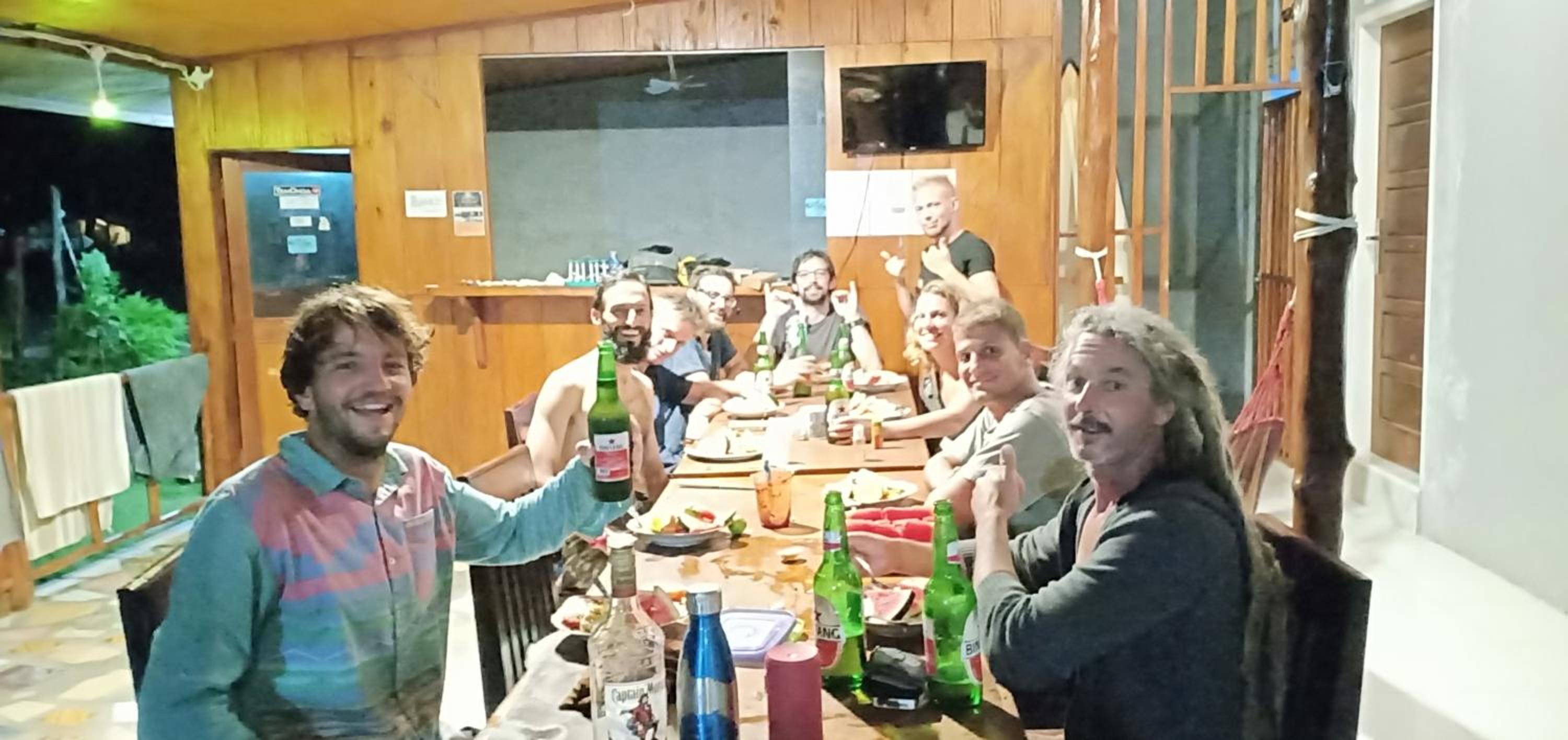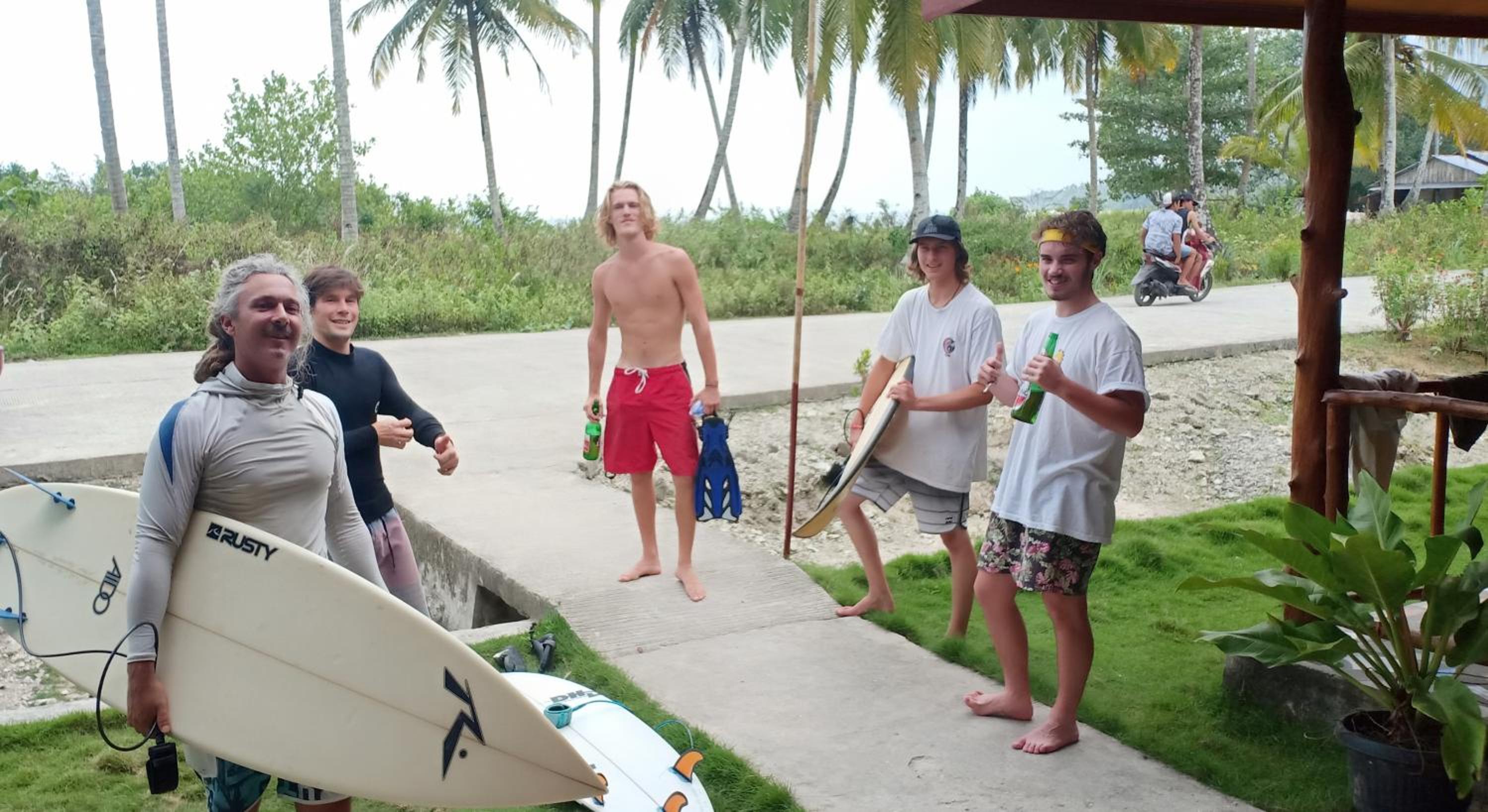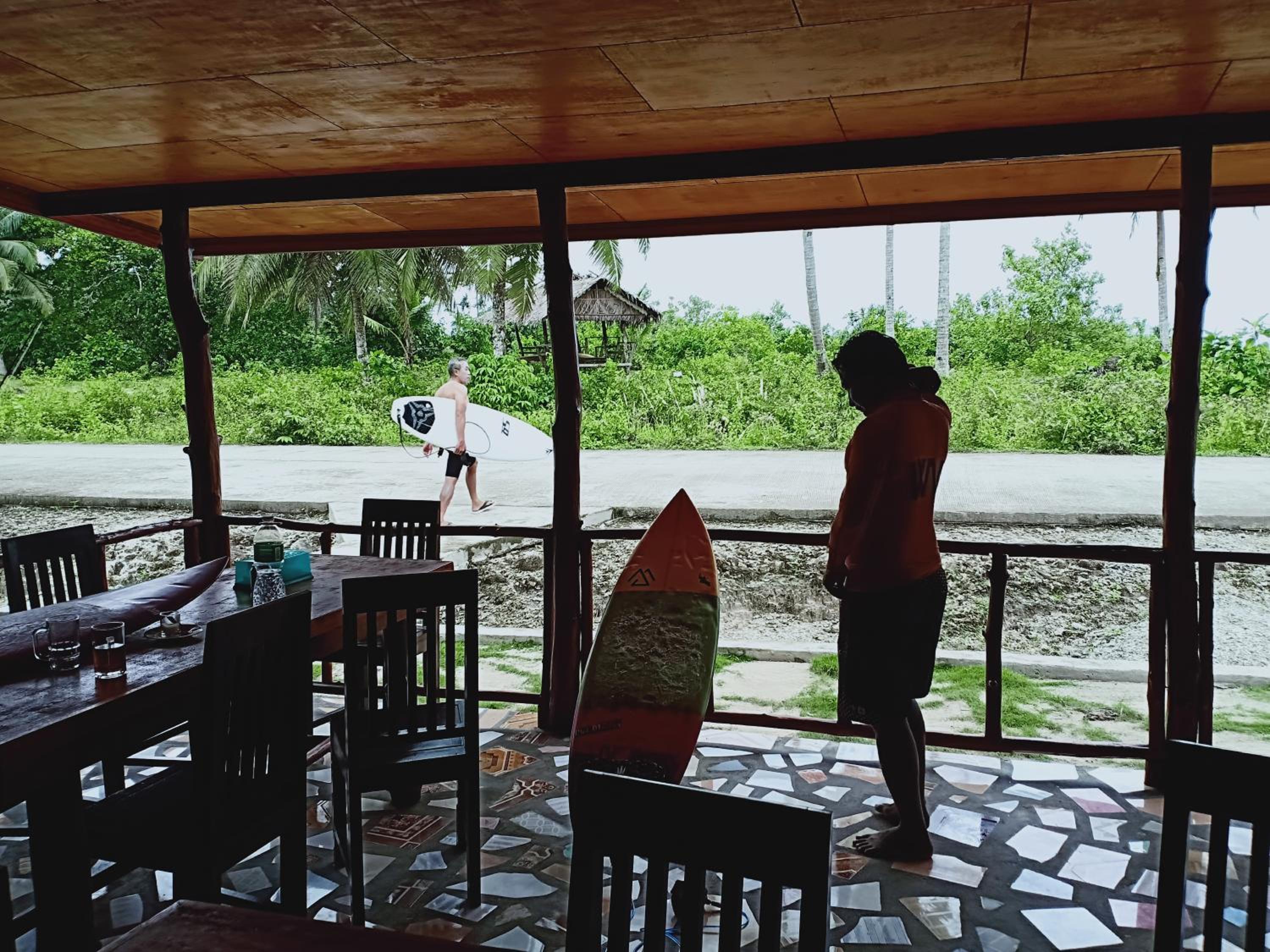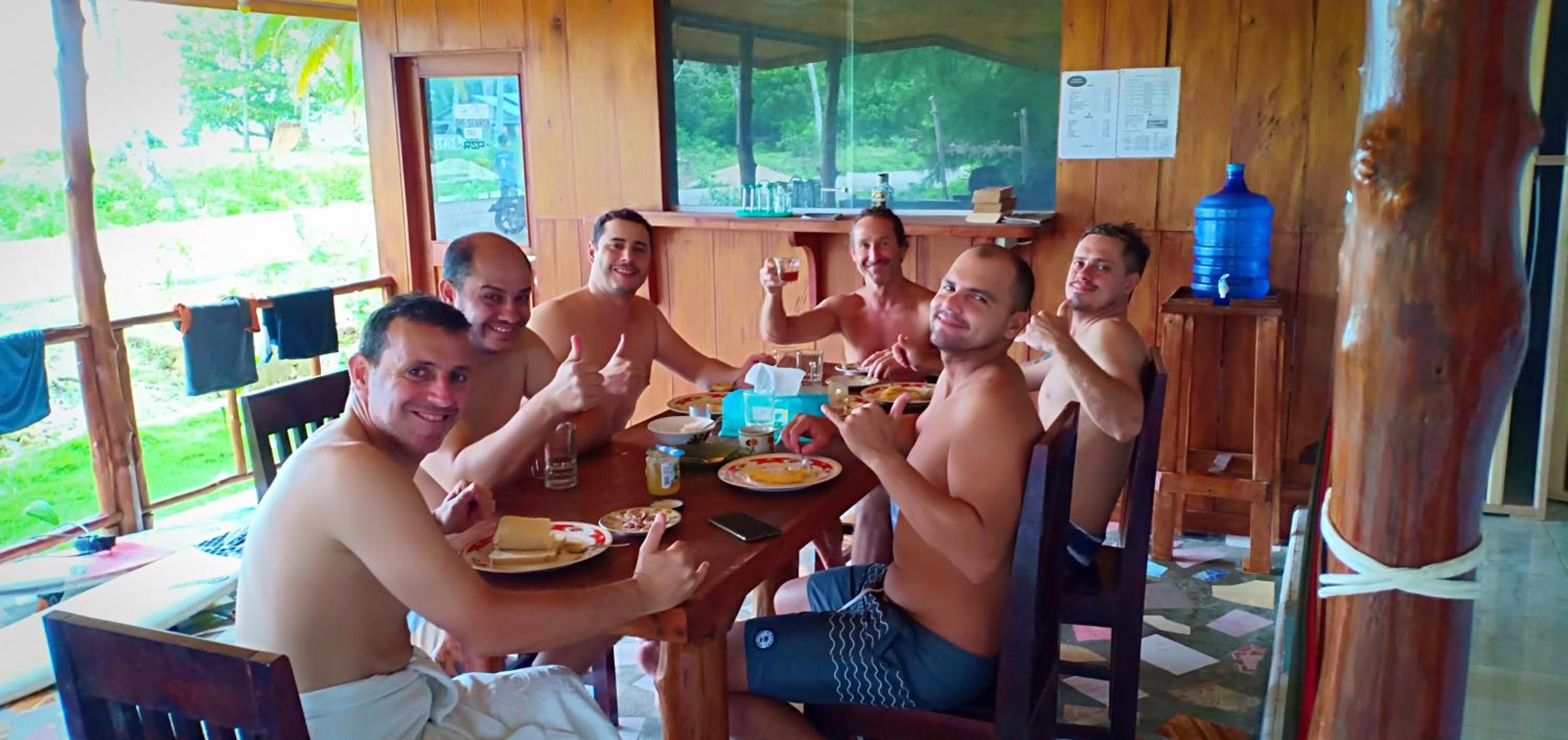 We arrived with the slow ferry very ealy morning, and nobody was waiting for us. Just before 7am the amazing and smiley Gigi (I dont know how to spell her name) arrived and talk to us. Our room wasn't ready but they organized everything quickly. The girls were very good cook. Meals were delicious, good portion and great price. They rooms were very clean and big. We weren't expecting that. There are other places to eat nearby and little shops. You can rent motorbikes and surfboards. We did surf trips and snorkeling trips. Fantastic! The other guests were super nice and we all had a good time together.
