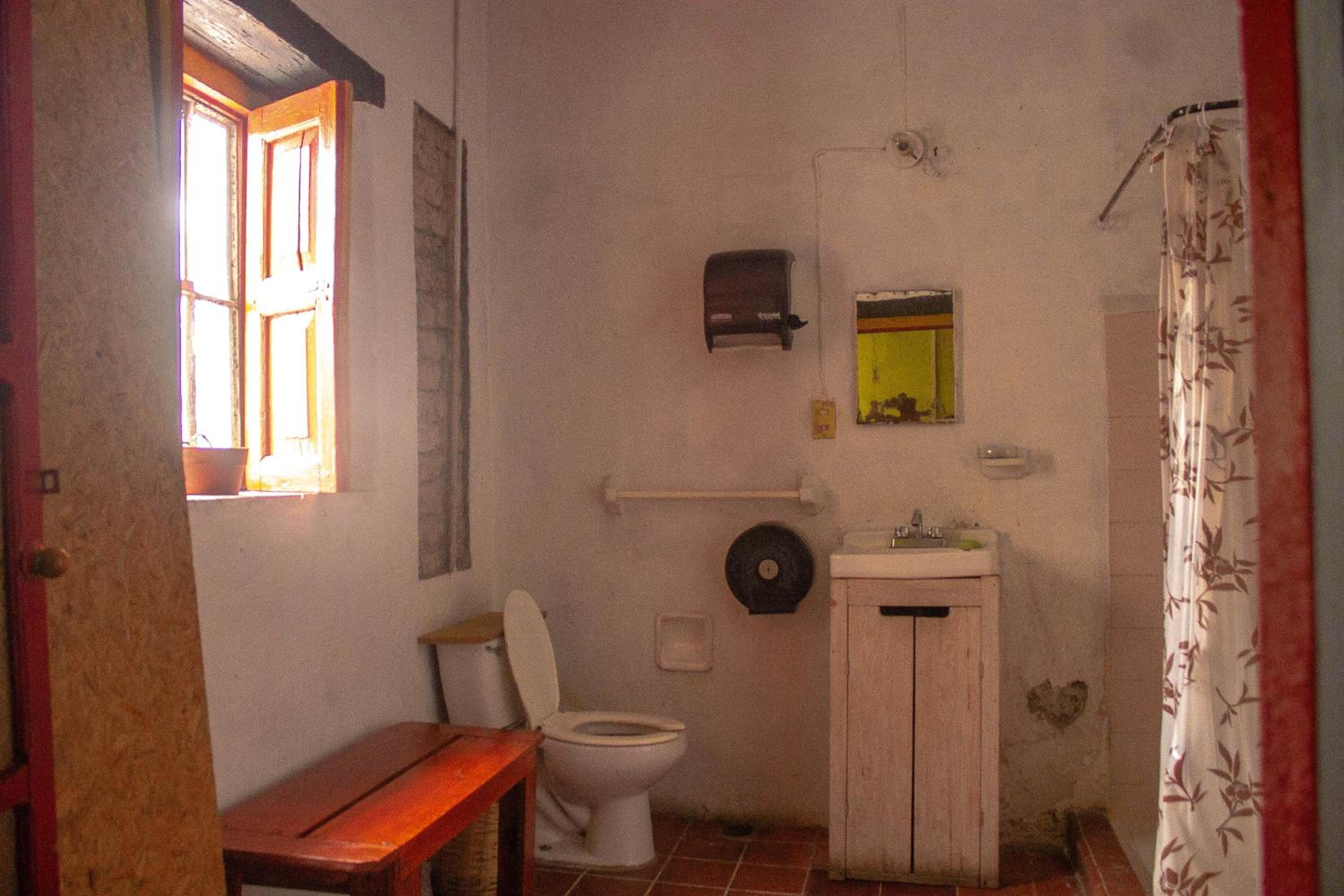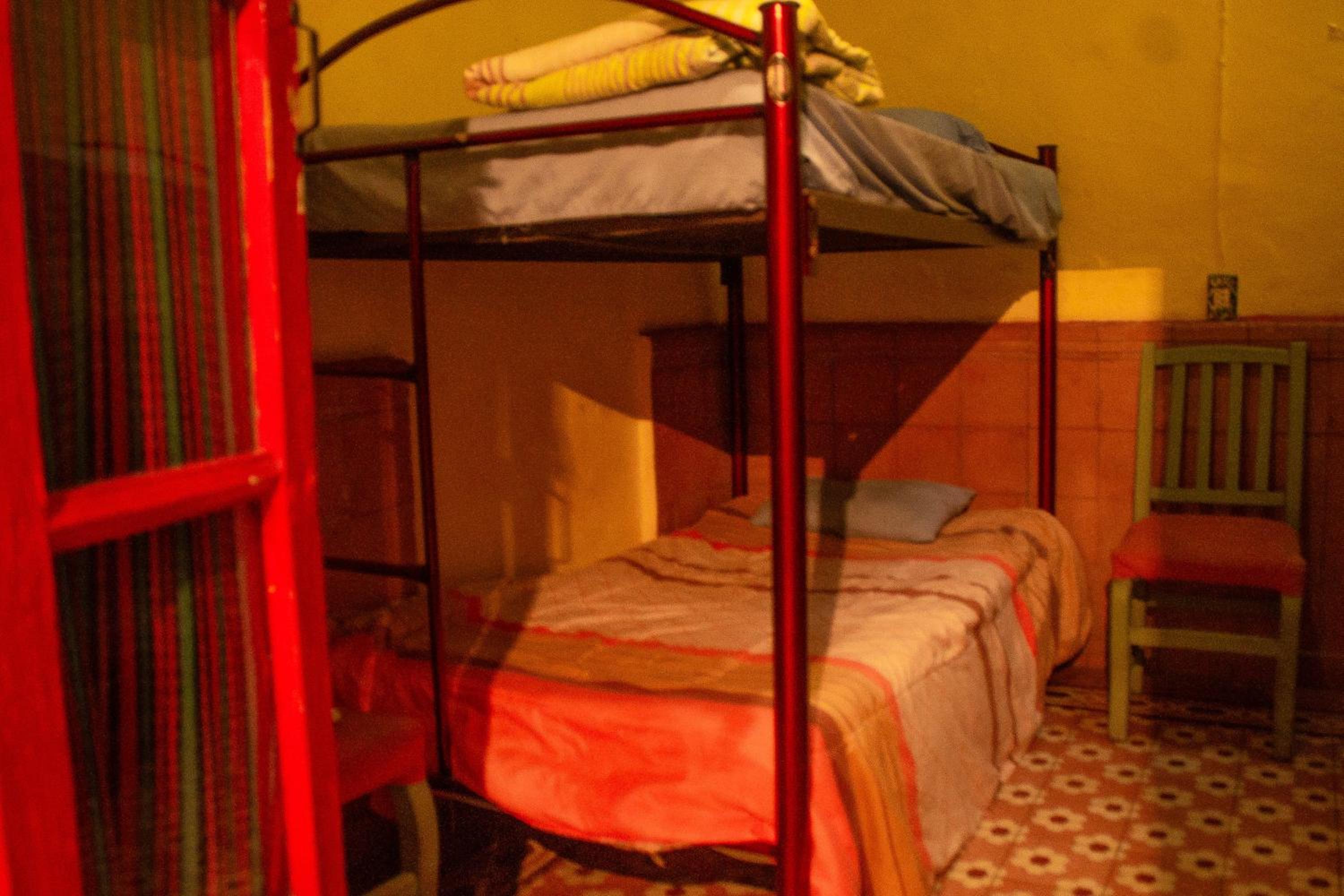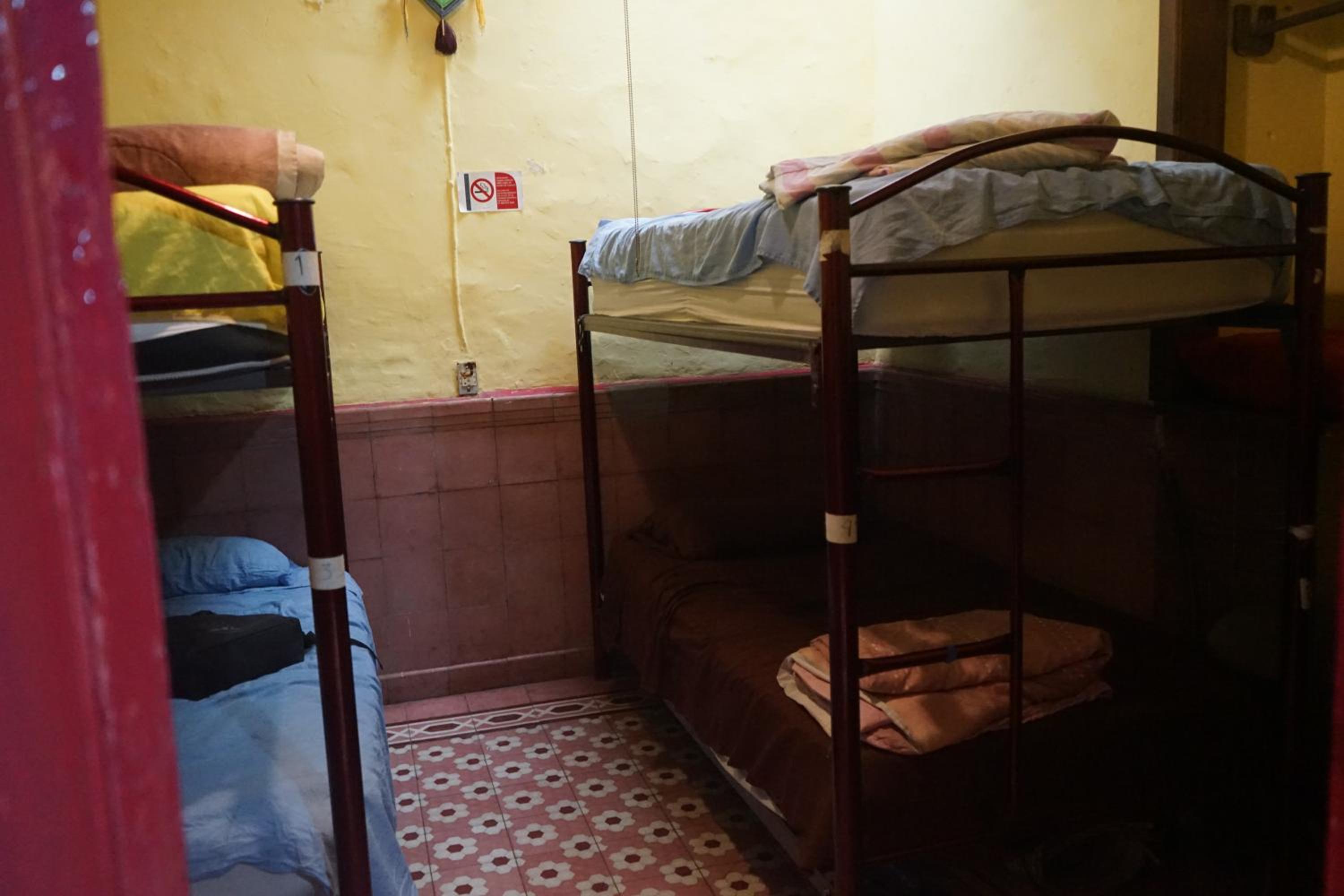 La habitación en un principio parecía cómoda, salvo una mochila bajo la cama que no se sabia de donde había salido. A los pocos minutos de llegar nos sorprendió tremendo escorpión subiendo por las paredes hasta el techo, obviamente no íbamos a pasar nuestra estancia allí. Se nos alojó en otro habitación de literas en la cual había objetos de otros visitantes, cosas debajo de la cama, ropa de cama con manchas,paredes manchadas...otro desastre.