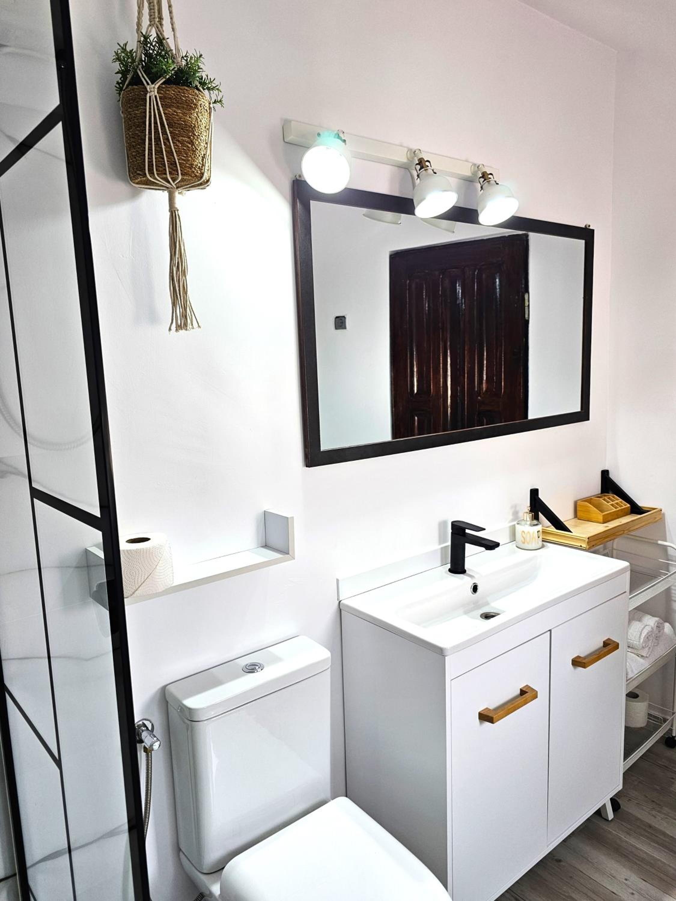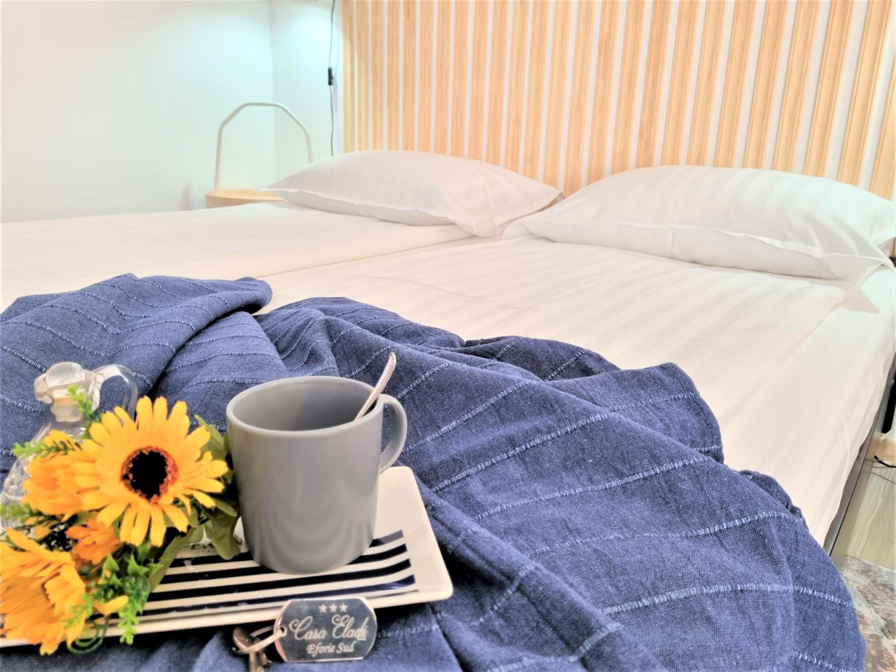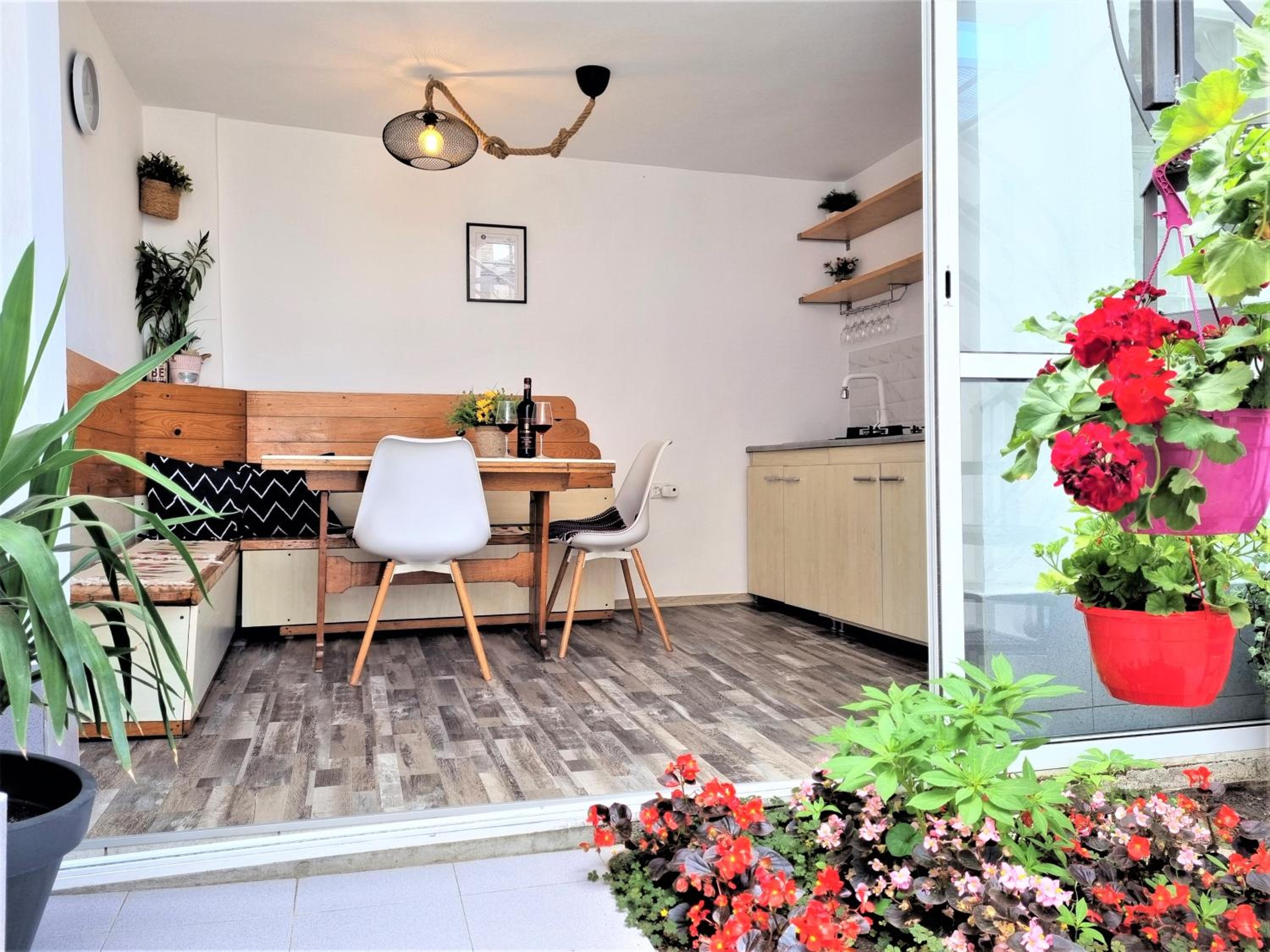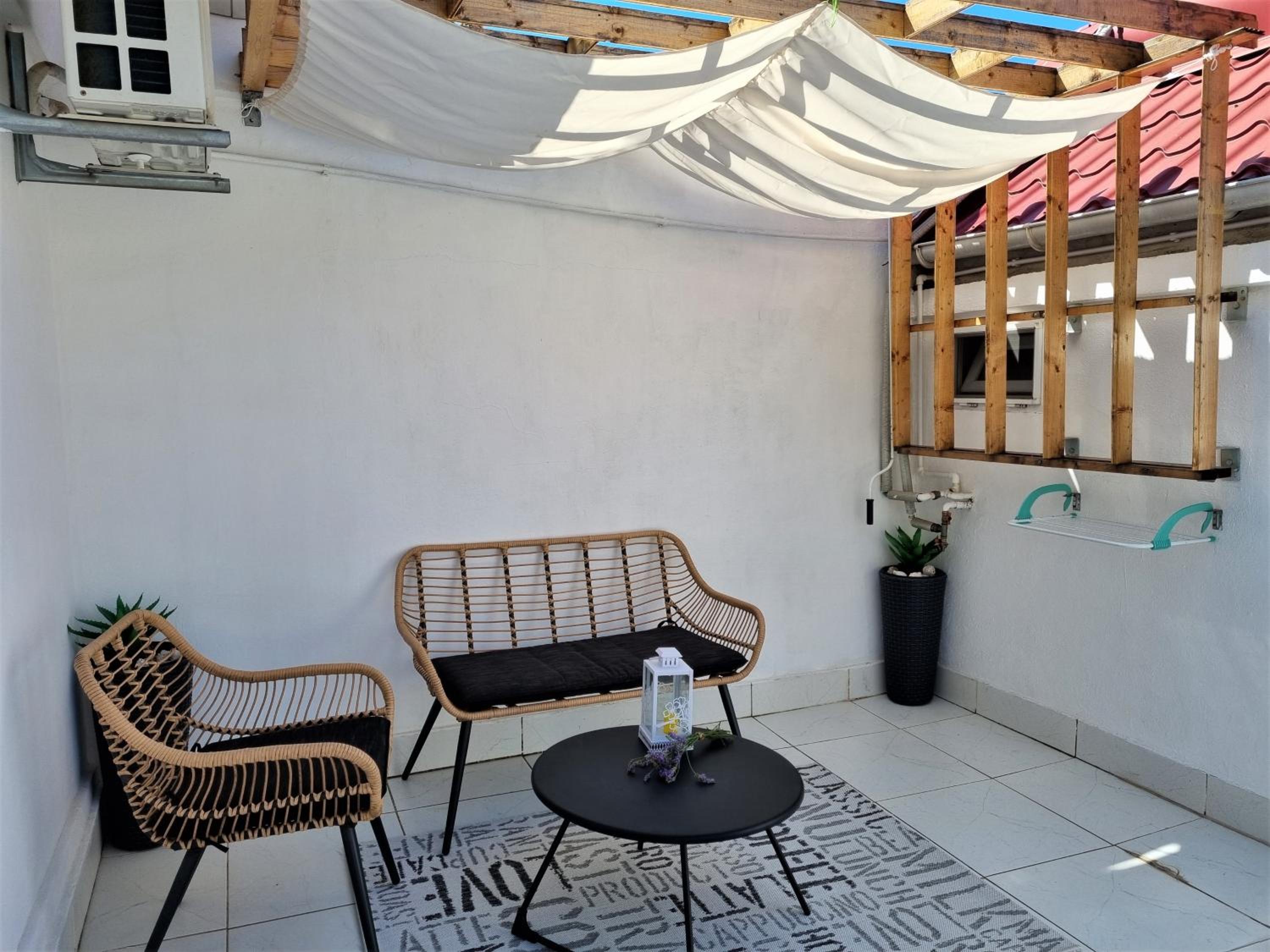 Experience comfort and convenience at Casa Eladi, just 800 meters from the beach. Enjoy the air-conditioned room with a balcony, sofa, flat-screen TV, and modern amenities like free WiFi. The property also features a refrigerator and a stylish bathroom with shower and hairdryer.