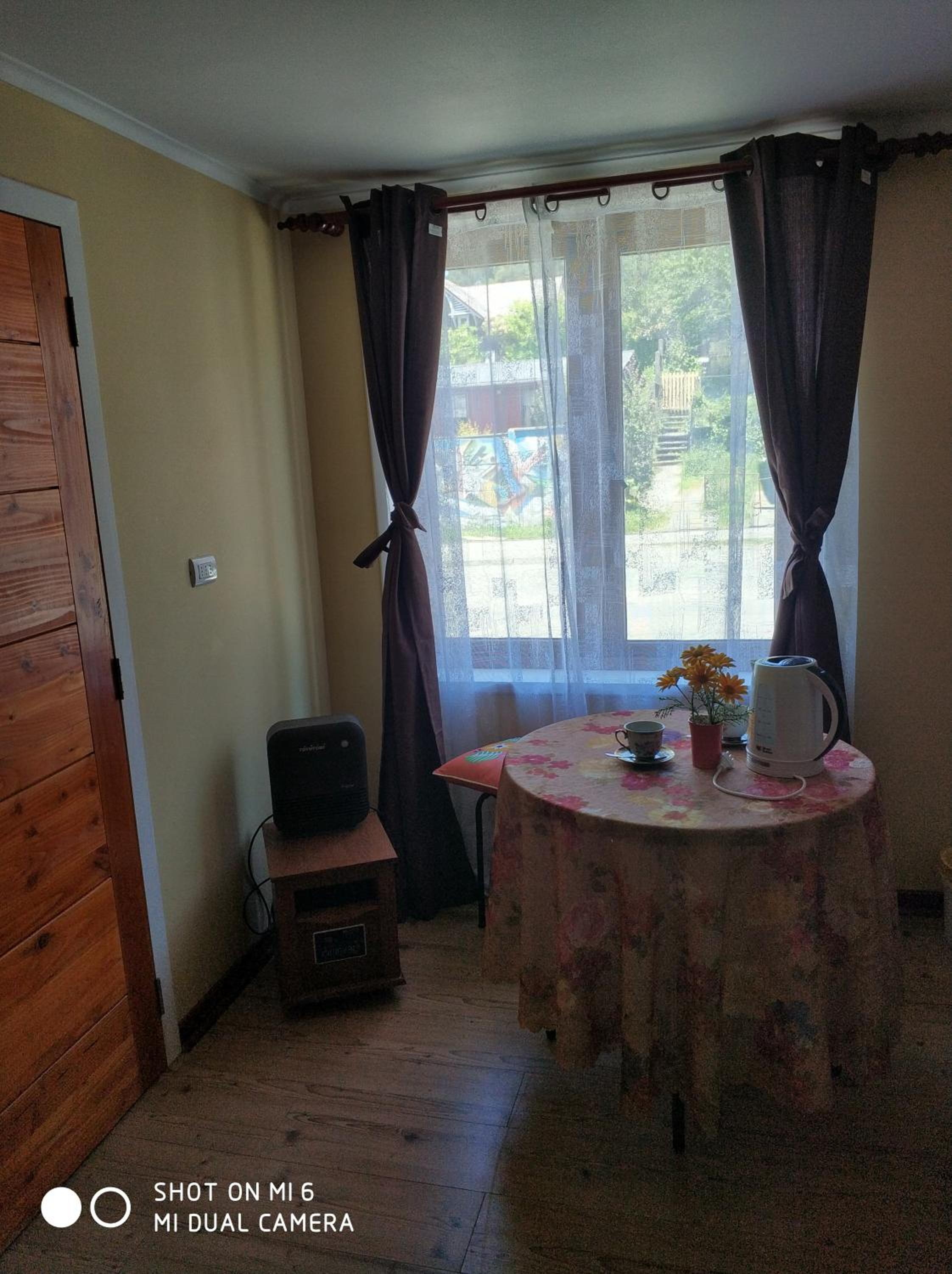 La mesita para tomar desayuno y once, tambien la ubicación.