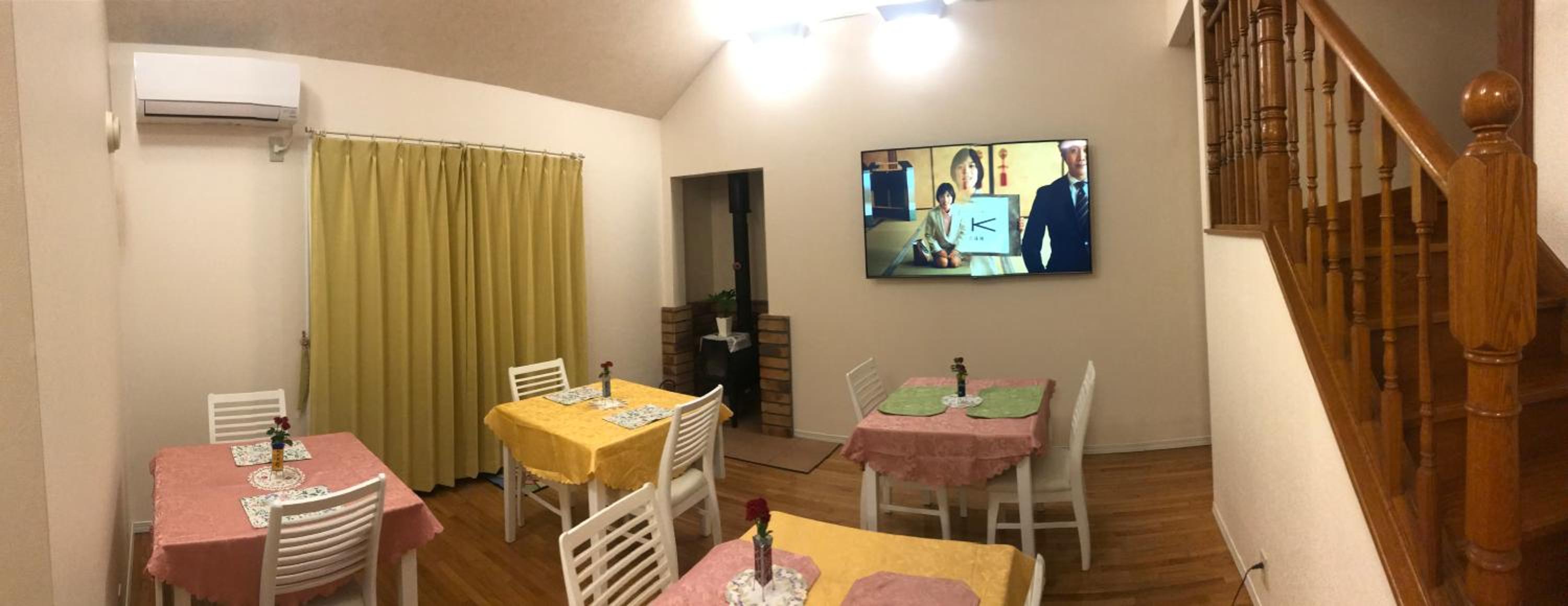 老闆非常的熱情,巨細靡遺的說明房間的設施,並且幫我們預約附近居酒屋的晚餐,知道我們會喝酒,還開車接送我們去吃晚餐。晚上在客廳的暖爐燒材取暖,有一種很溫暖的感覺。老闆養的黃金獵犬很可愛,會出來陪客人玩一下。房間的佈置很溫馨,浴室可以泡澡,很舒服。