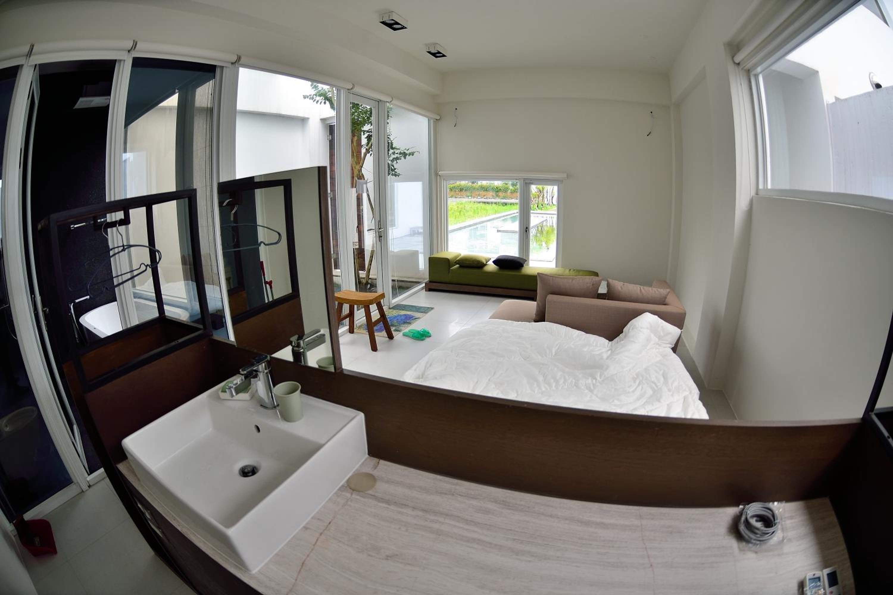 以這個價格相比空間是小了點,但是浴缸非常大且還有造景,就又補足了這缺點