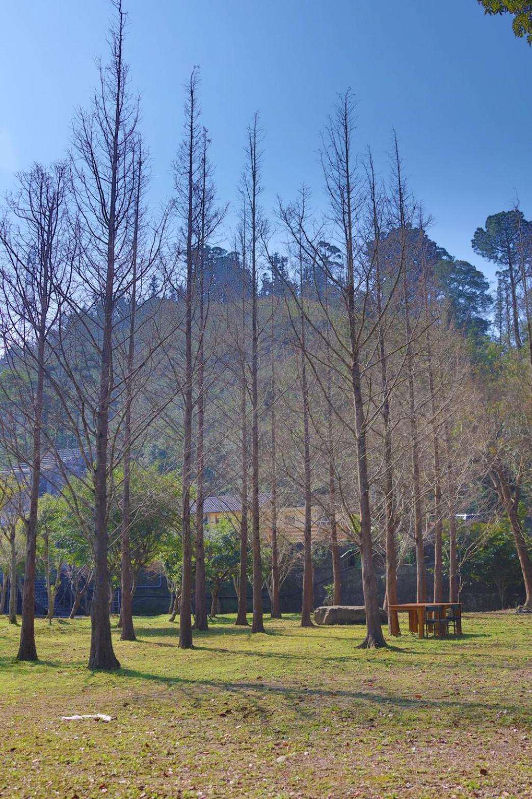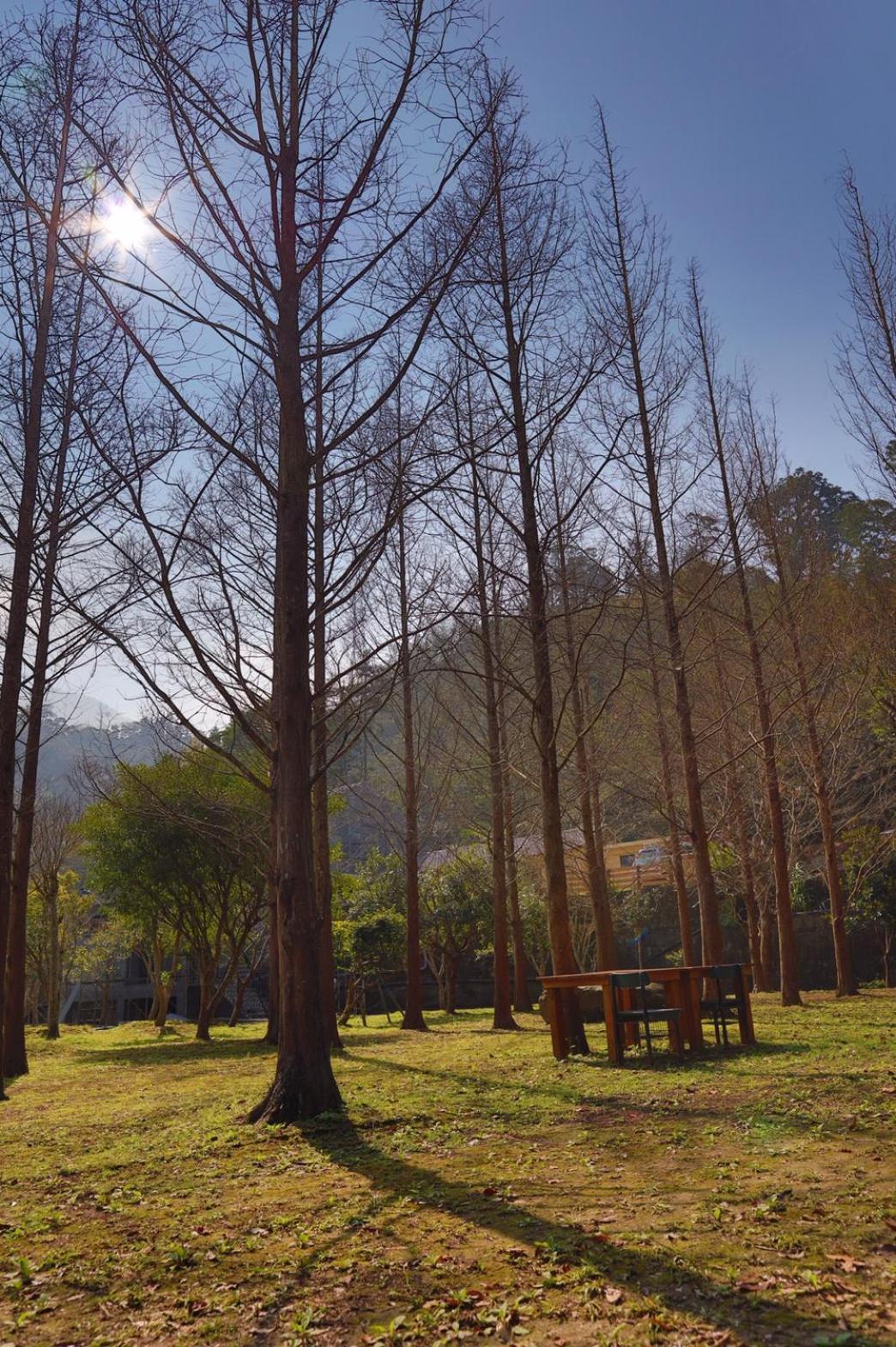 房間內整潔,走出房門就有杉木、楓樹,還有許多花花草草,芬多精滿滿!