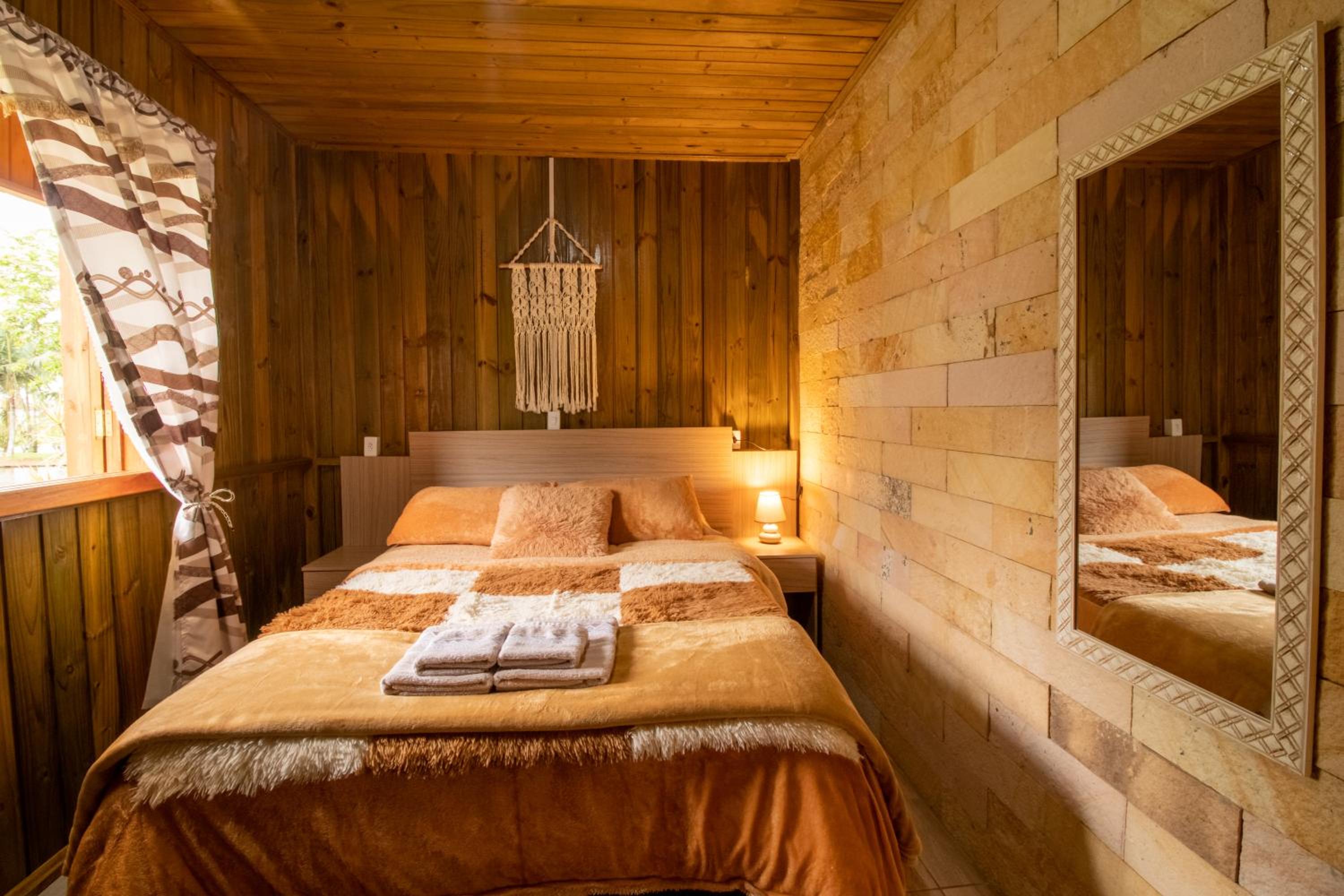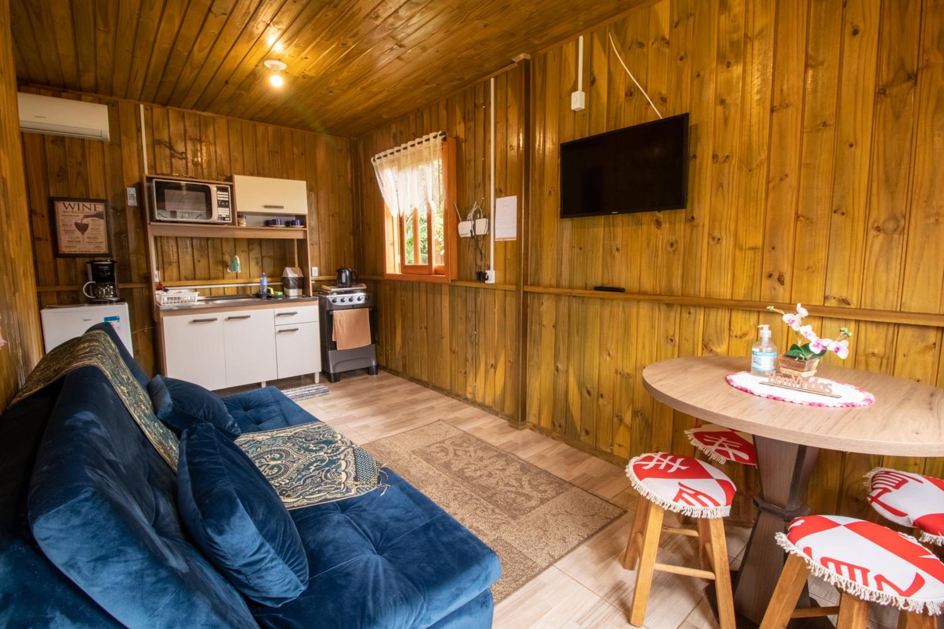 Fácil acesso,a anfitriã muito atenciosa,o lugar e lindo,a cabana tem cozinha,sala banheiro e quarto tudo foi excelente, a cama e muito confortável.