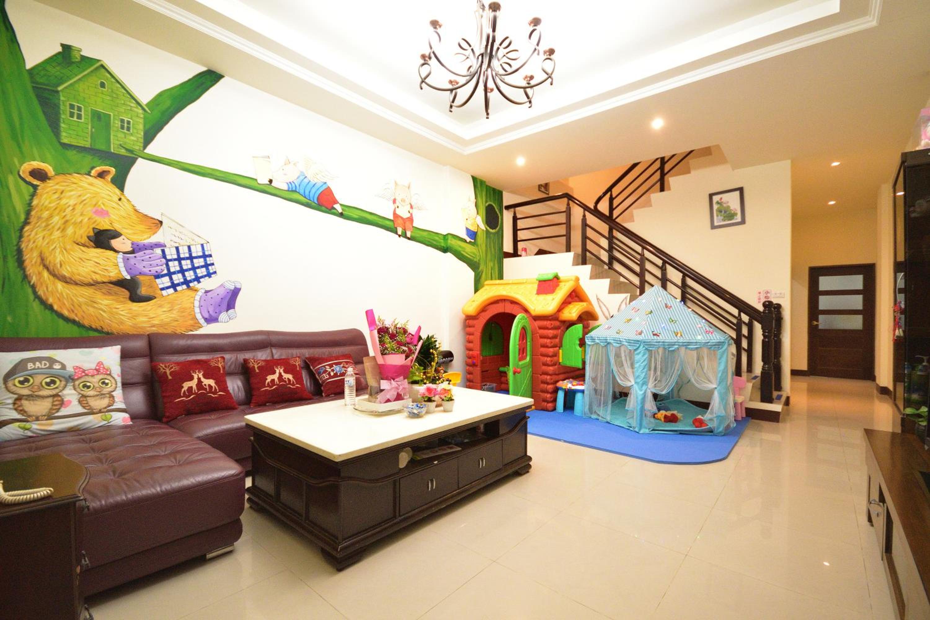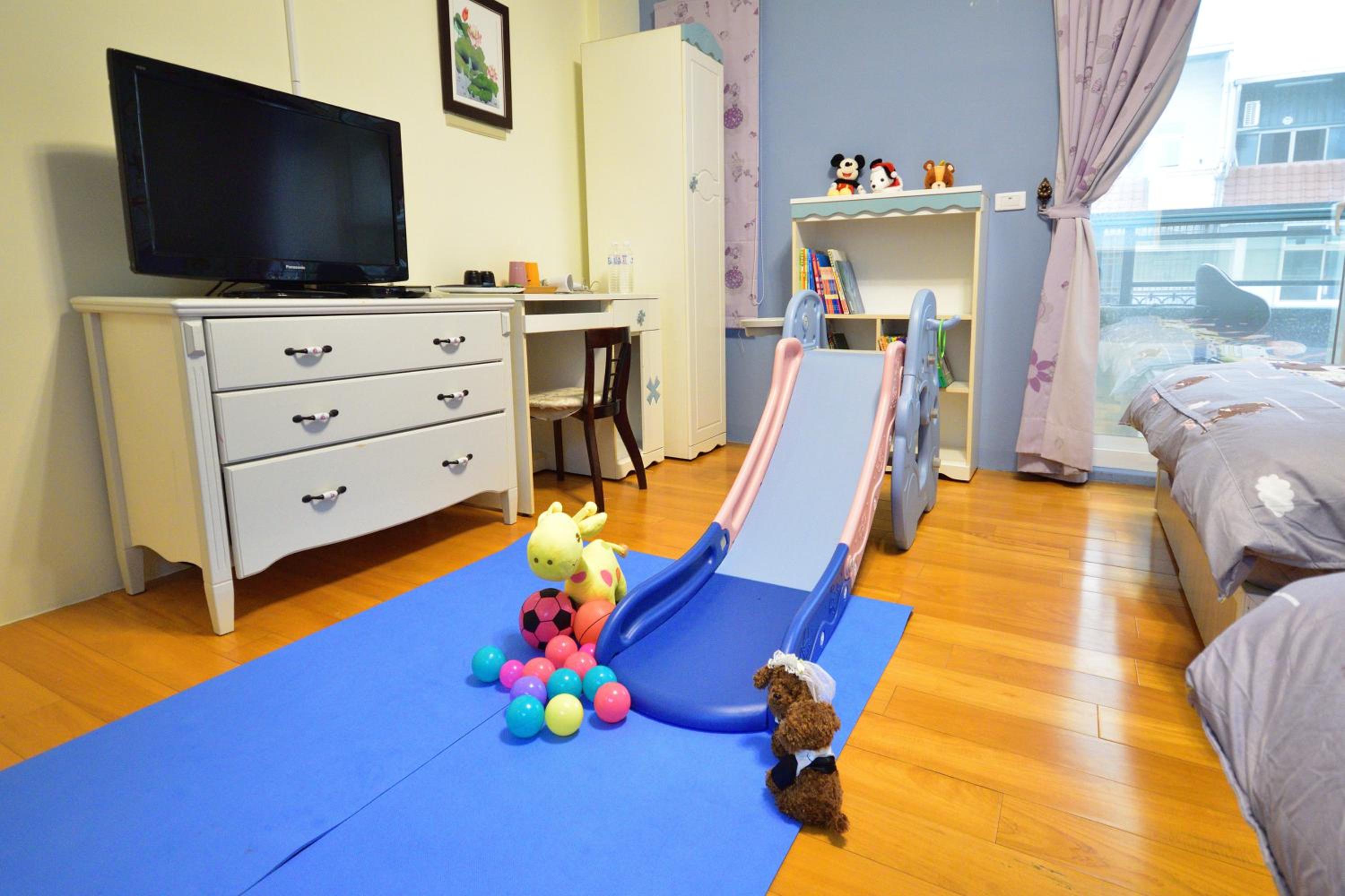 公共空間(客廳)有設置小玩具,親子友善,小小孩可以玩的很開心。屋主也喜歡小孩子,可以像在自己家般地放鬆。
