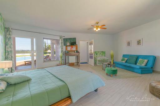 O quarto era enorme e bem decorado. A piscina é muito boa.