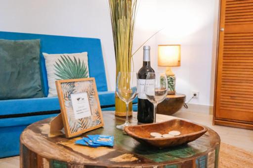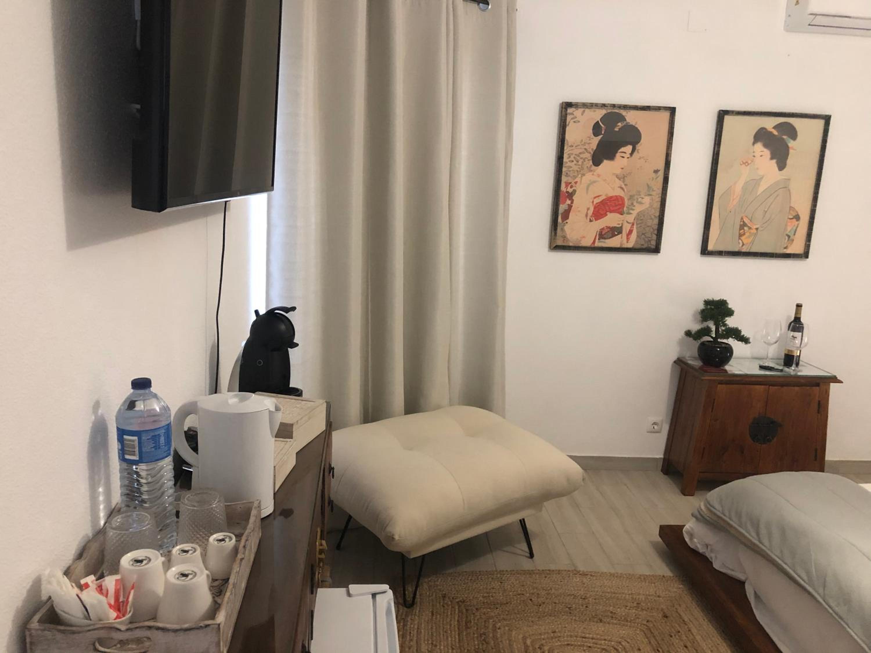 Atenção que a garrafa de vinho que aoarece nas fotos não aparece no quarto... mas está lá o saca rolhas!