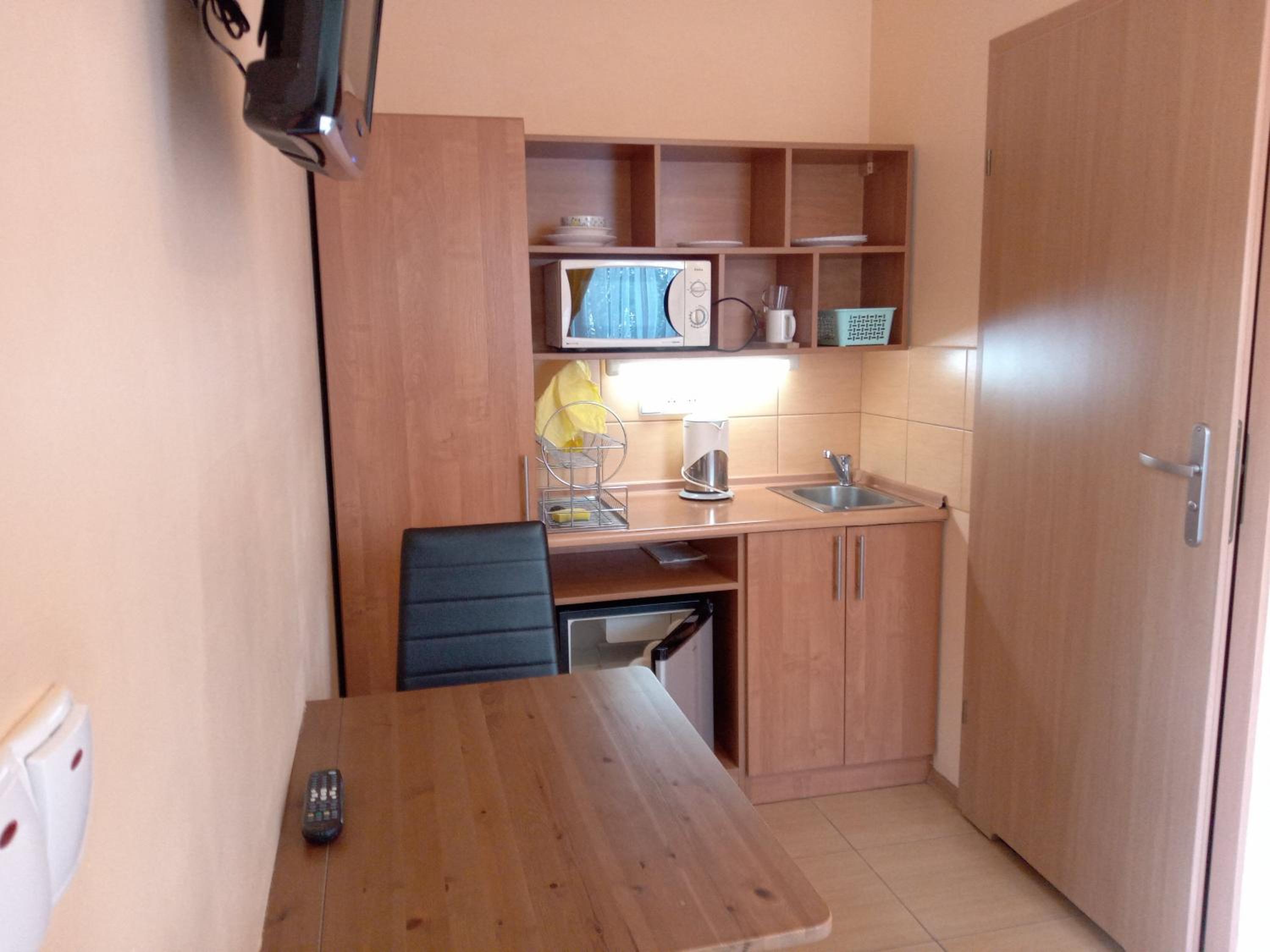 Dobry kontakt z właścicielką, wszystko sprawnie i bez problemu. Pokój mały ale dobrze zorganizowany, w pokoju aneks kucheny z mikrofala i lodówką Pobyt uważam za bardzo udany. Polecam.