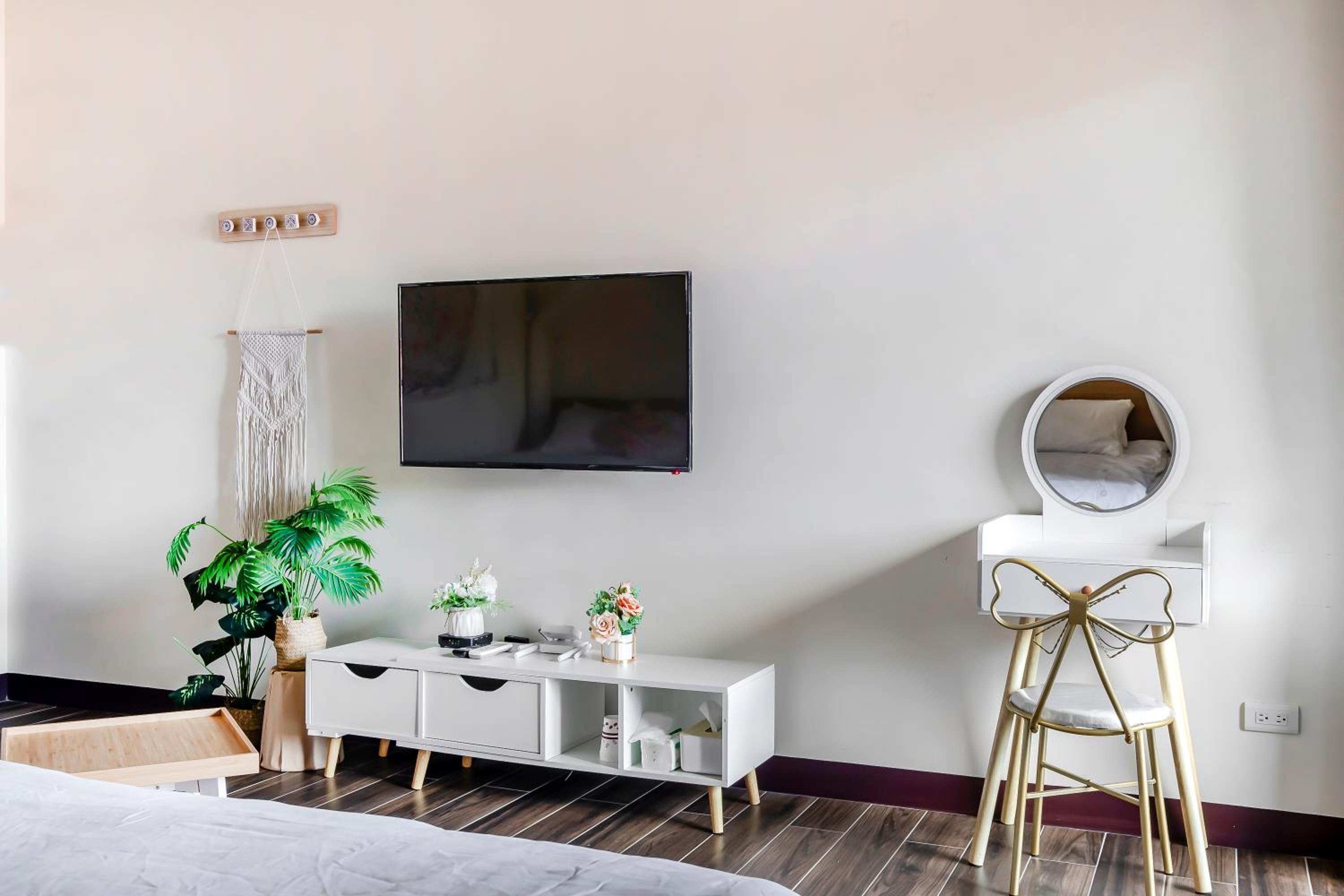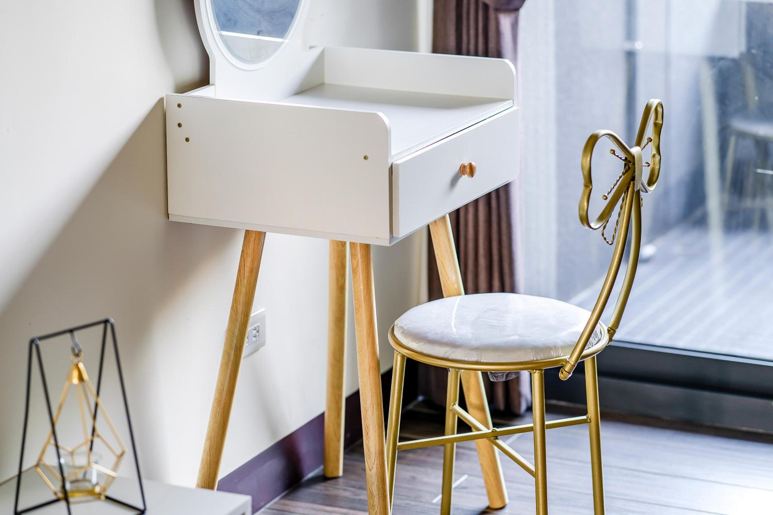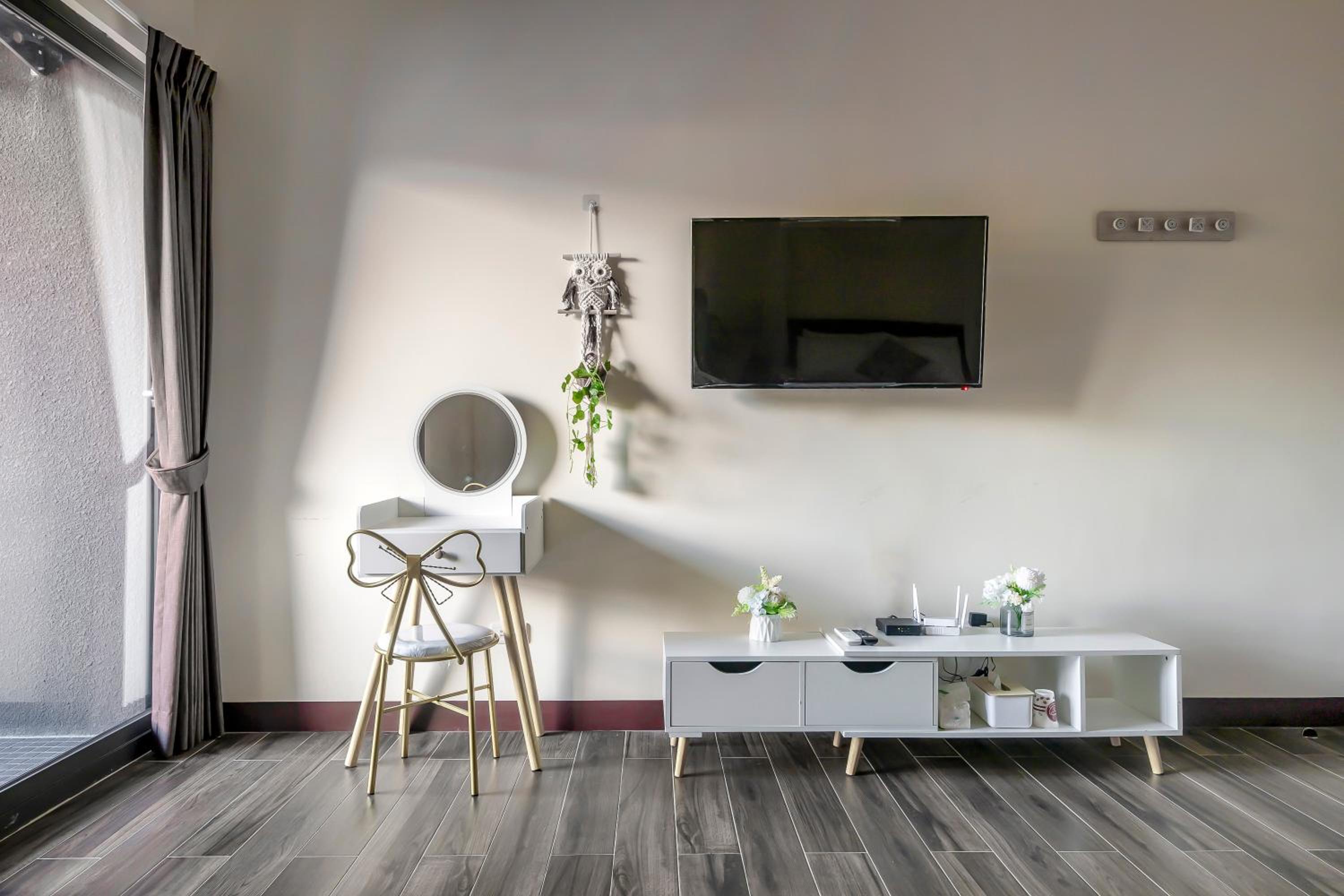 ·沙發抱枕都蠻暗沉的感覺放了很久,房內傢俱非常不穩固,除了沙發外,簡易木頭桌椅都是會搖晃的程度,應該要定期更新物品比較好~至少不要是快壞的