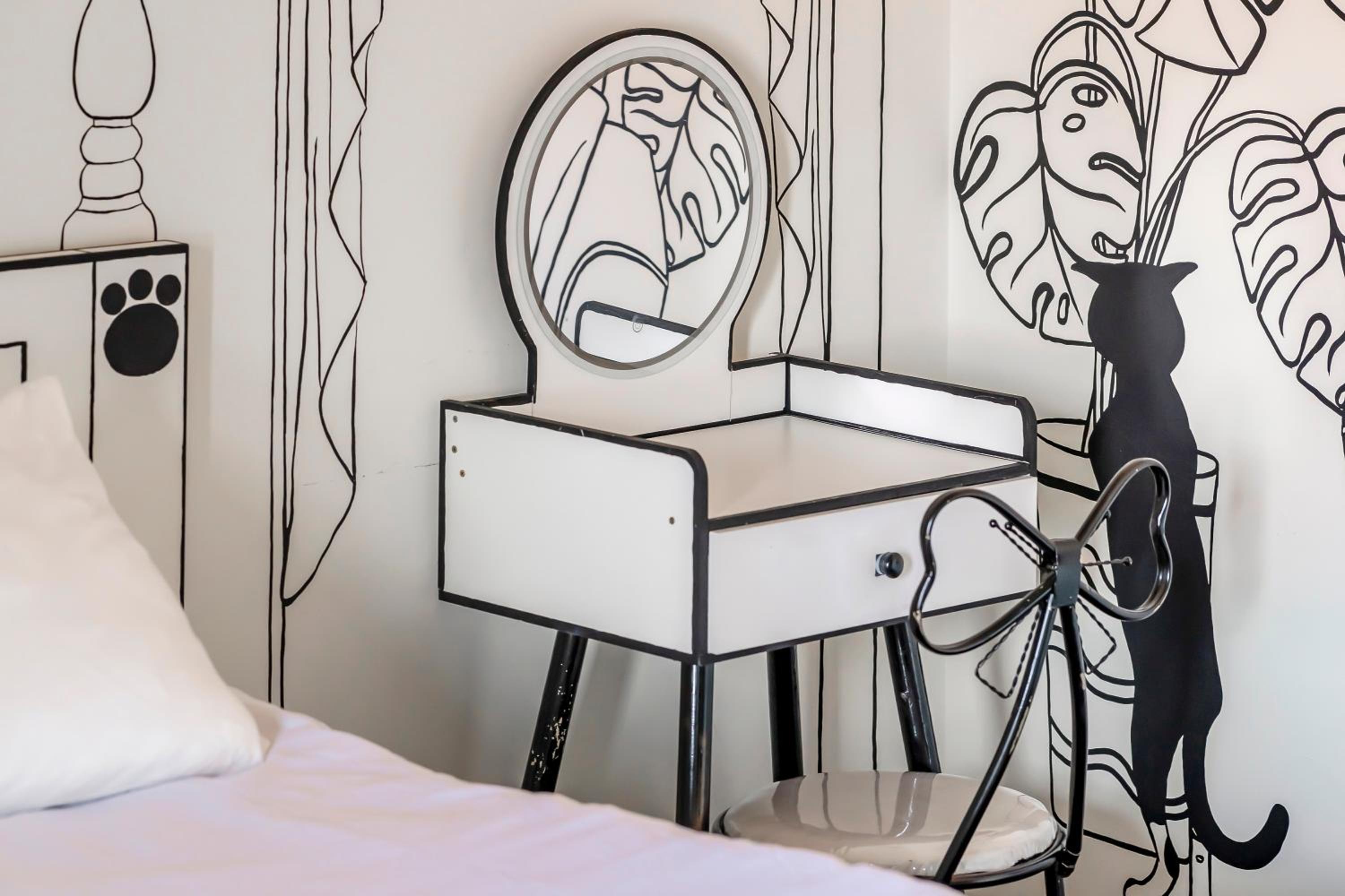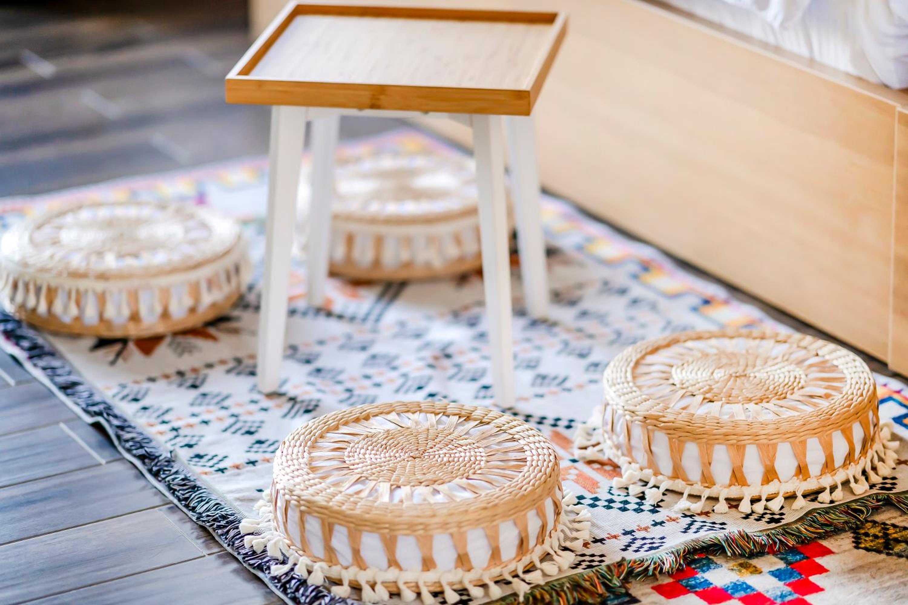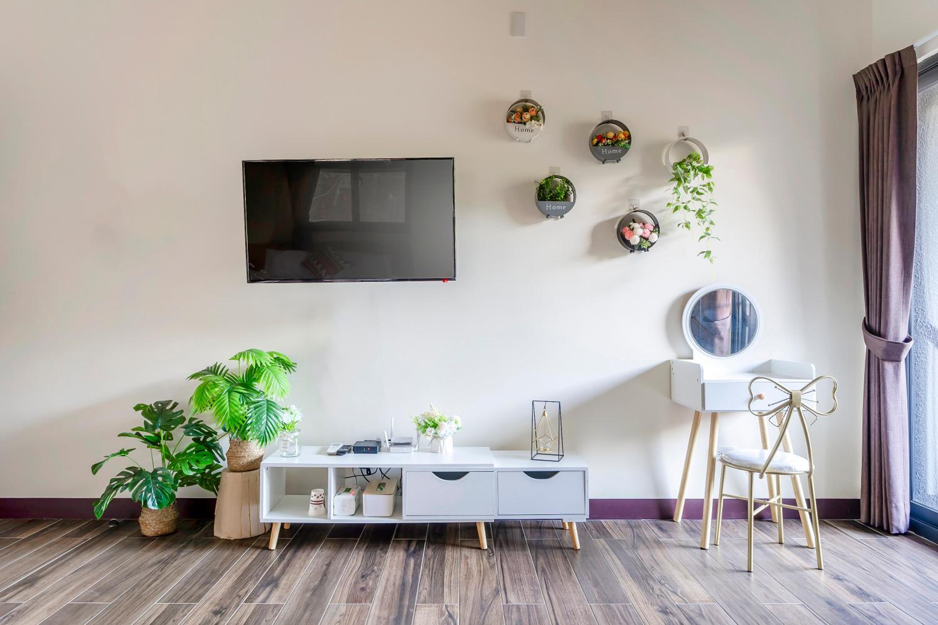 ·沙發抱枕都蠻暗沉的感覺放了很久,房內傢俱非常不穩固,除了沙發外,簡易木頭桌椅都是會搖晃的程度,應該要定期更新物品比較好~至少不要是快壞的