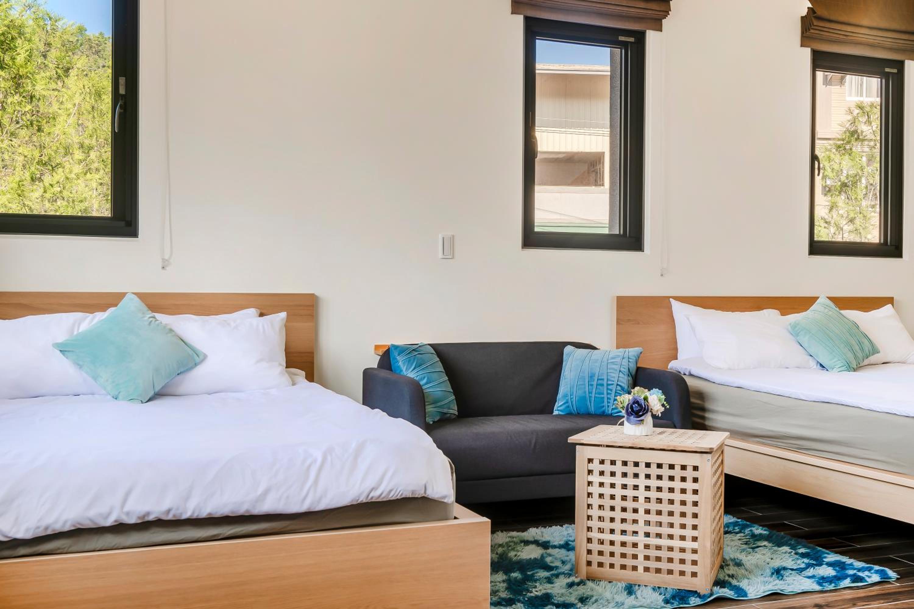 房間很大很夠住/CP值很高/浴室水很強/一樓有小間遊戲室,小孩玩得很高興,離桃米親水公園近/附近有一些不錯的餐廳